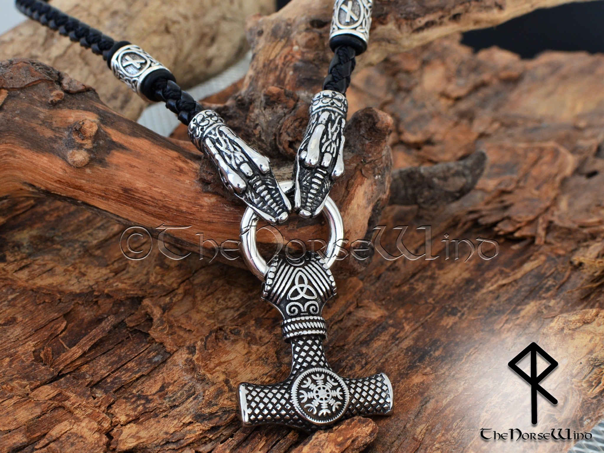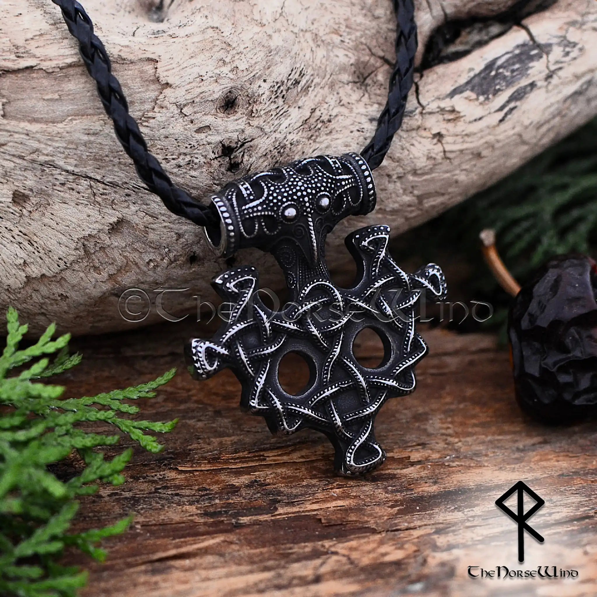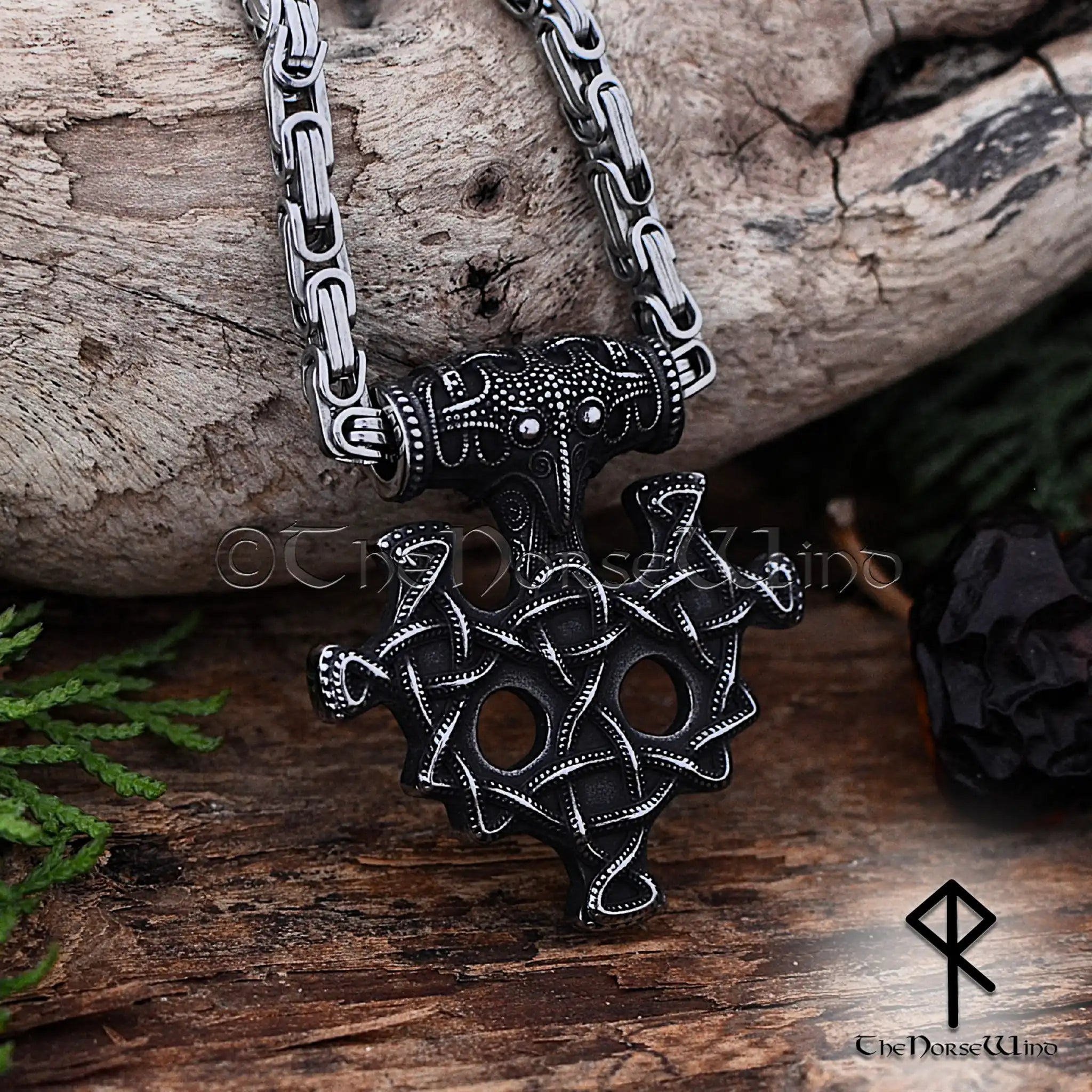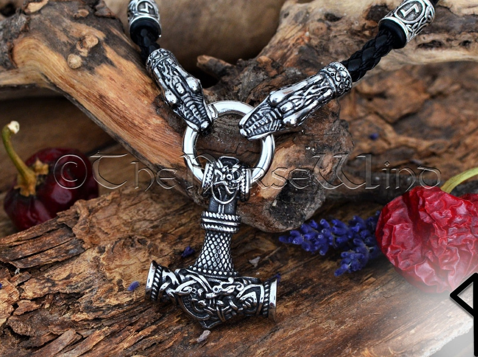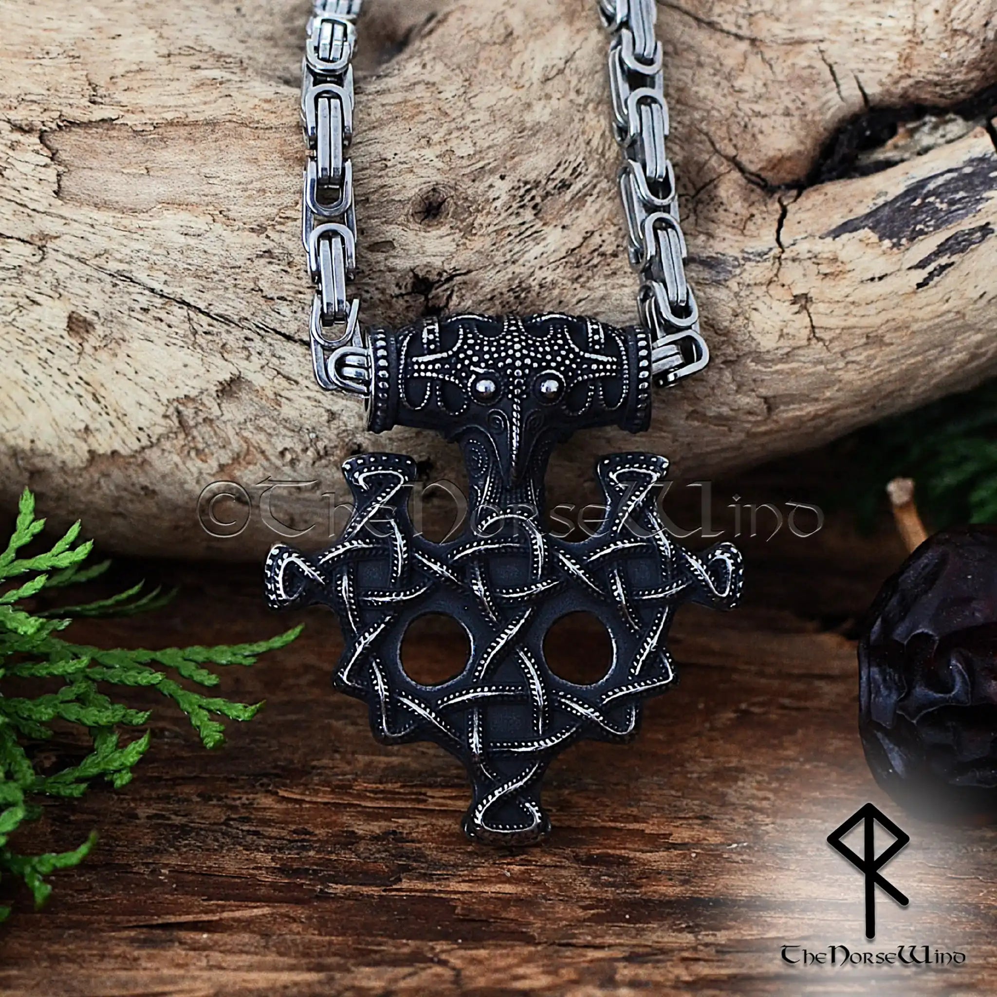 Thor's Hammer Viking Necklace with Raven Head & Celtic Knots