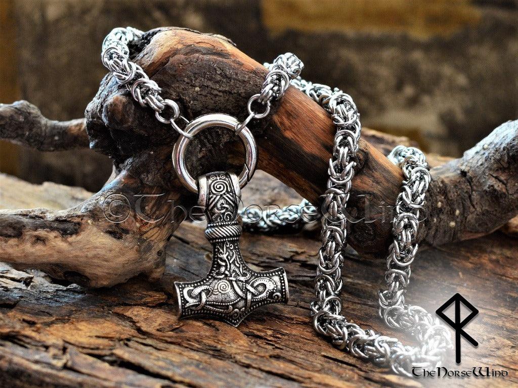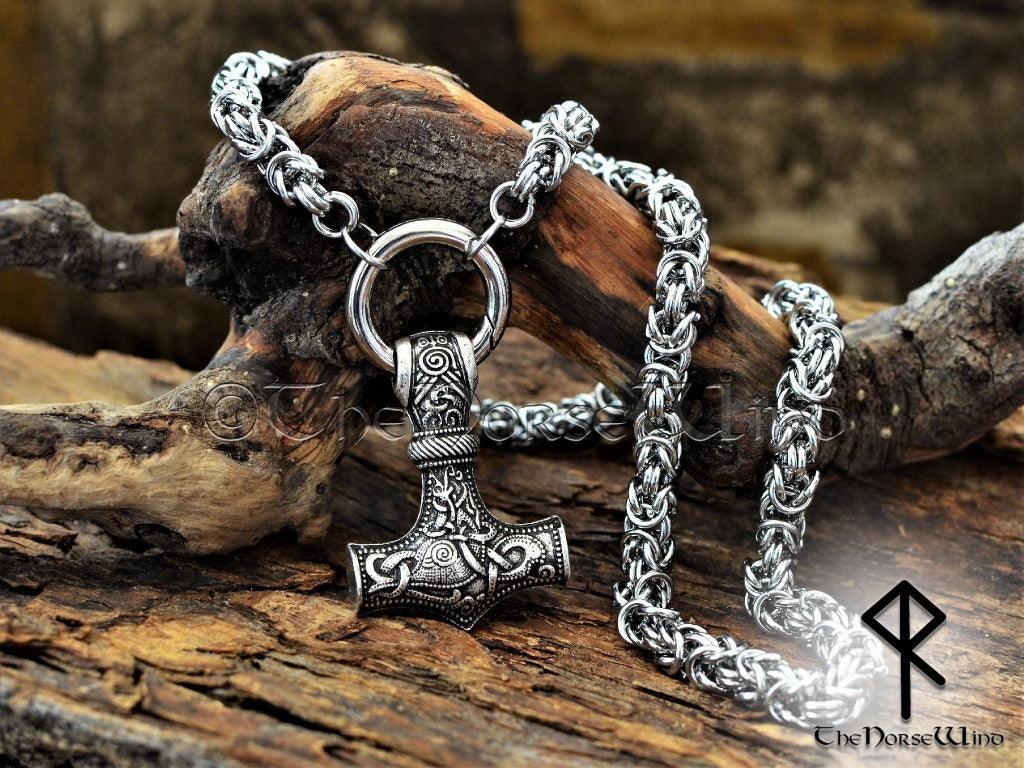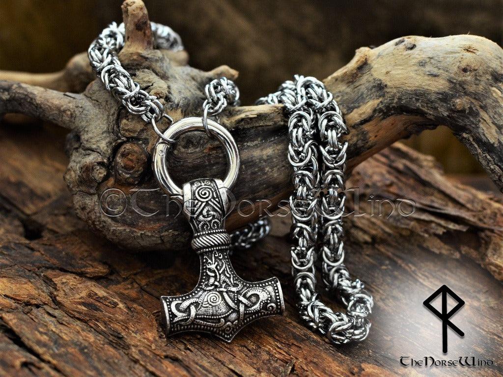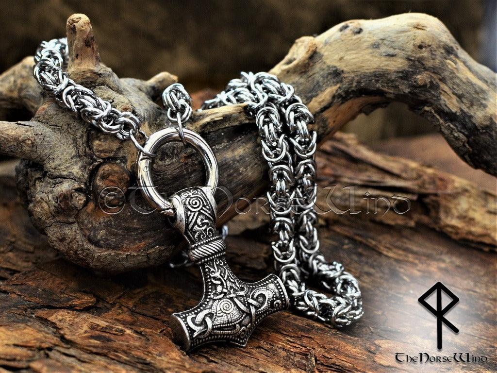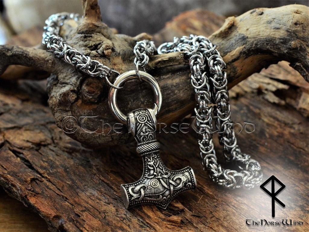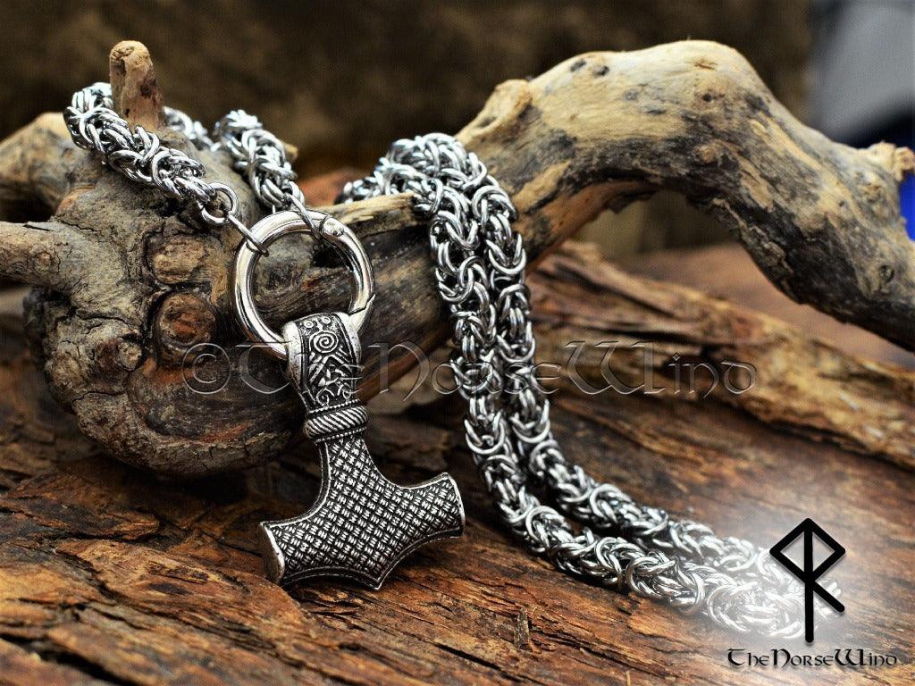 Thor's Hammer Viking Necklace, Norse Mjolnir Pendant Stainless Steel