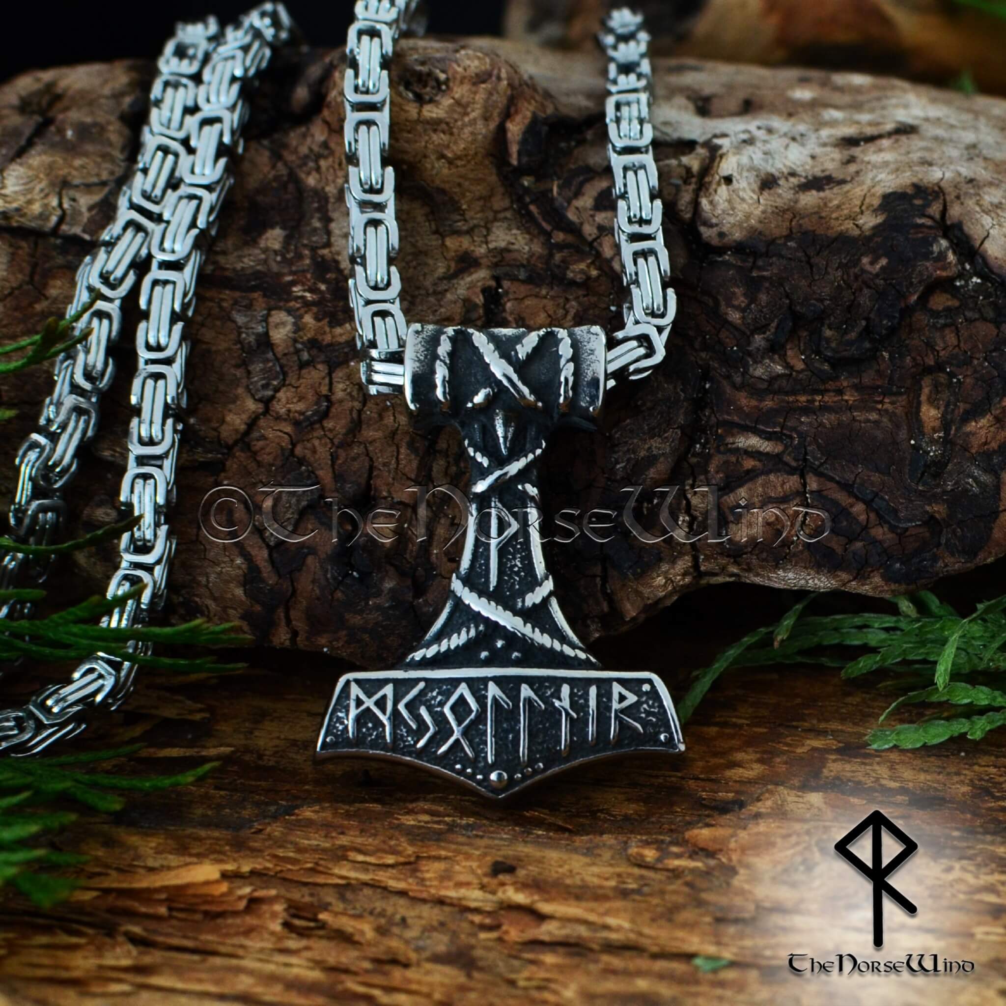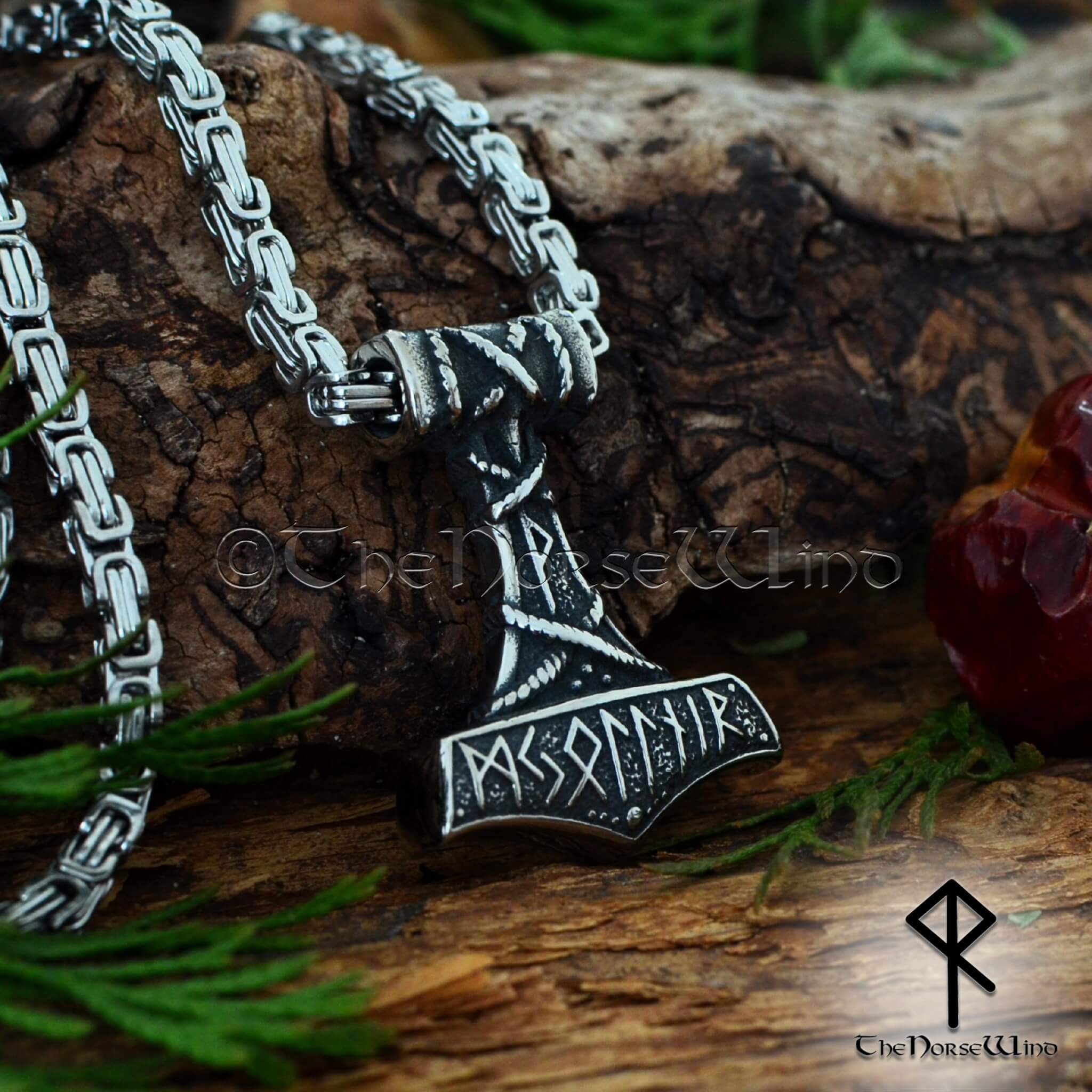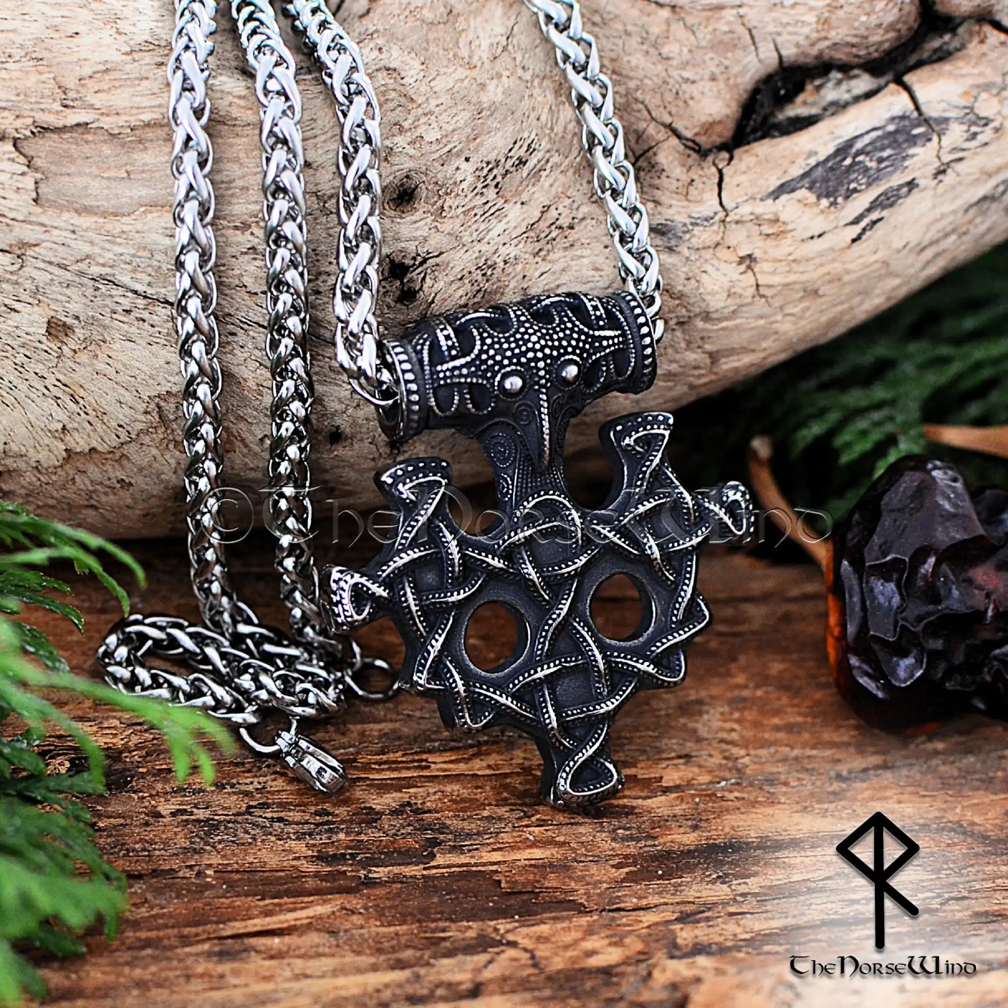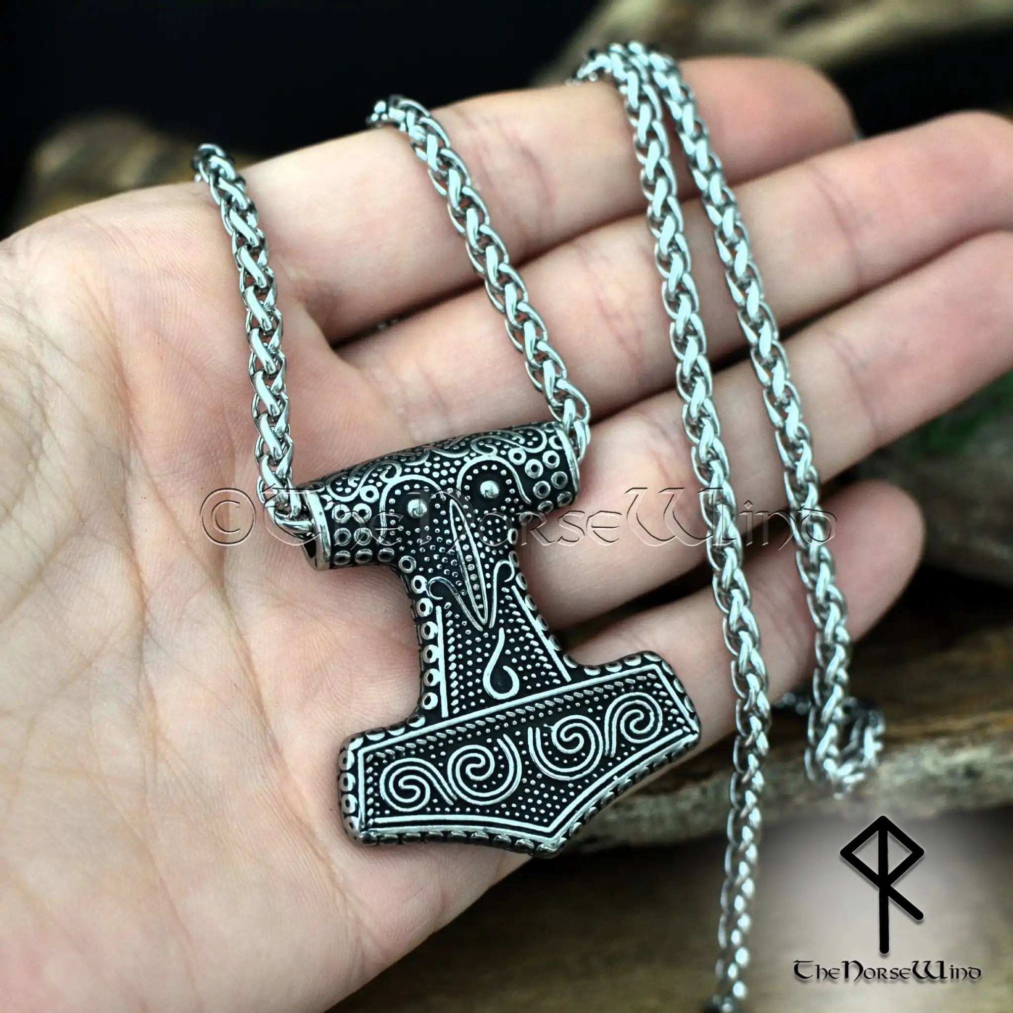 Thor's Hammer Viking Necklace, Norse Mjolnir Pendant Stainless Steel
