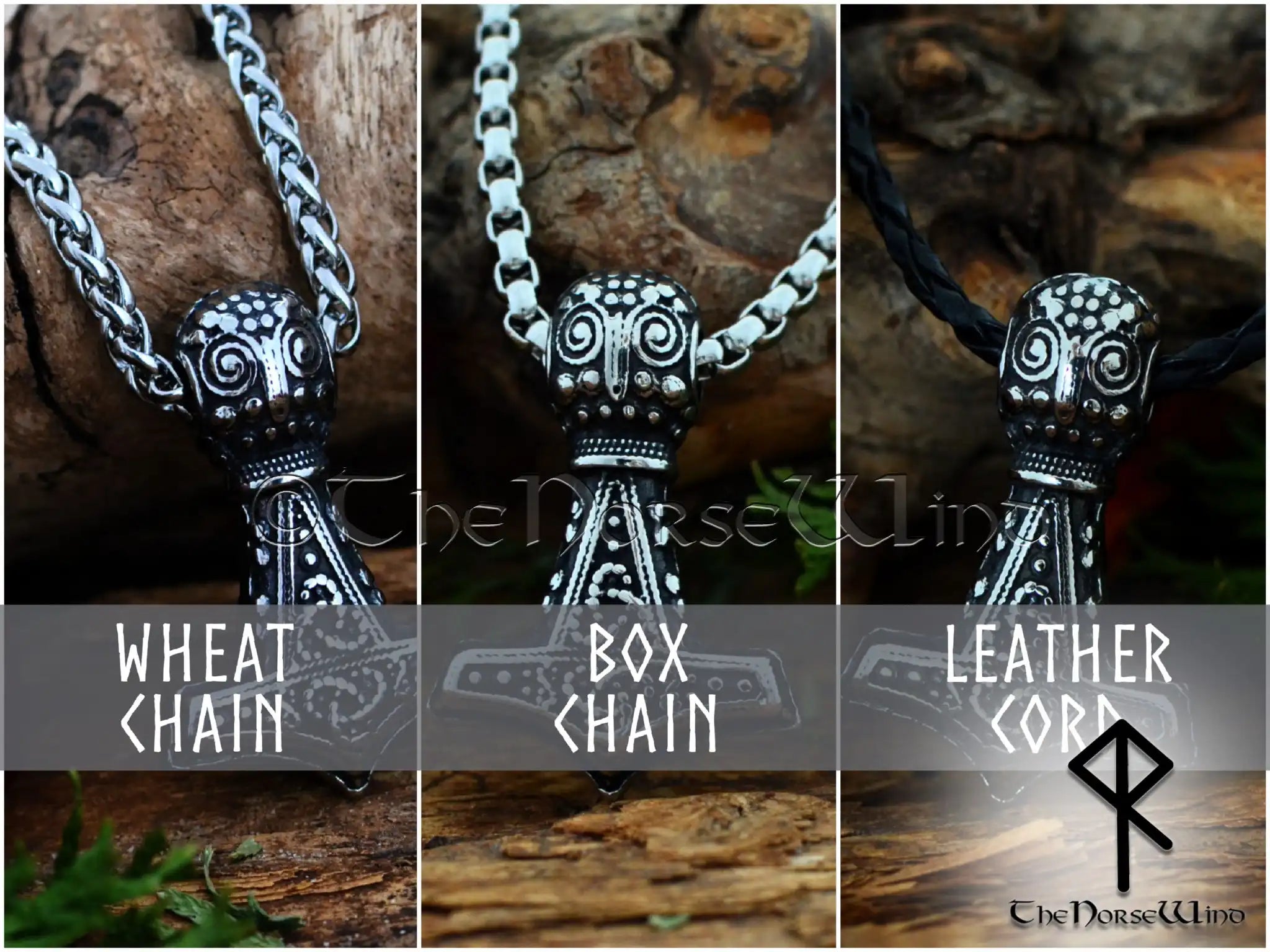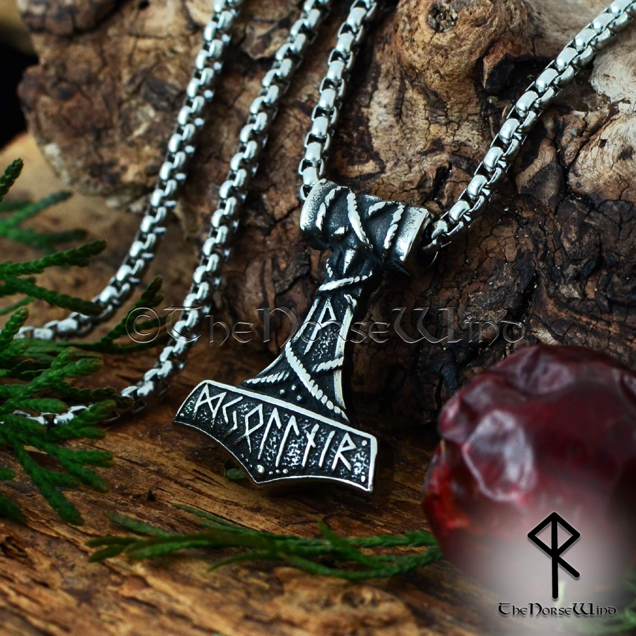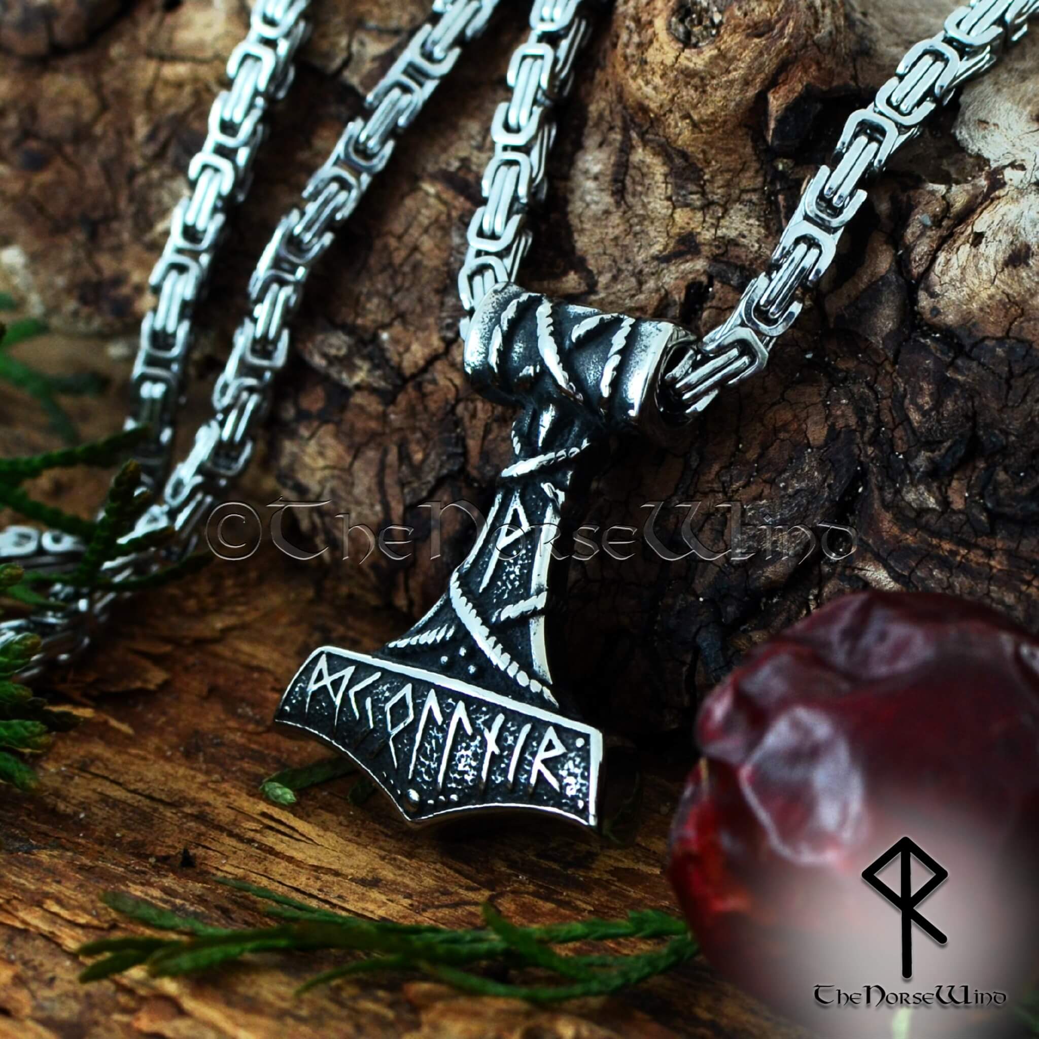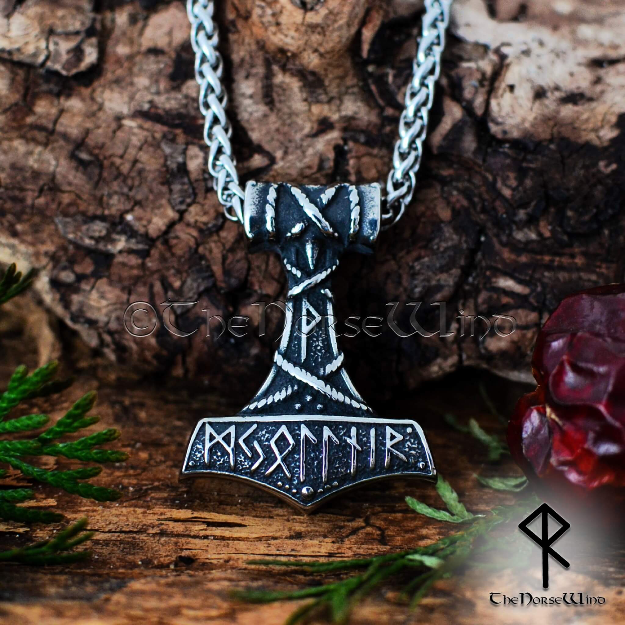 Thor's Hammer Viking Necklace, Norse Mjolnir Pendant Stainless Steel