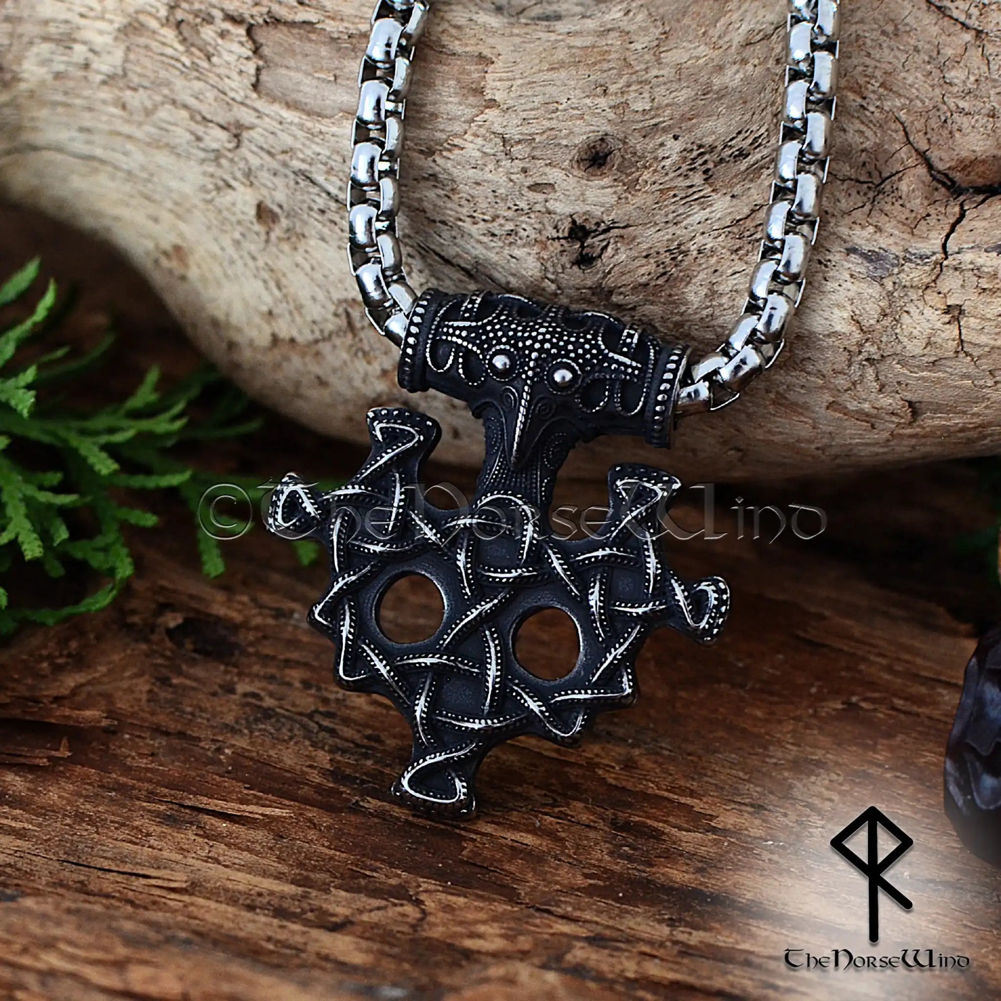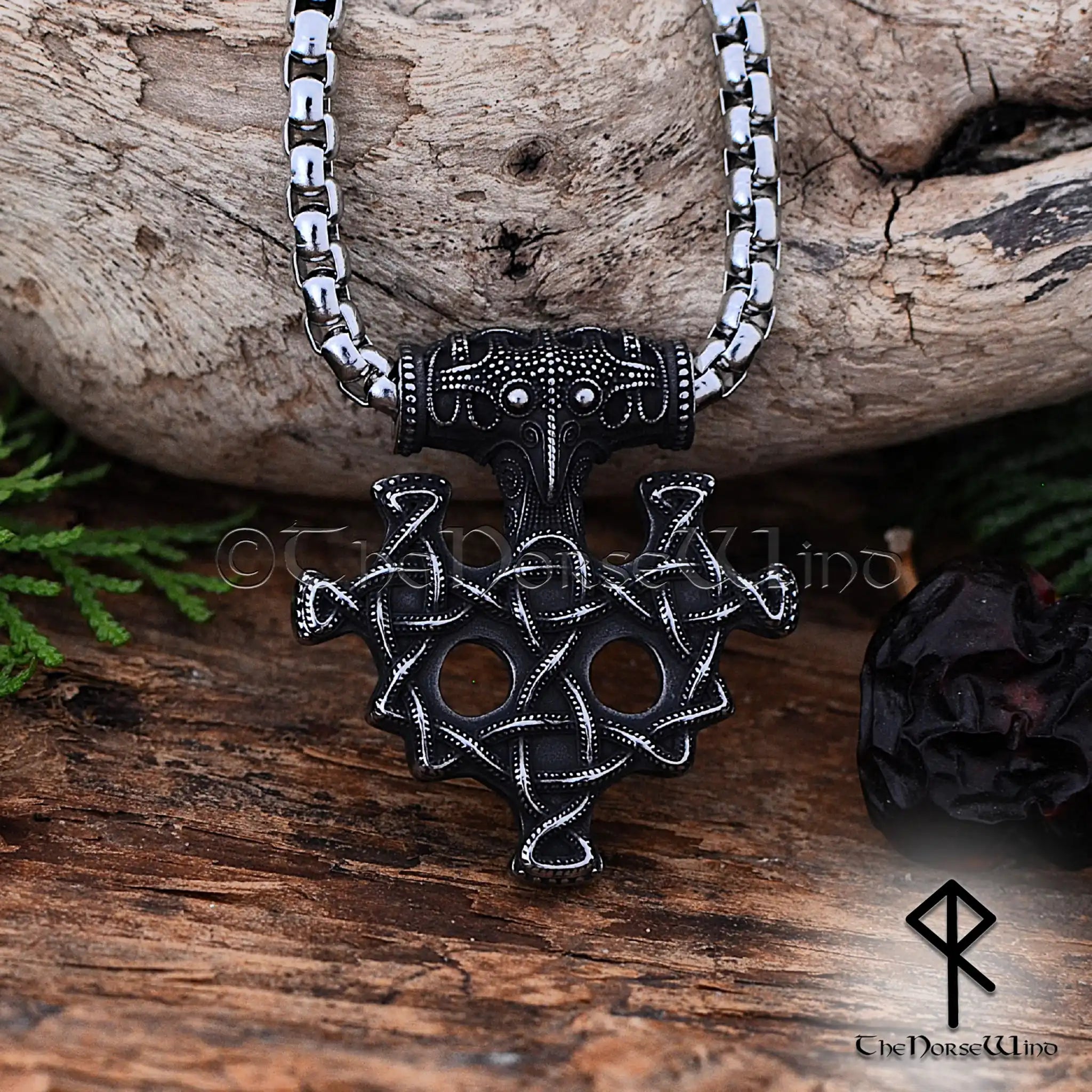 Thor's Hammer Viking Necklace, Mjolnir with Valknut Engraving