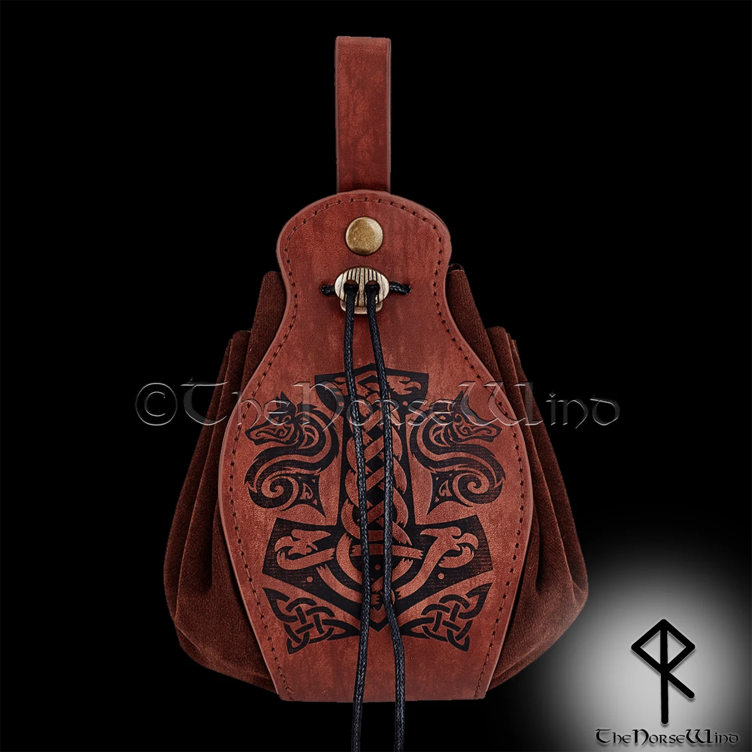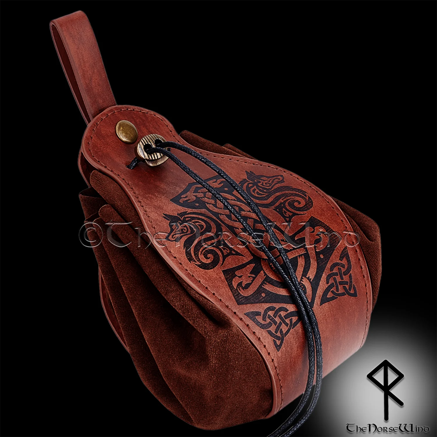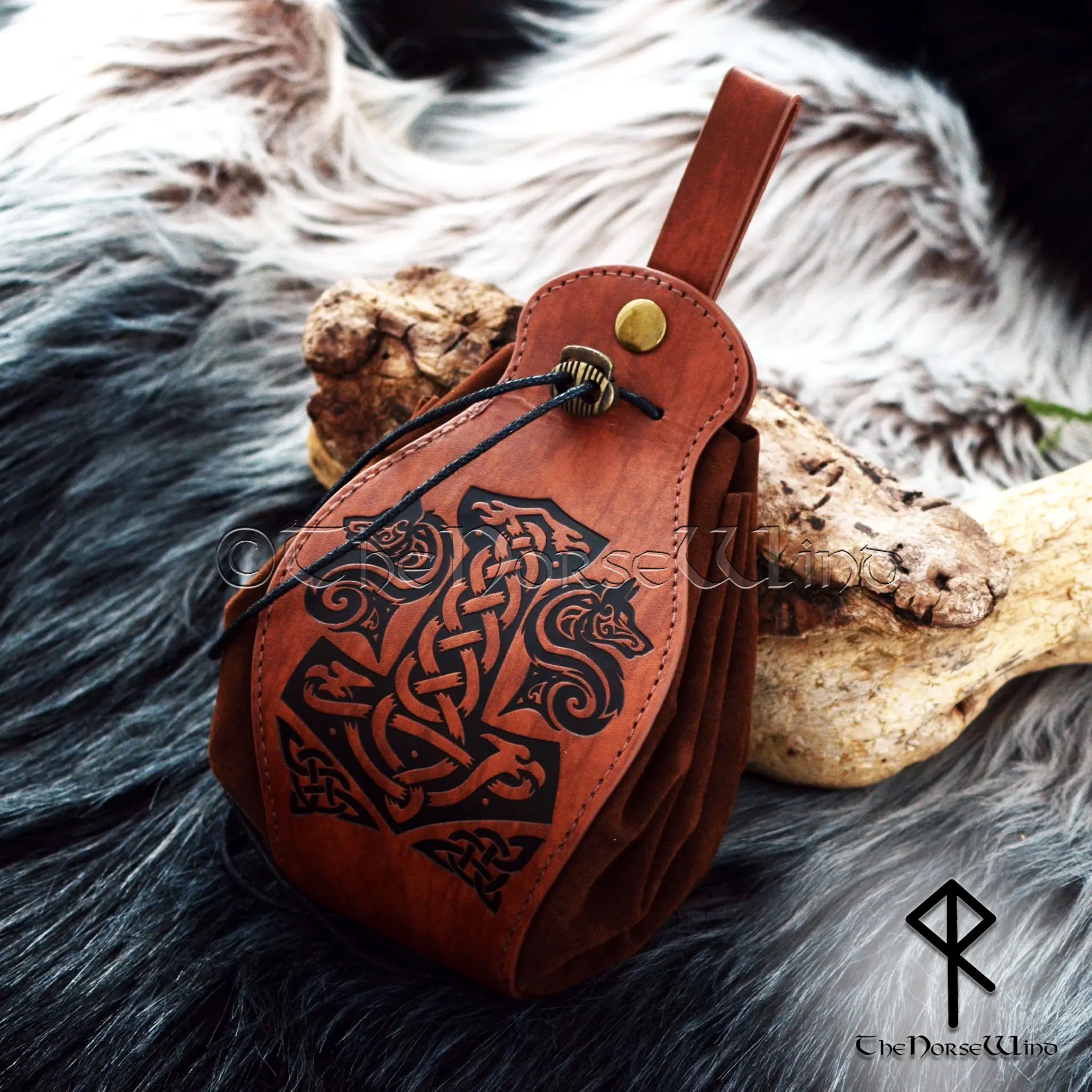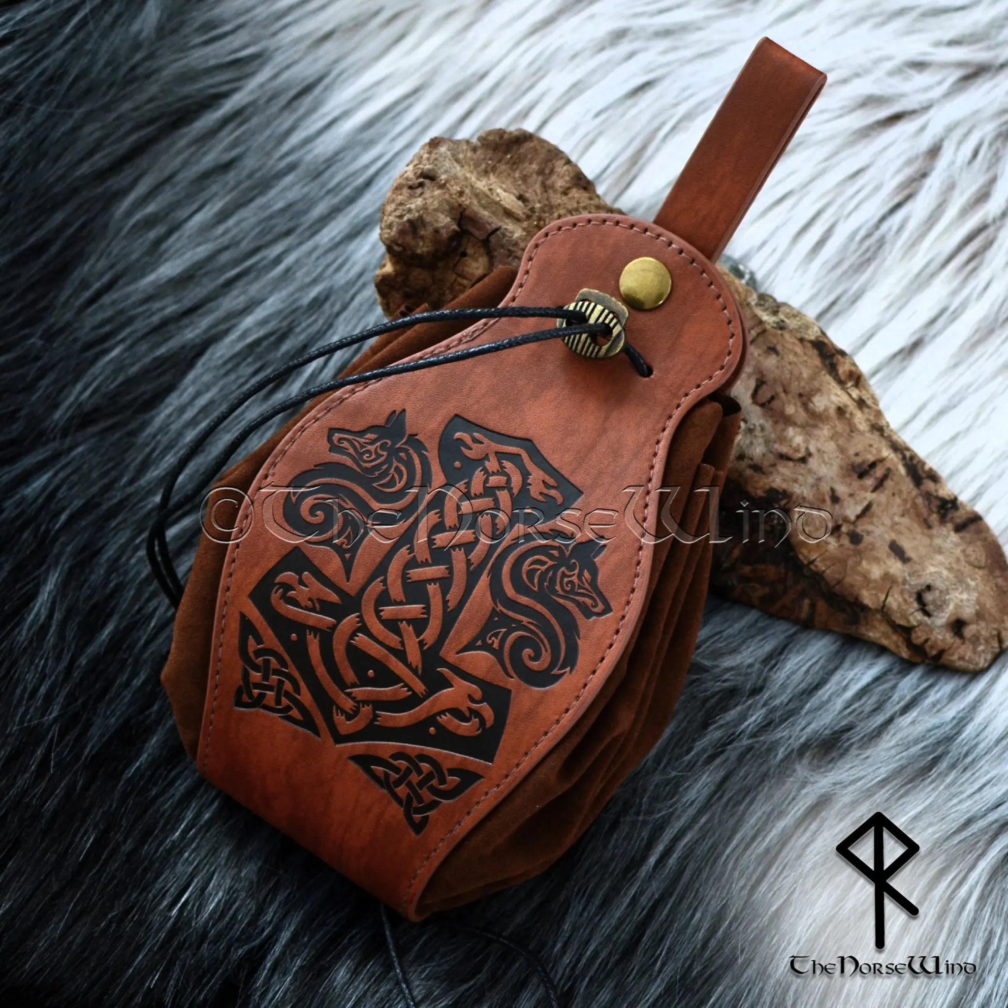 Fenrir Wolf & Mjolnir Viking Leather Belt Pouch Bag