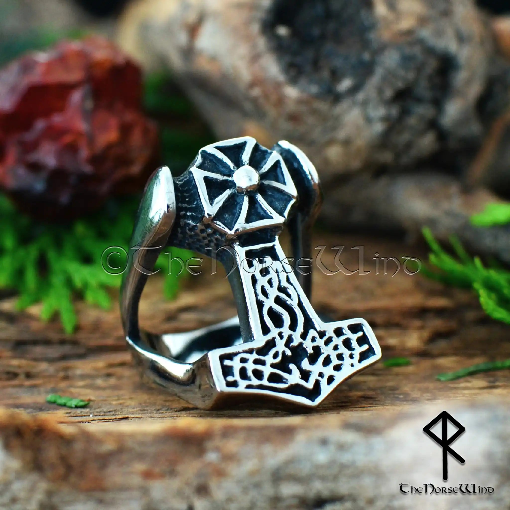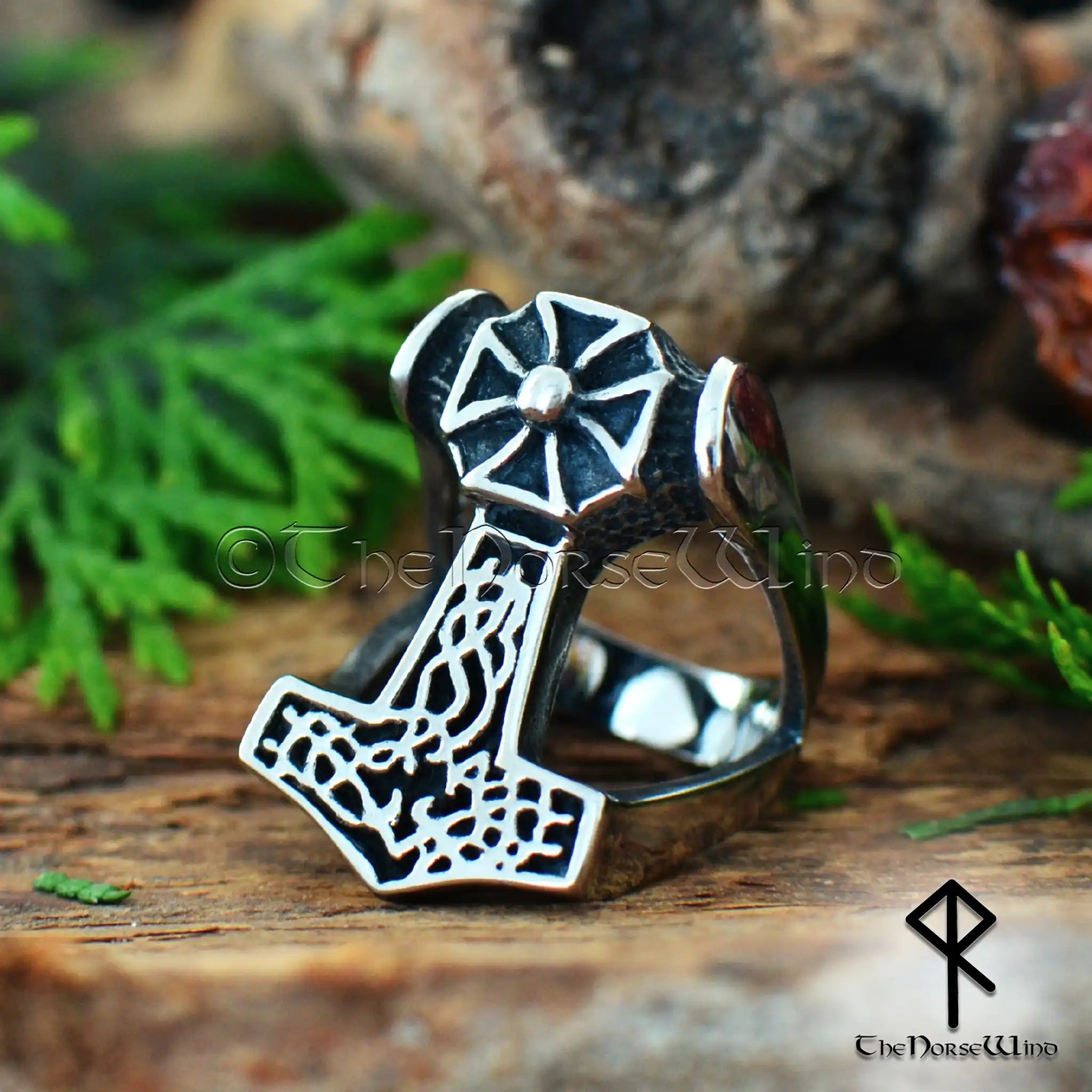 Thor's Hammer Viking Ring, Solid Mjolnir Men's Ring