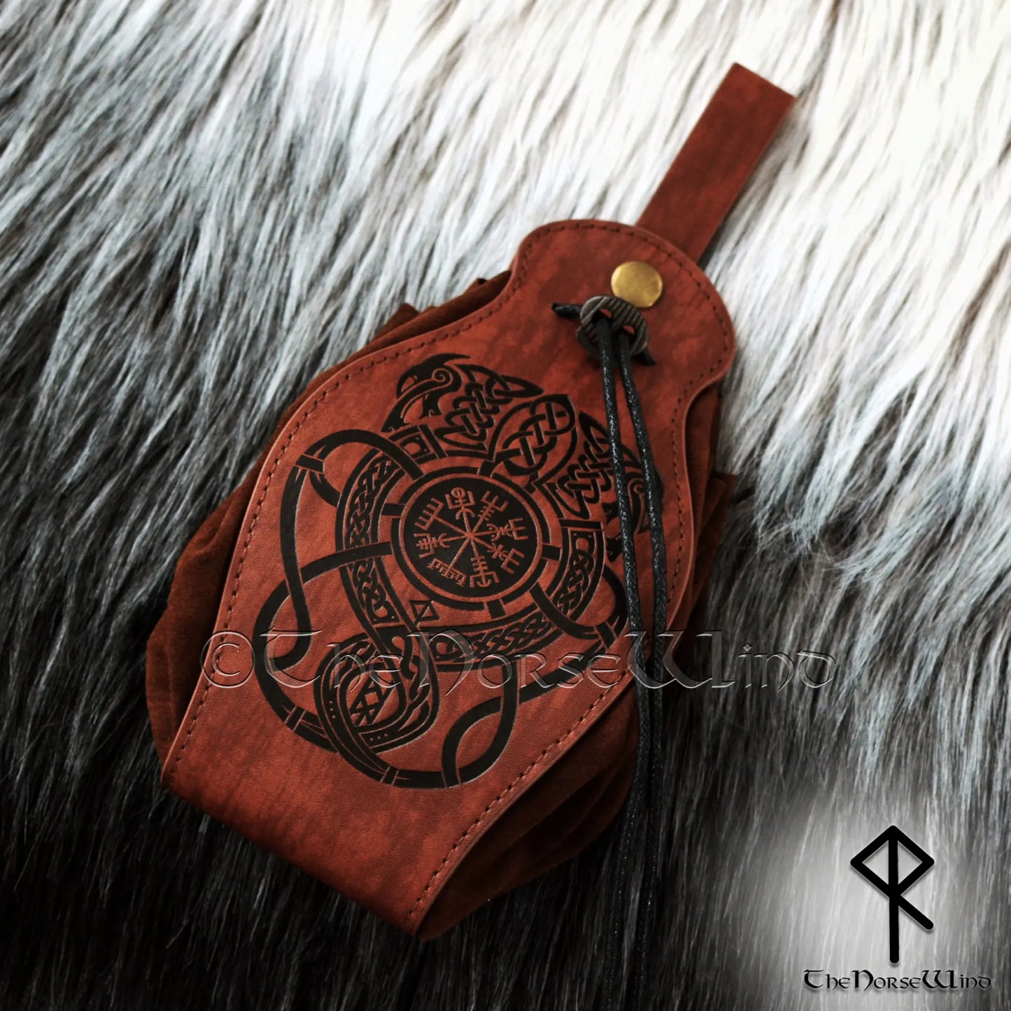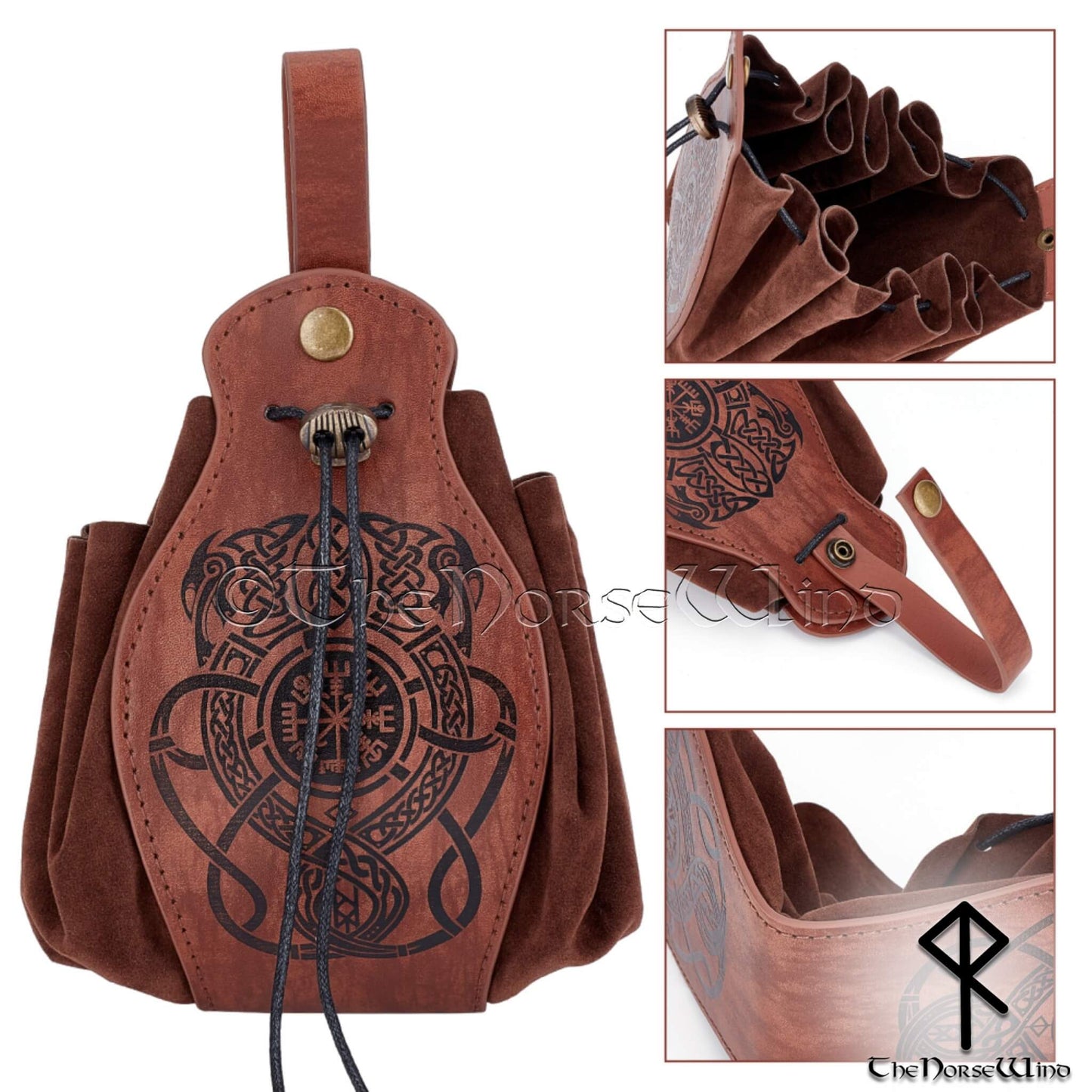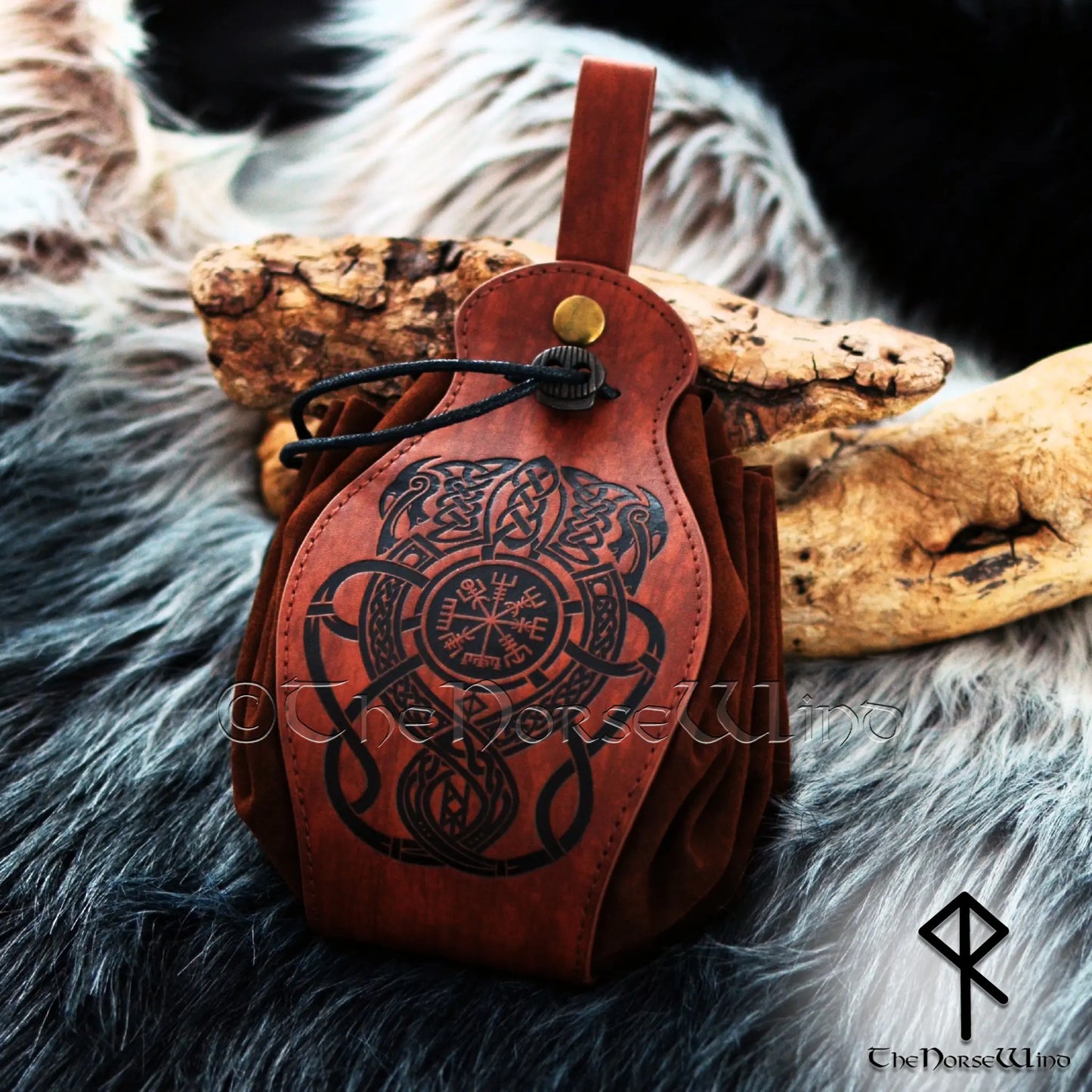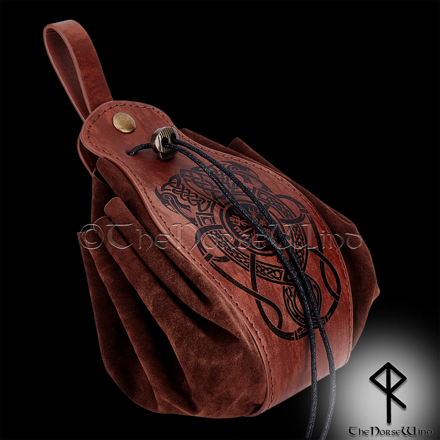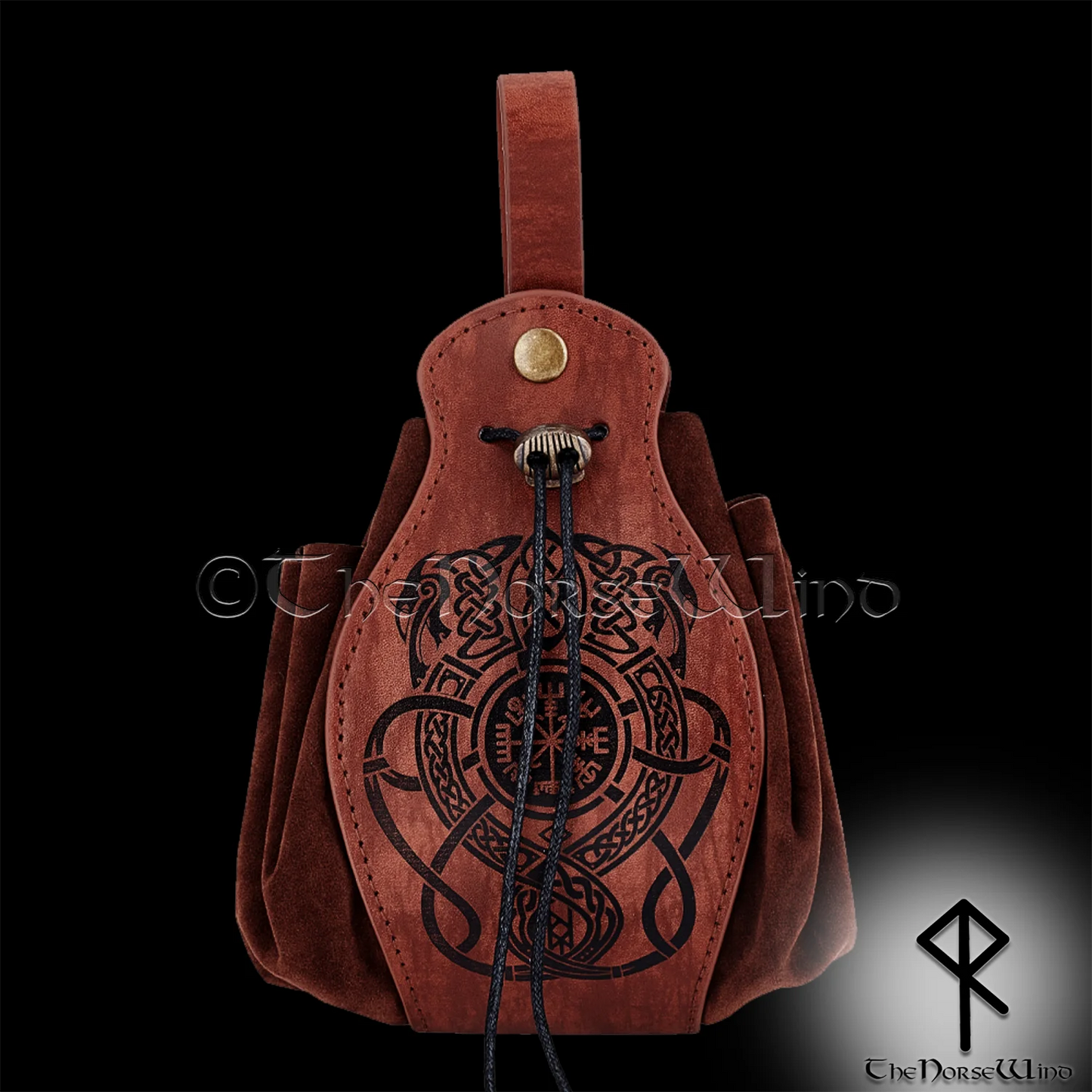 Gürteltasche aus Leder mit keltischem Drachen und Vegvisir aus der Wikingerzeit
