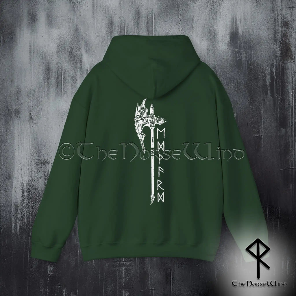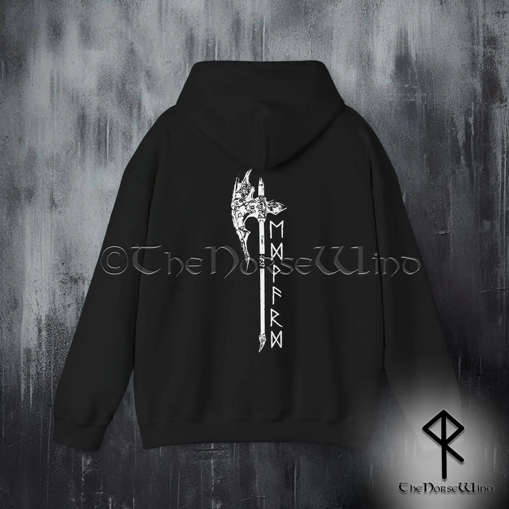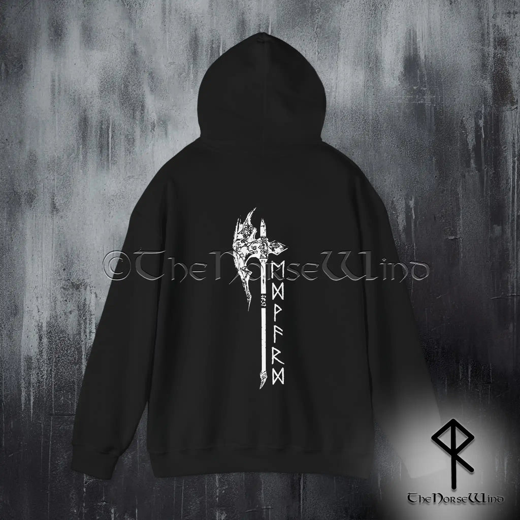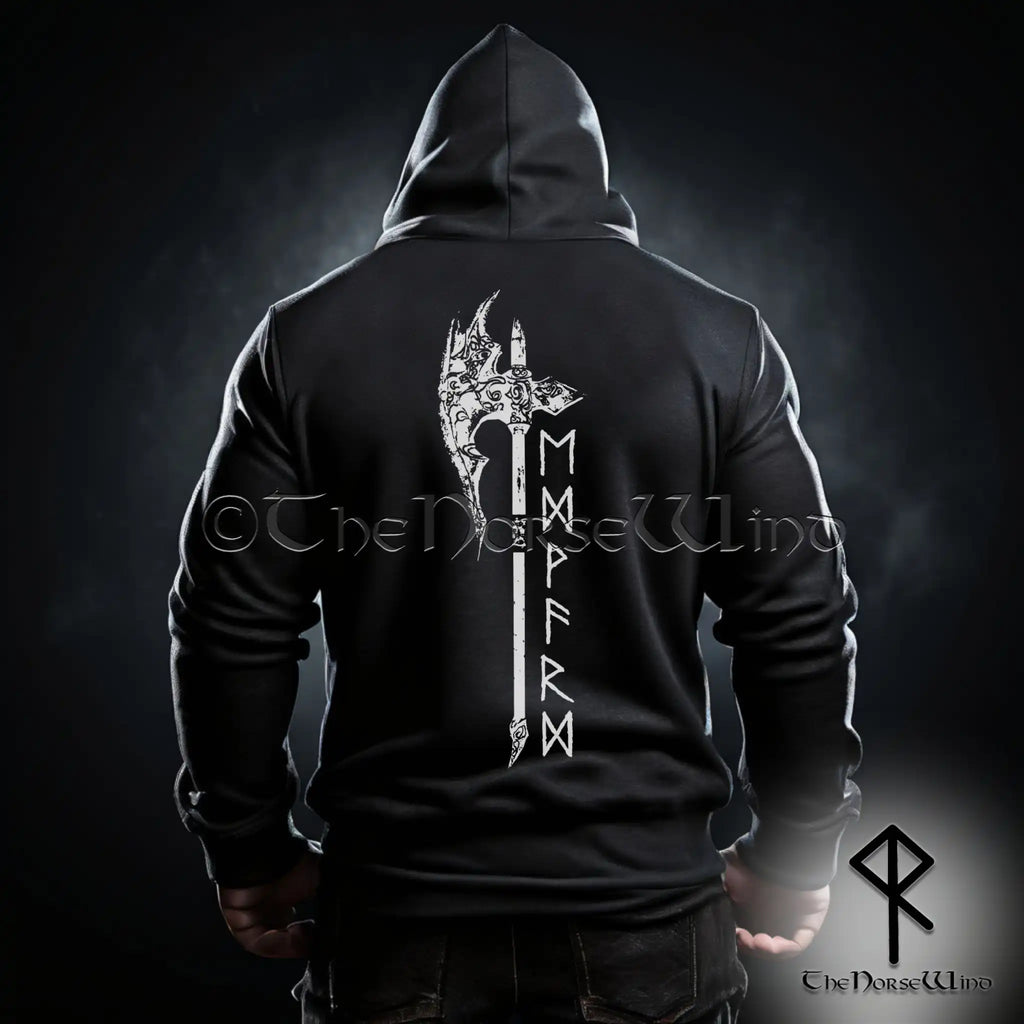 Benutzerdefinierter Wikinger-Hoodie – Name in Runen & nordisches Axt-Sweatshirt
