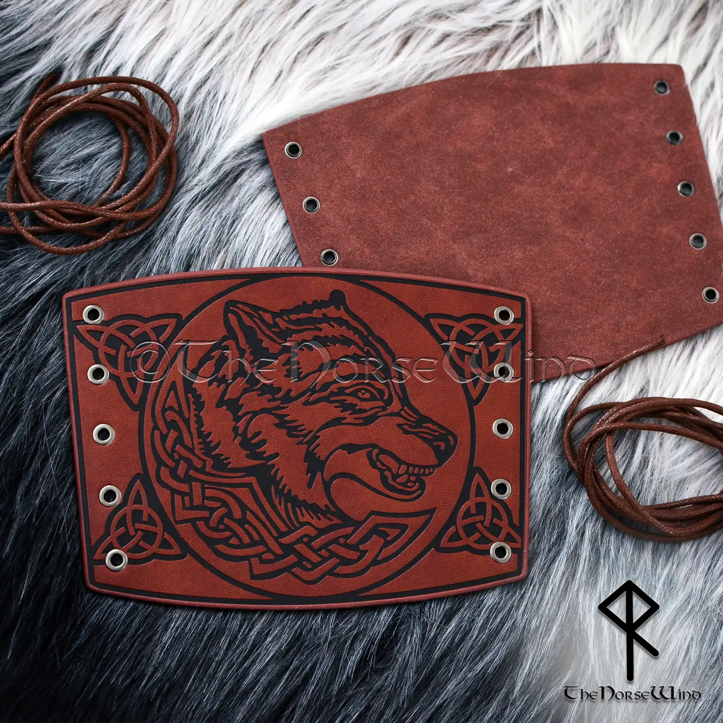 Fenrir Wolf Wikinger Armschienen, Mittelalterliche Armschützer aus Leder