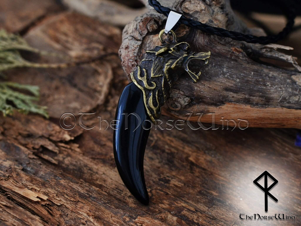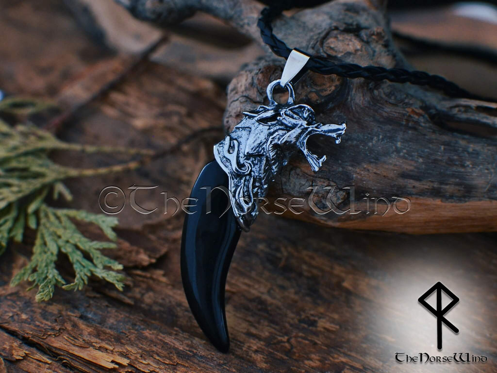 Fenrir Wolf Wikinger Halskette, Schwarzer Wolfszahn Nordischer Anhänger