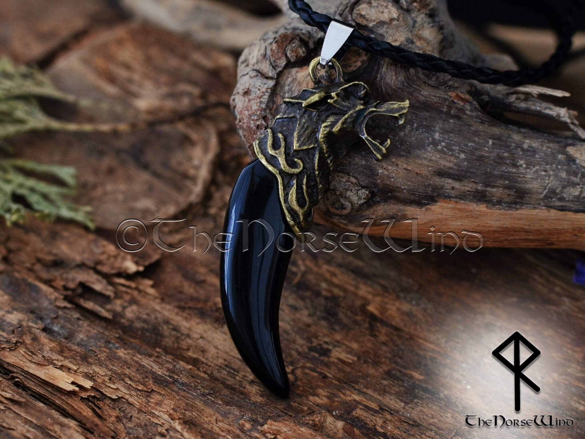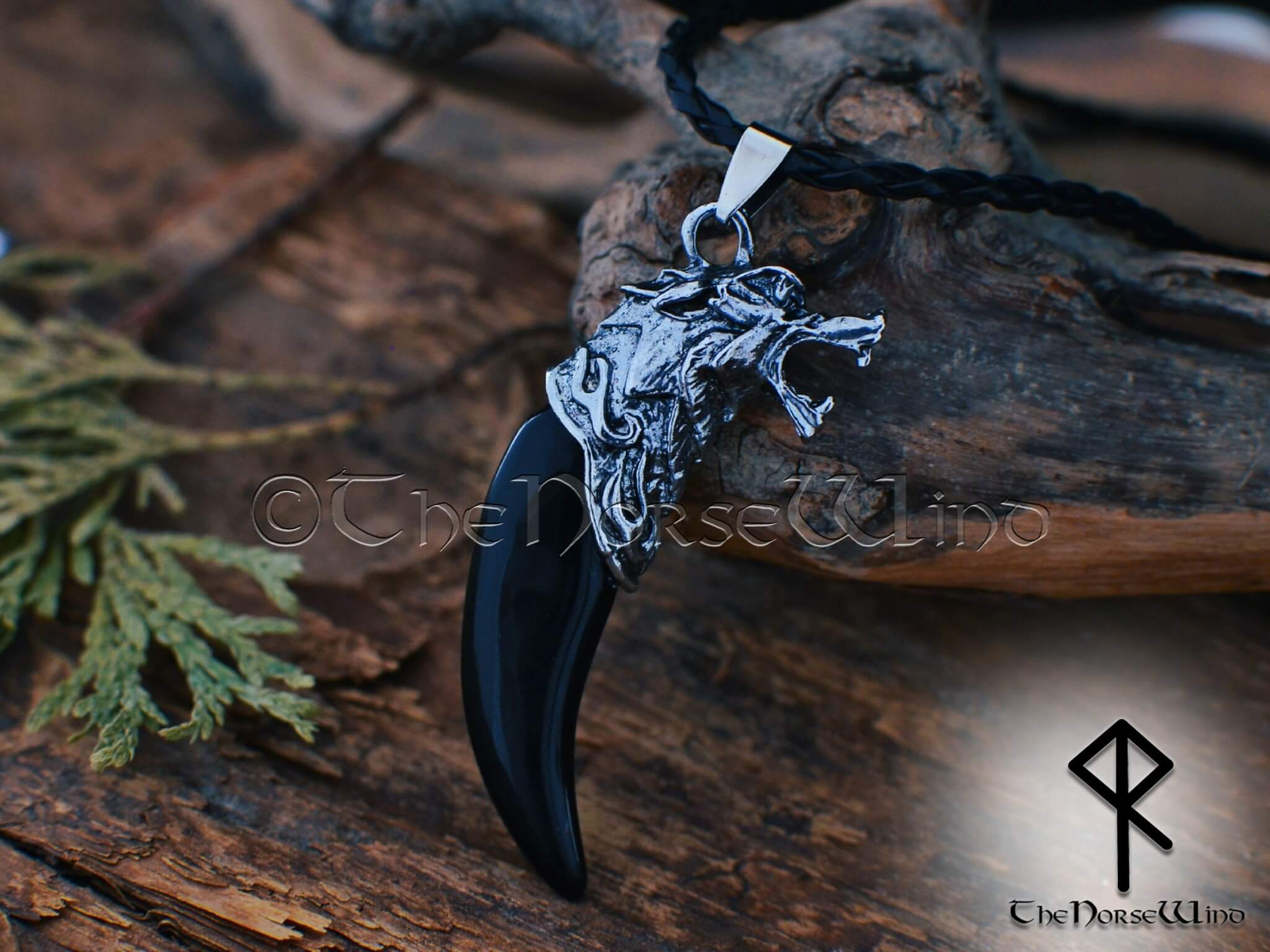 Diese wunderschöne Wikinger-Halskette ist aus antiallergischem tibetischem Silber oder antiker Bronze mit einem geflochtenen Lederband mit Karabinerverschluss. Der Zahn ist aus schwarzem Harz.