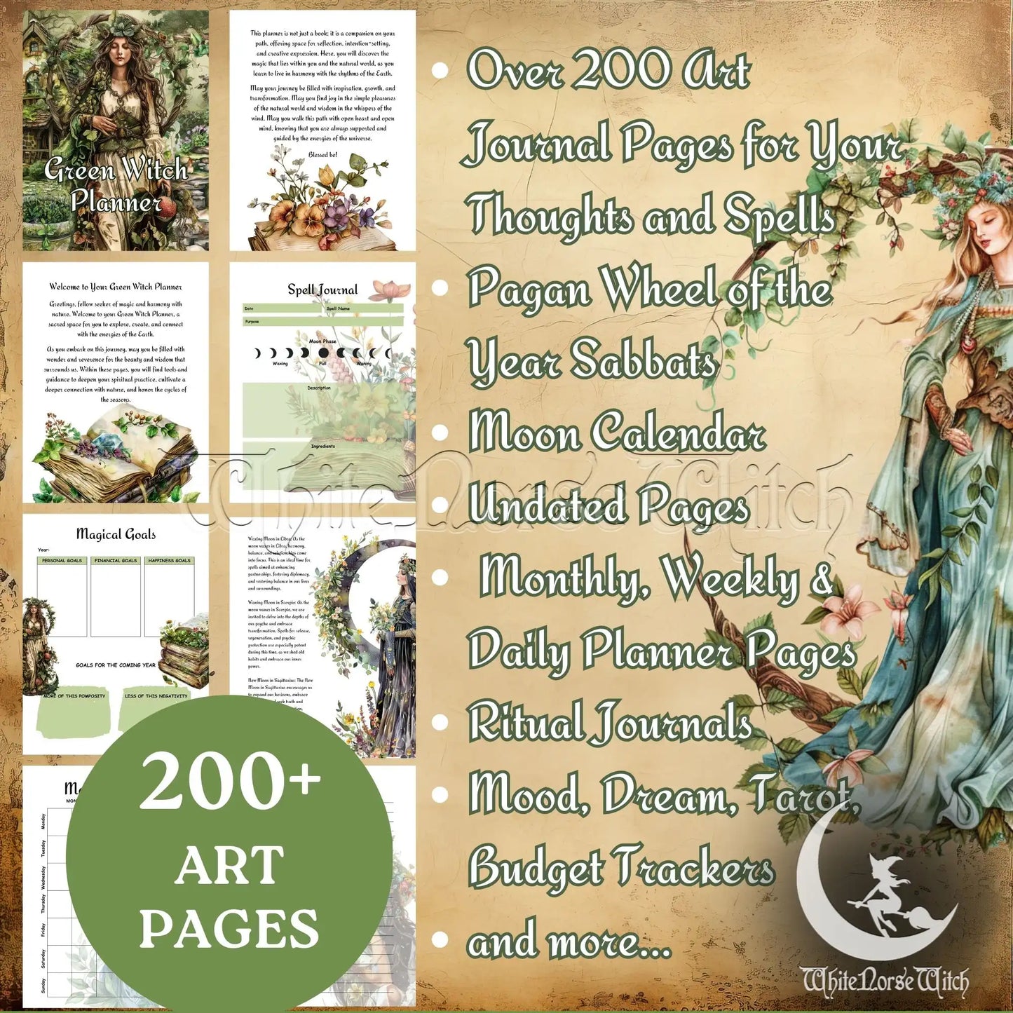 Willkommen in Ihrem magischen Heiligtum! Der Green Witch Digital Planner ist ein druckbares PDF-Tagebuch mit über 200 Seiten, das für Hexen, spirituelle Sucher und Praktizierende der grünen Magie gleichermaßen konzipiert wurde. Tauchen Sie ein in eine Welt mystischer Werkzeuge, künstlerischer Illustrationen und zeitlosen Wissens, die Ihren spirituellen Weg bereichern sollen.