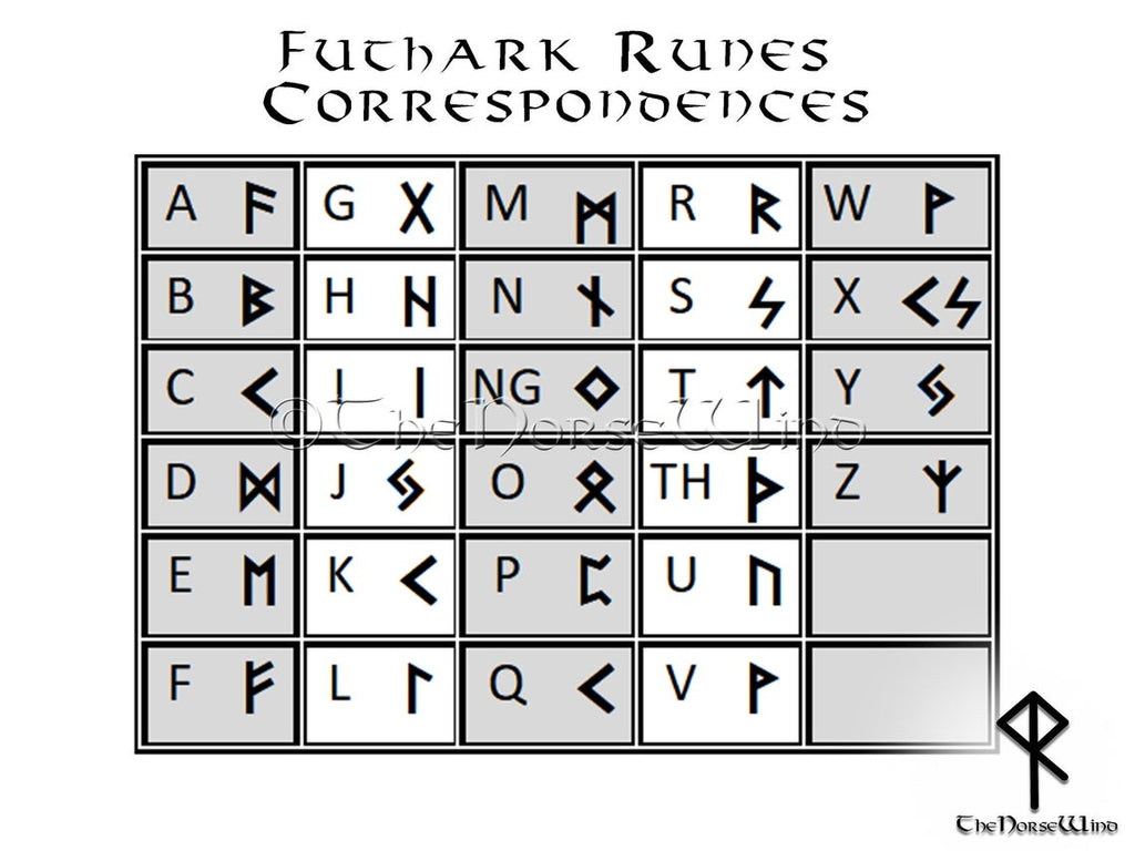 Werfen Sie einen Blick auf die Tabelle mit den Runenkorrespondenzen, um zu sehen, wie Ihre Inschrift aussehen wird.