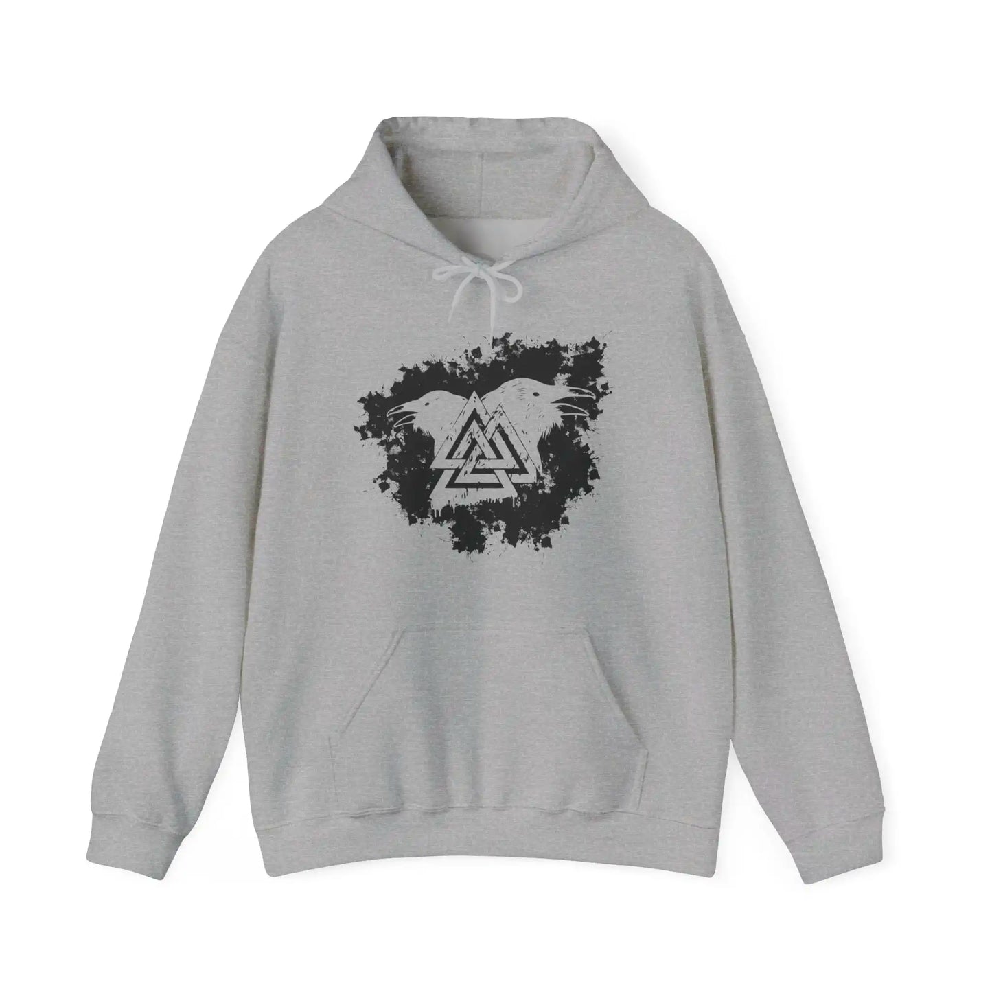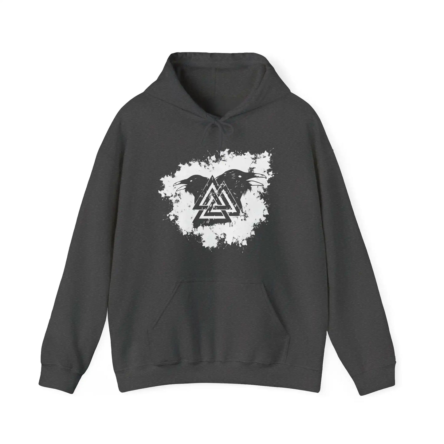 Dieses Unisex-Sweatshirt zeigt das ikonische Valknut-Symbol und Odins zwei Raben Huginn und Muninn und ist damit eine ausgezeichnete Wahl für Fans der nordischen Mythologie und des Wikingererbes. Unser Viking Ravens Hoodie ist fachmännisch verarbeitet und bietet sowohl Komfort als auch Stil. Er verkörpert das unverwechselbare Valknut-Symbol und Odins treue Raben. Dieses Sweatshirt ist die perfekte Ergänzung für jede Garderobe und ermöglicht es Ihnen, Ihre Liebe zur nordischen Mythologie und zum Wikingererbe auf einzigartige Weise zum Ausdruck zu bringen. Es ist in verschiedenen Größen erhältlich und ein Muss für alle, die die nordische Kultur schätzen.