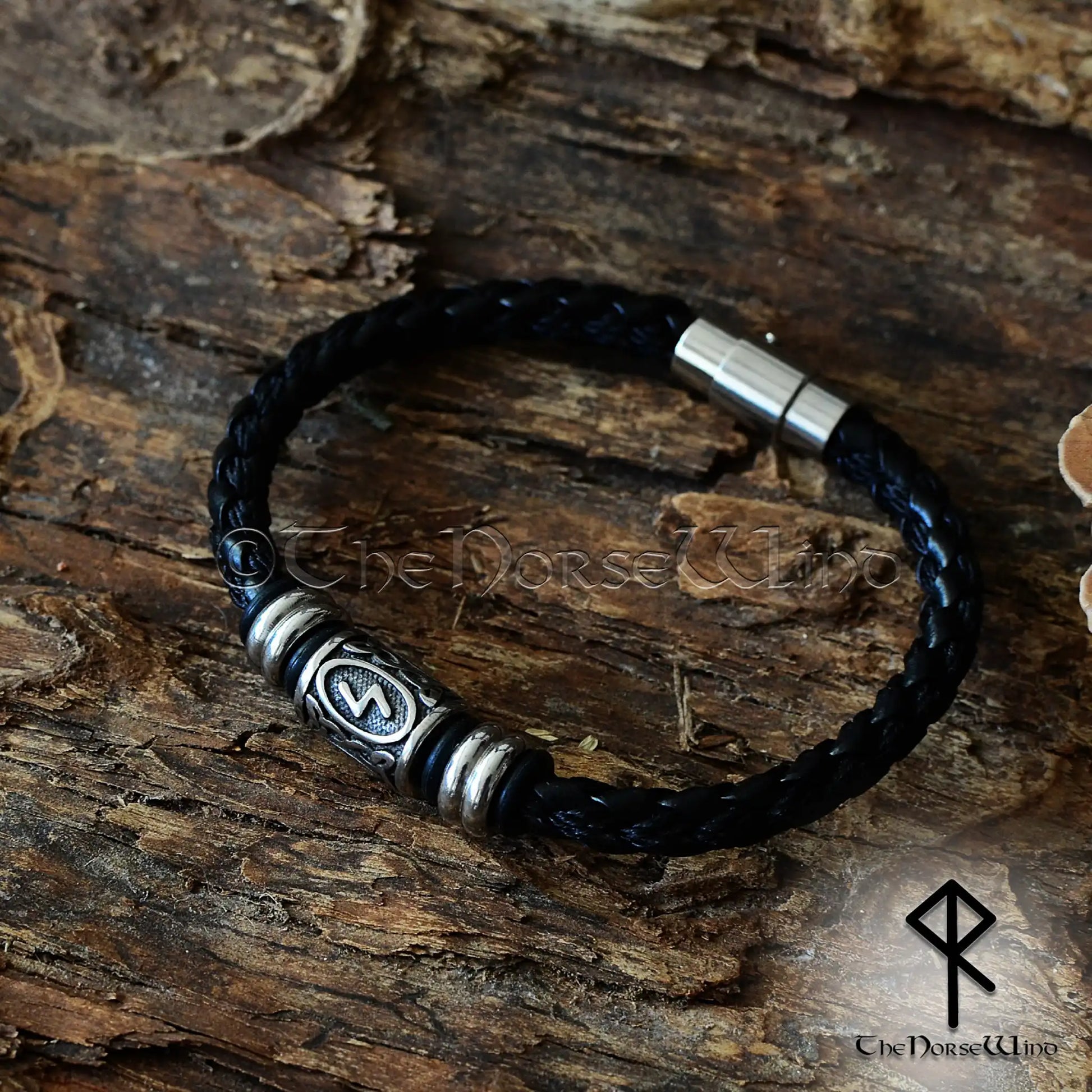 This personalized Viking rune bracelet combines a braided black leather cord with hypoallergenic stainless steel and a clean, powerful Futhark rune bead. Choose the rune that matters to you and wear it as a subtle Norse talisman—minimal, strong, and built to last.