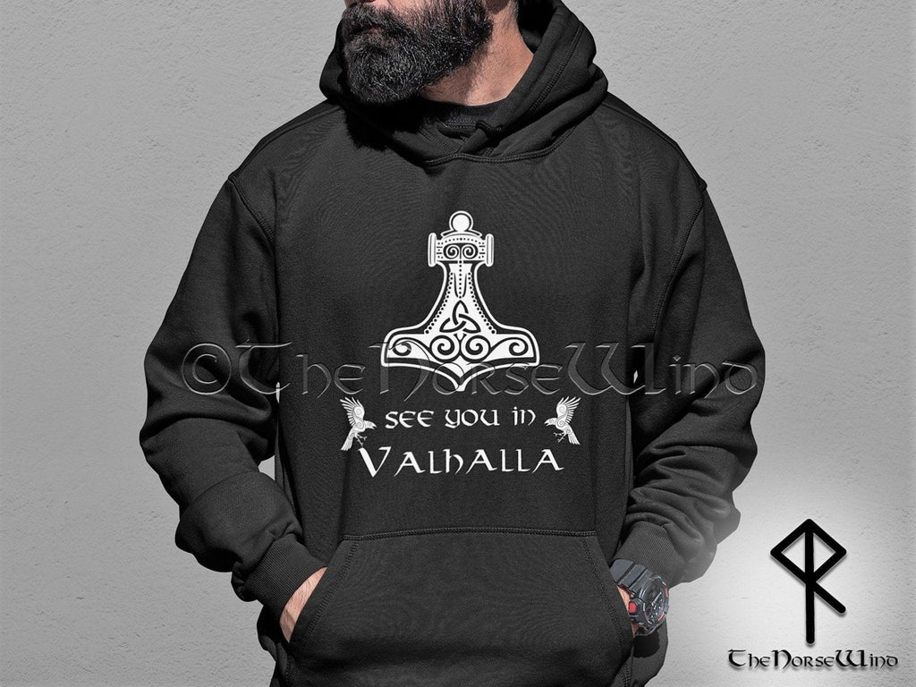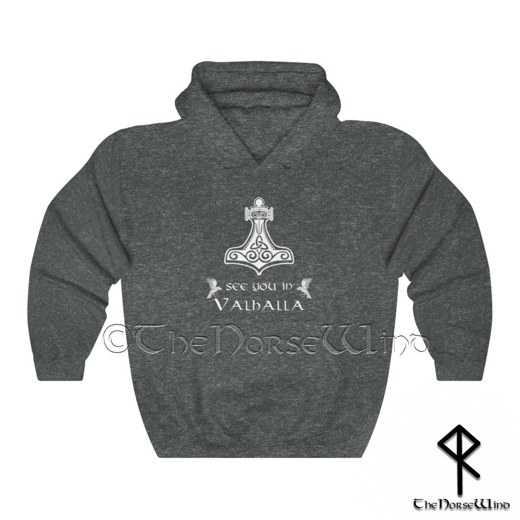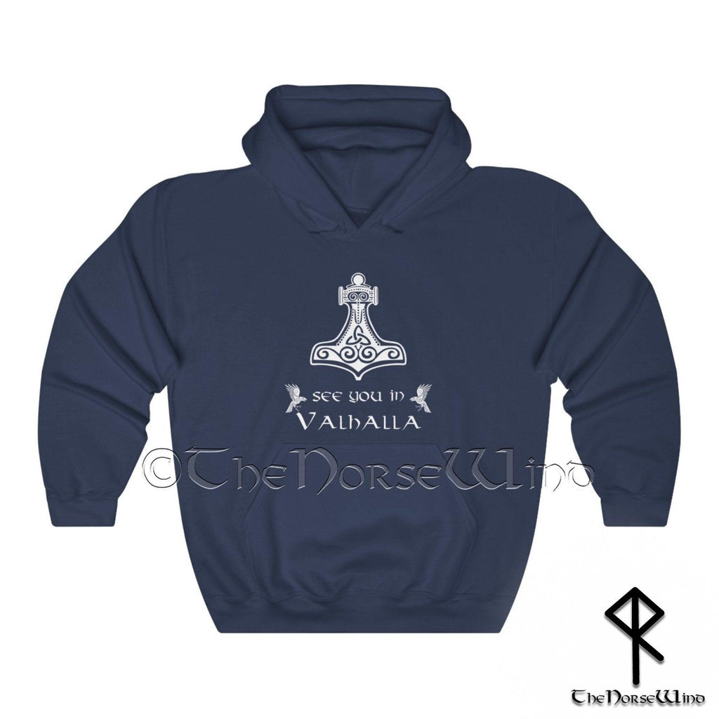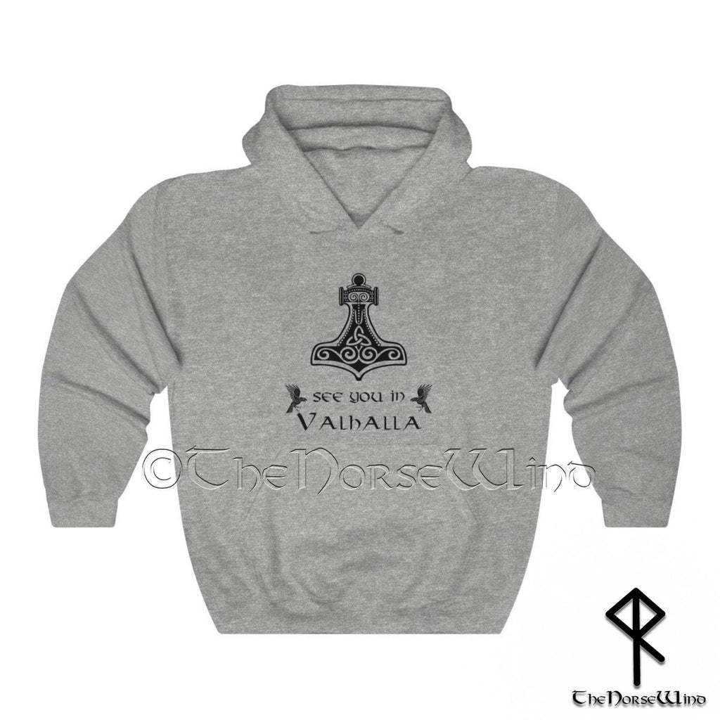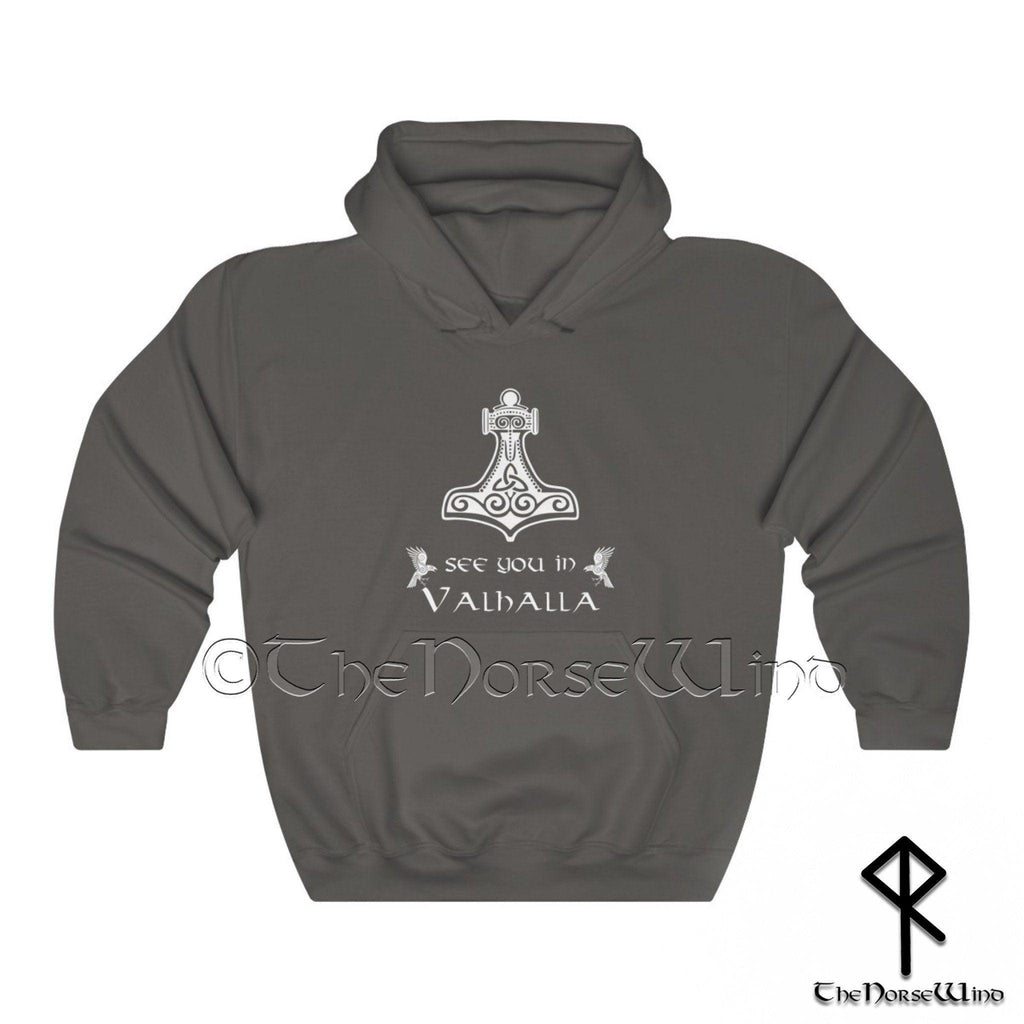 Thors Hammer Hoodie Mjolnir Wikinger Sweatshirt, See You in Valhalla Unisex Kapuzenpullover, Wikinger Kleidung, Nordische Mythologie, S-4XL