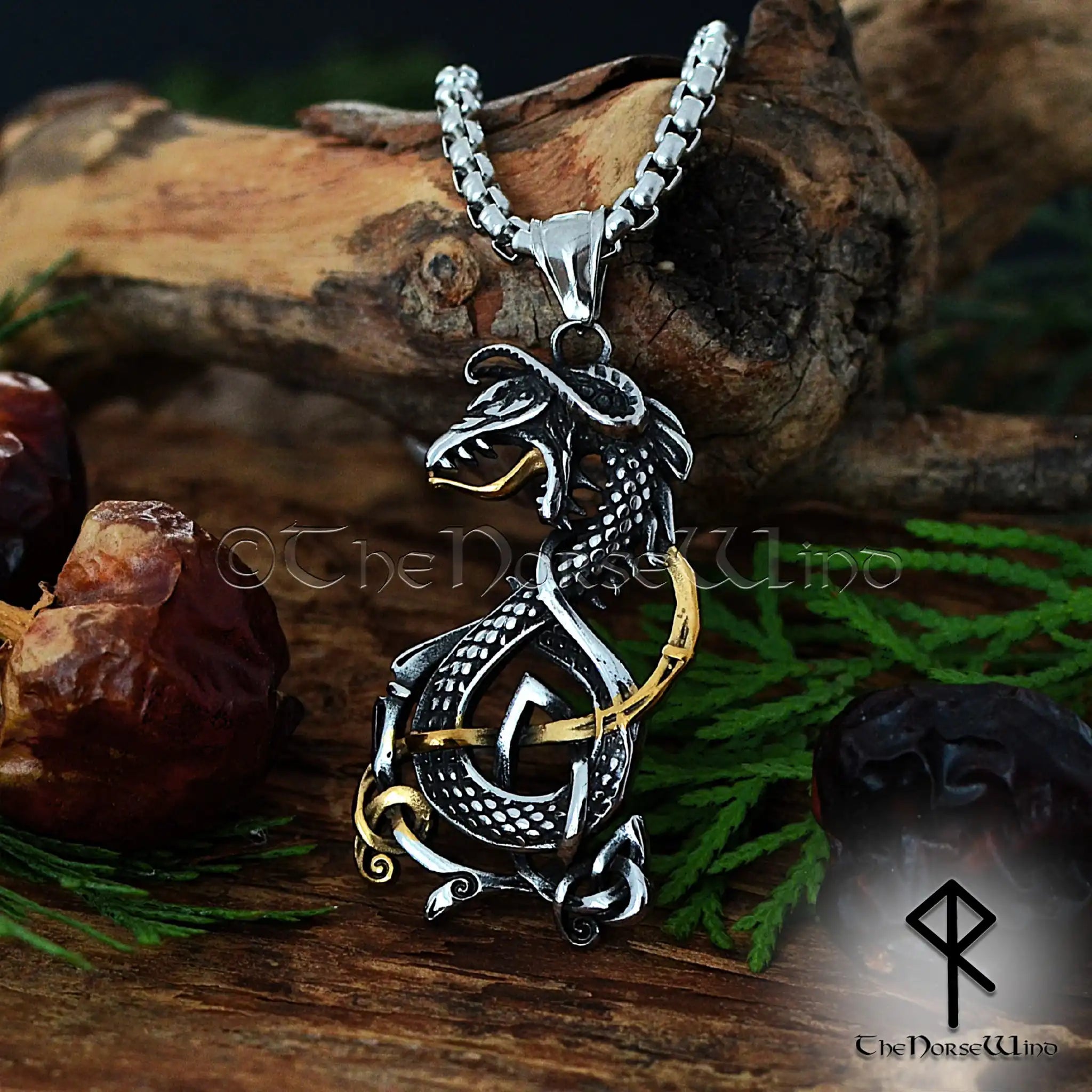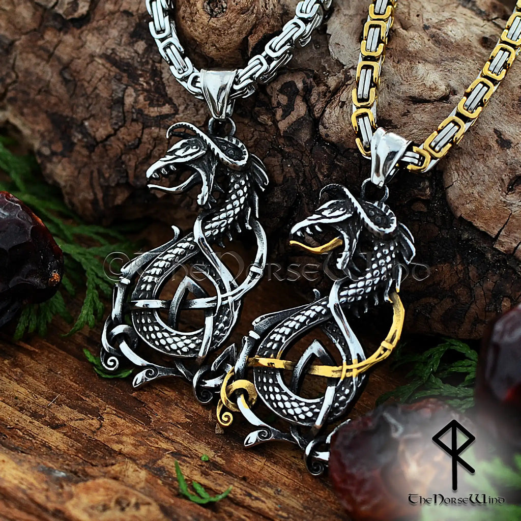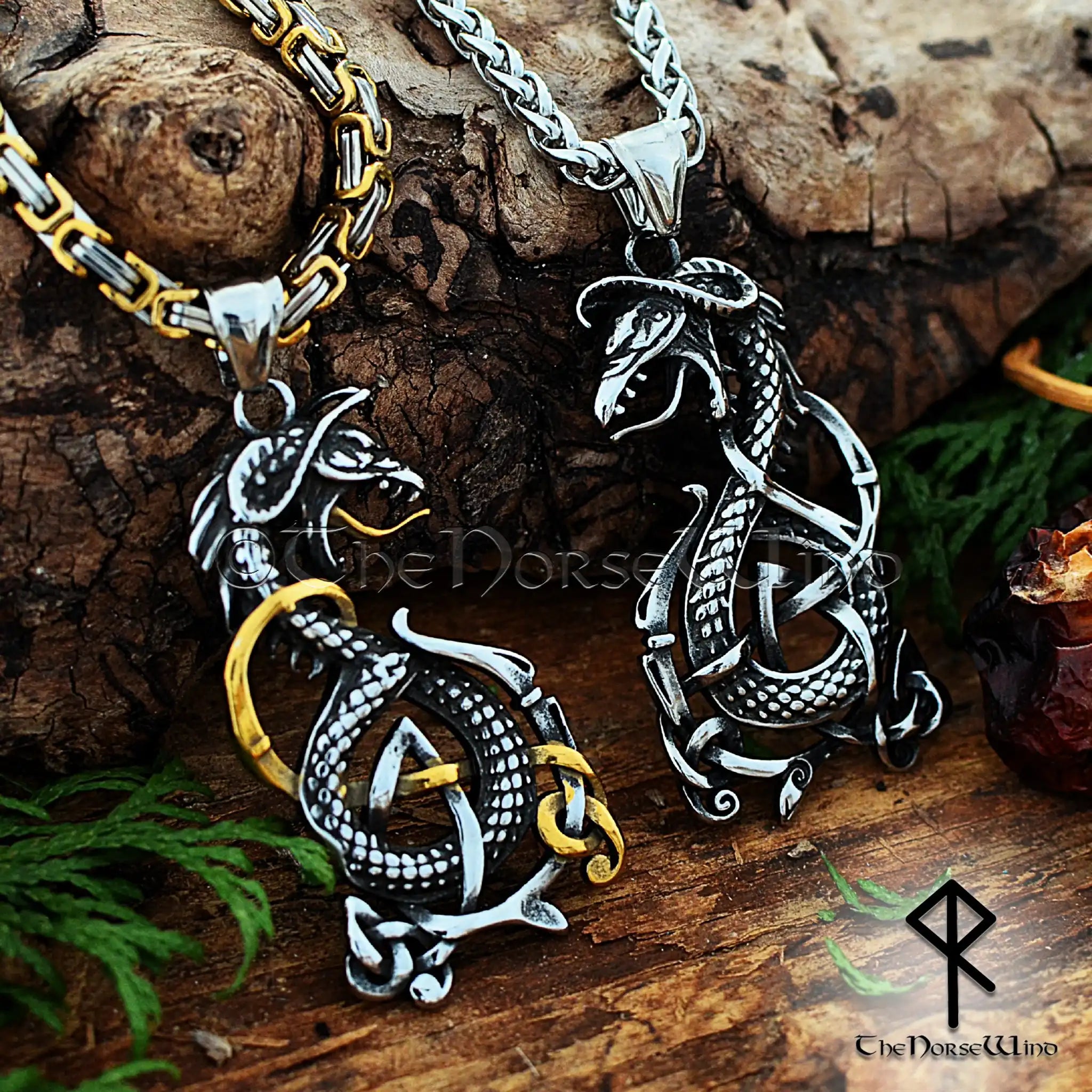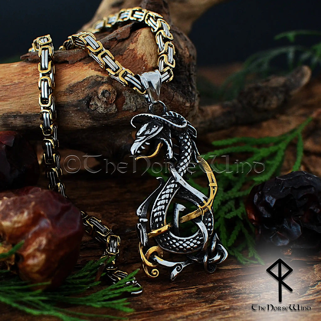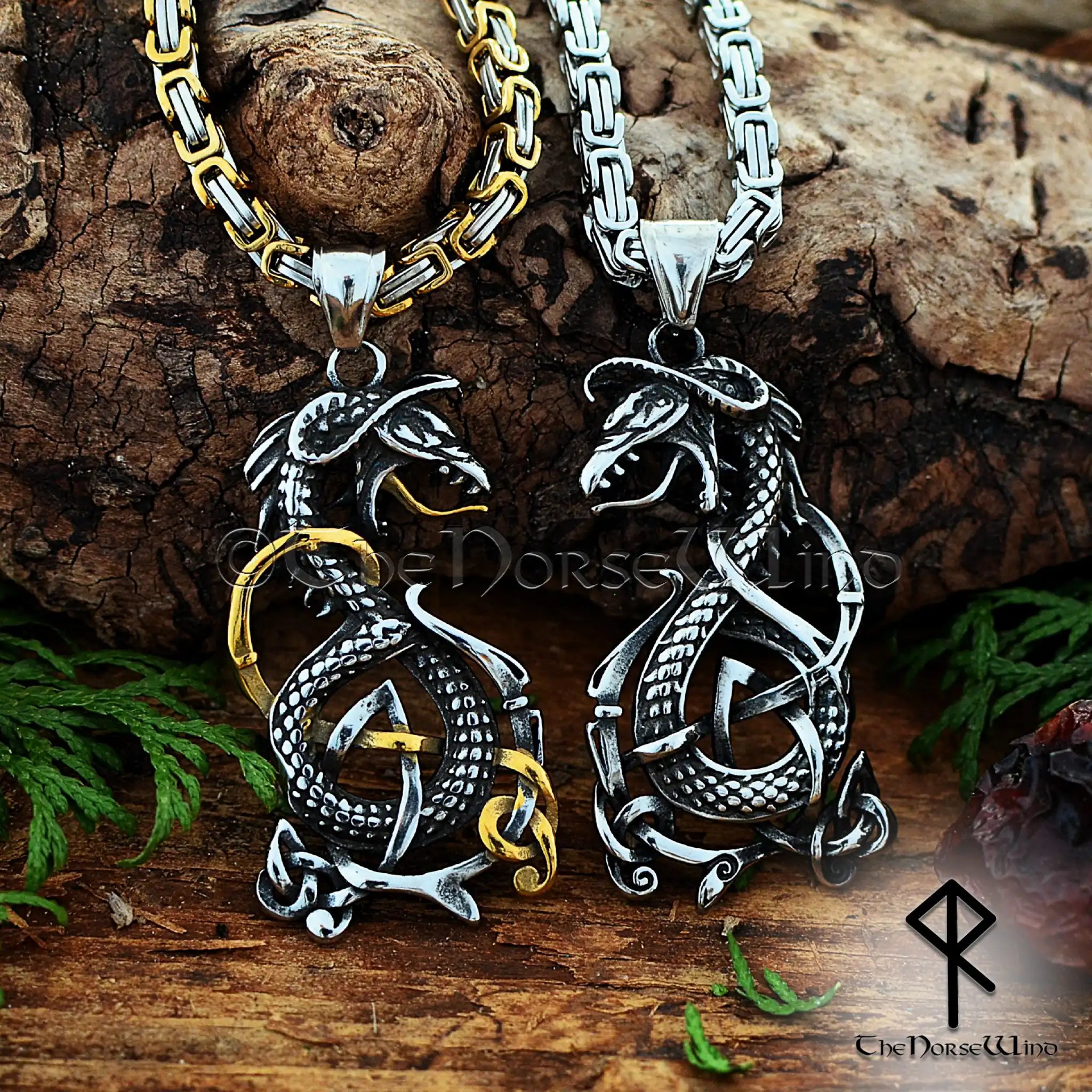 Wikinger Ouroboros Halskette – Jörmungandr Unendlichkeitsdrache Anhänger in Silber & Gold