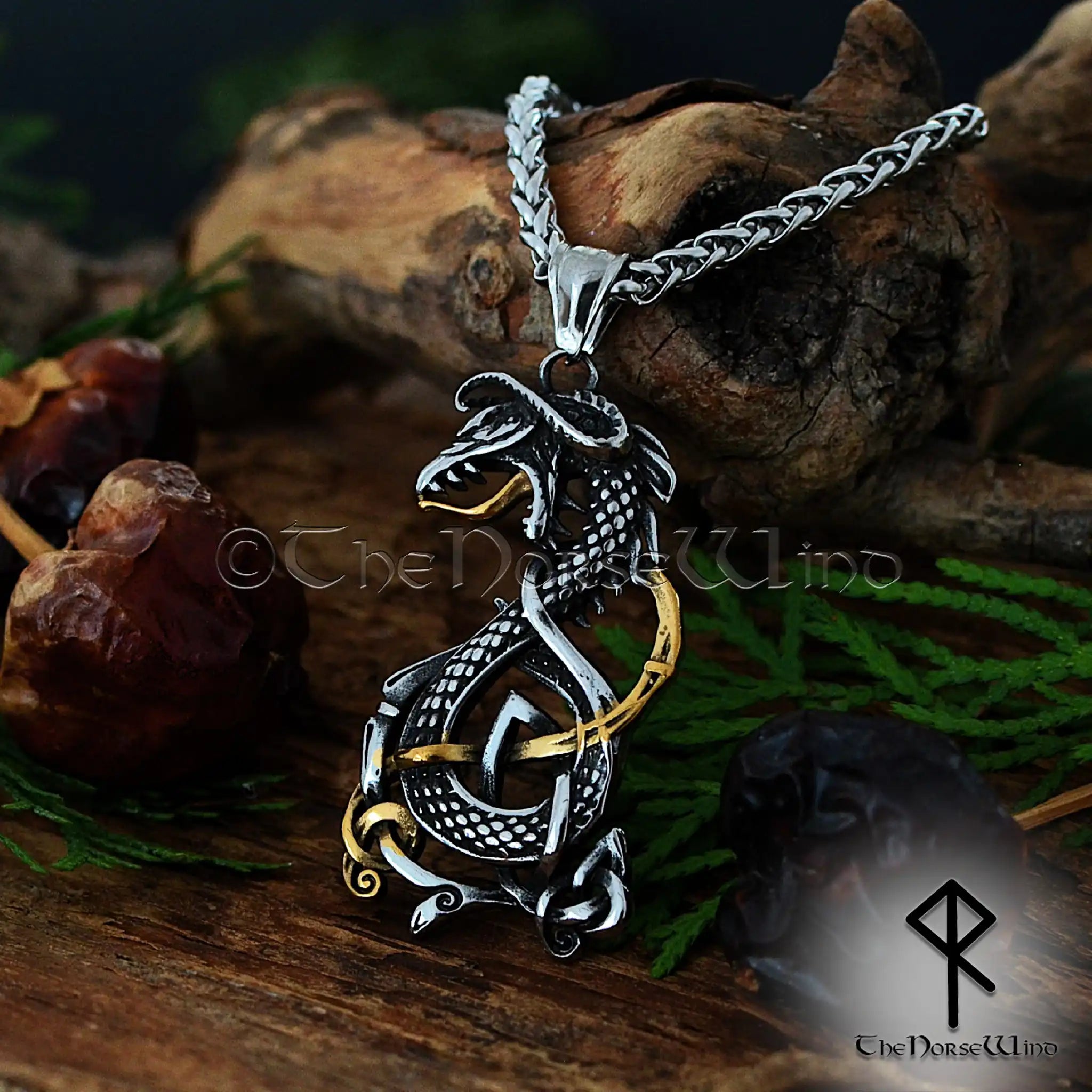 Nordischen Legenden zufolge umkreist Jörmungandr , die Midgardschlange, die Welt und symbolisiert das unendliche Gleichgewicht des Kosmos. Níðhöggr , der furchterregende Drache von Yggdrasil, verkörpert den Kreislauf von Zerstörung und Wiedergeburt. Dieser Anhänger verbindet Sie mit diesen uralten Kräften und erinnert Sie an Ihre innere Stärke und den unendlichen Kreislauf des Lebens.