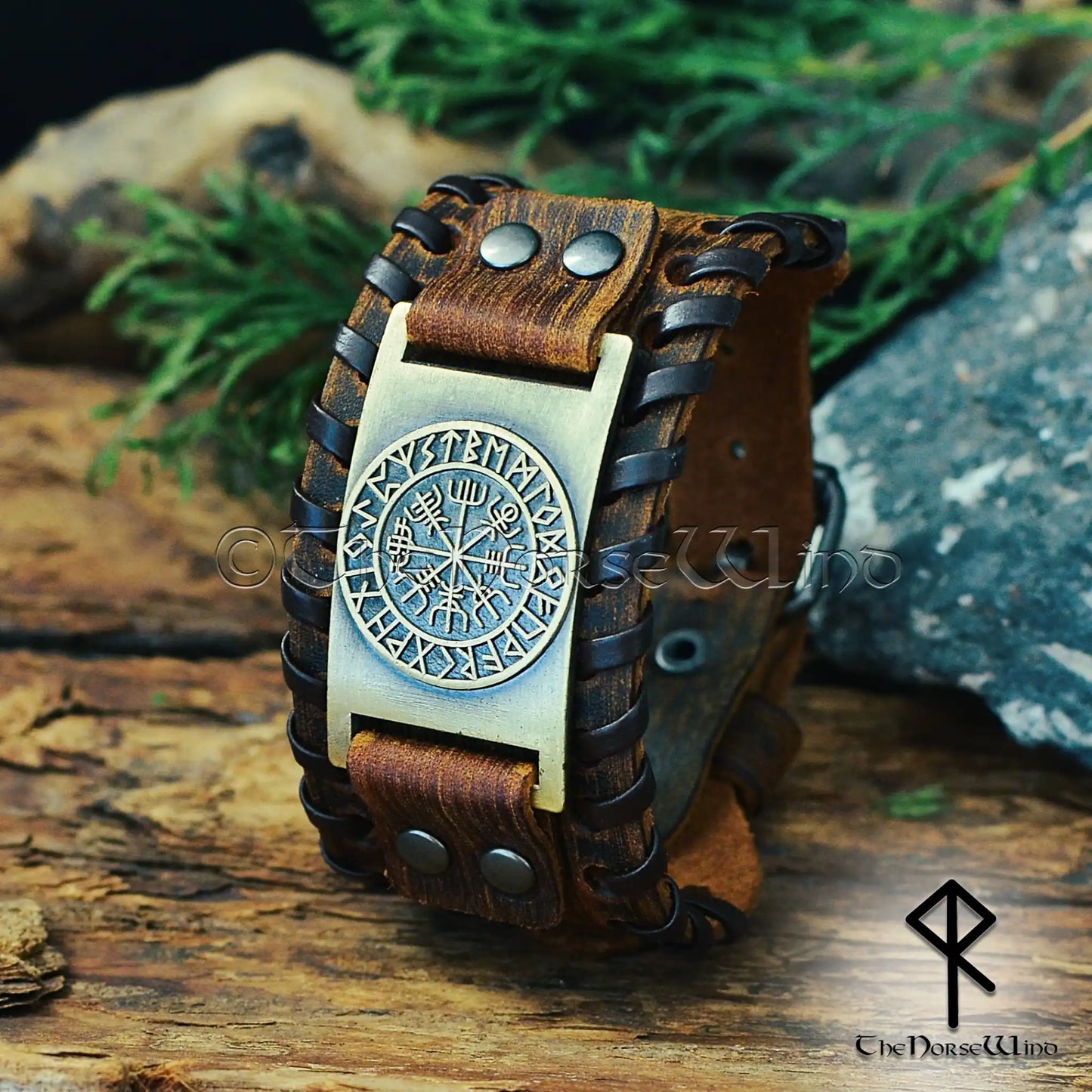 Wikinger Vegvisir Lederarmband - Handgefertigtes breites Armband