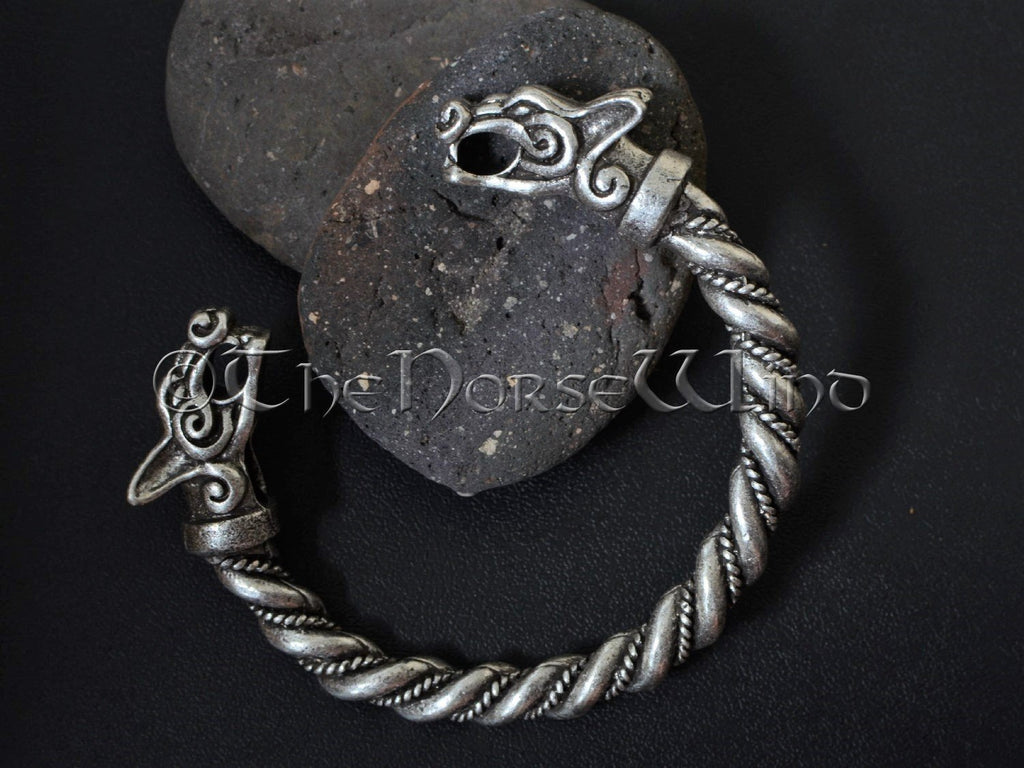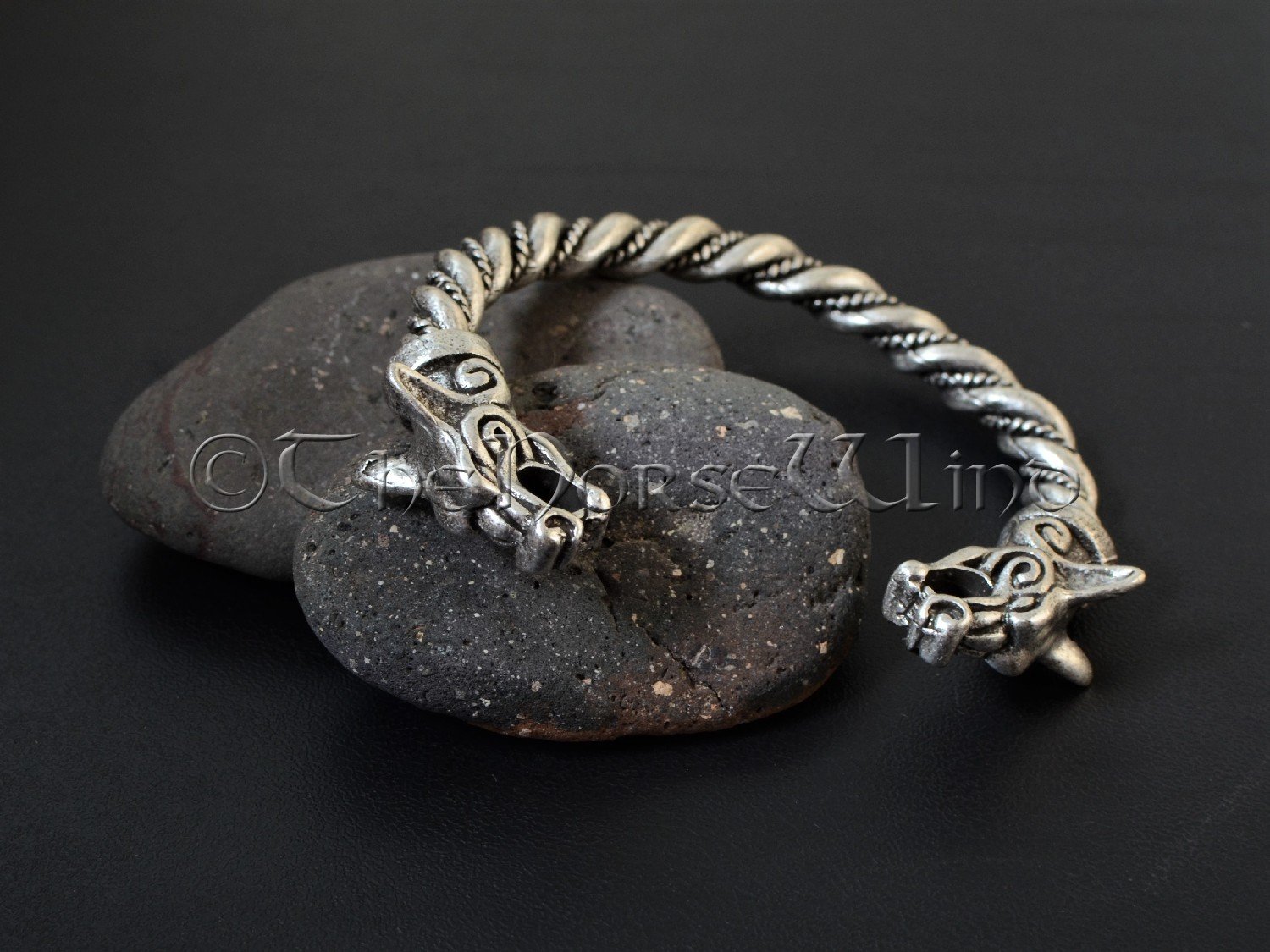 Dieses wunderschöne Wikinger-Drehmoment besteht aus einer tibetischen Silberlegierung mit Versilberung. Es ist flexibel, sodass Sie es an Ihr Handgelenk anpassen können.