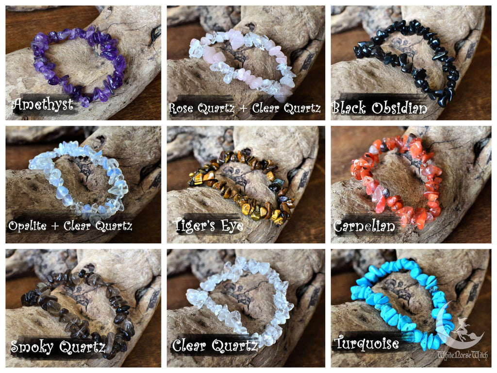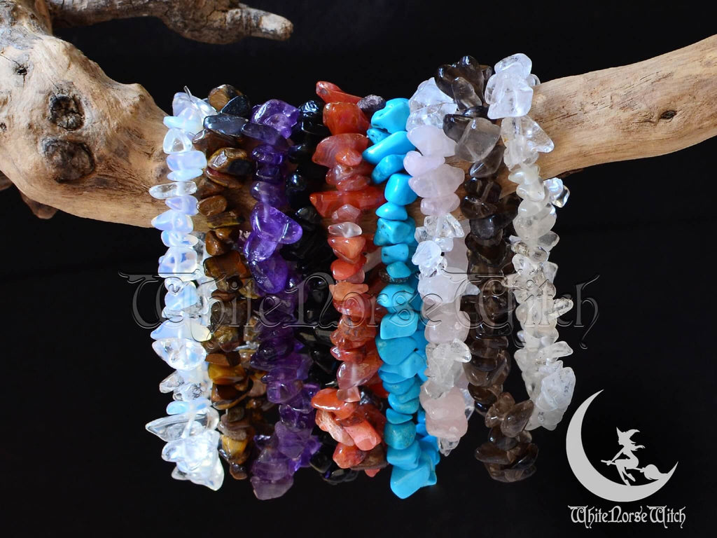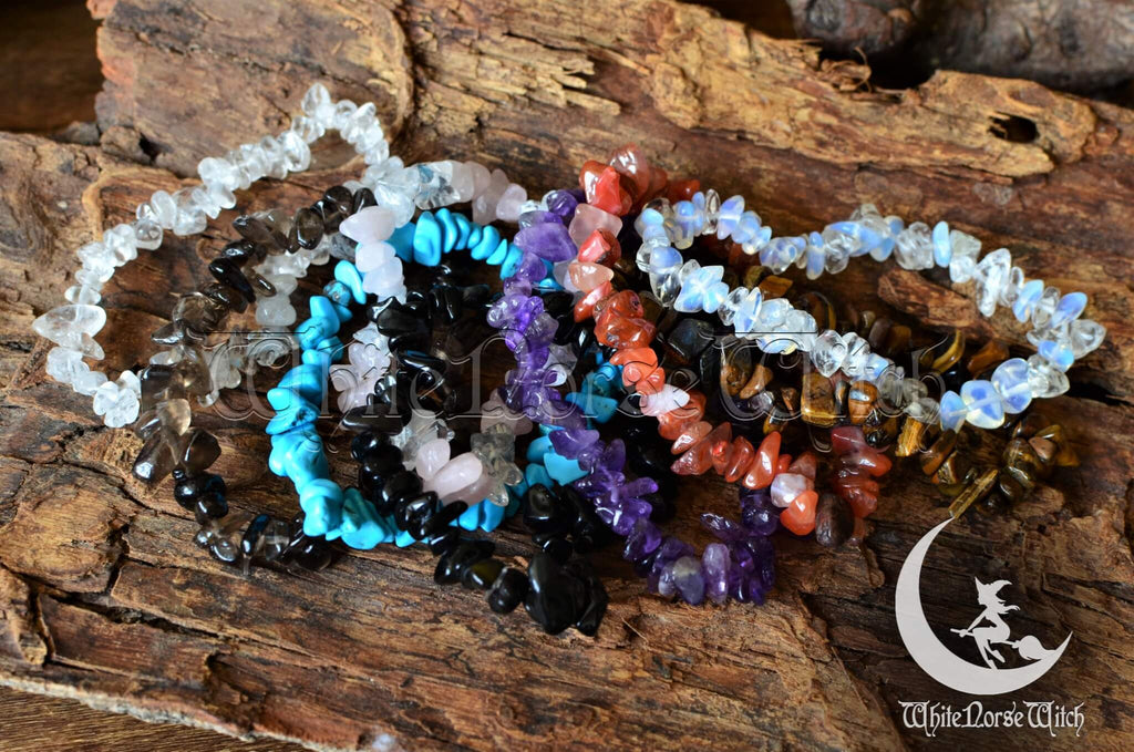Stretch-Armbänder mit Hexenkristallen – Stapelbare Wicca-Edelsteinsplitter-Armbänder mit Heilkristallen