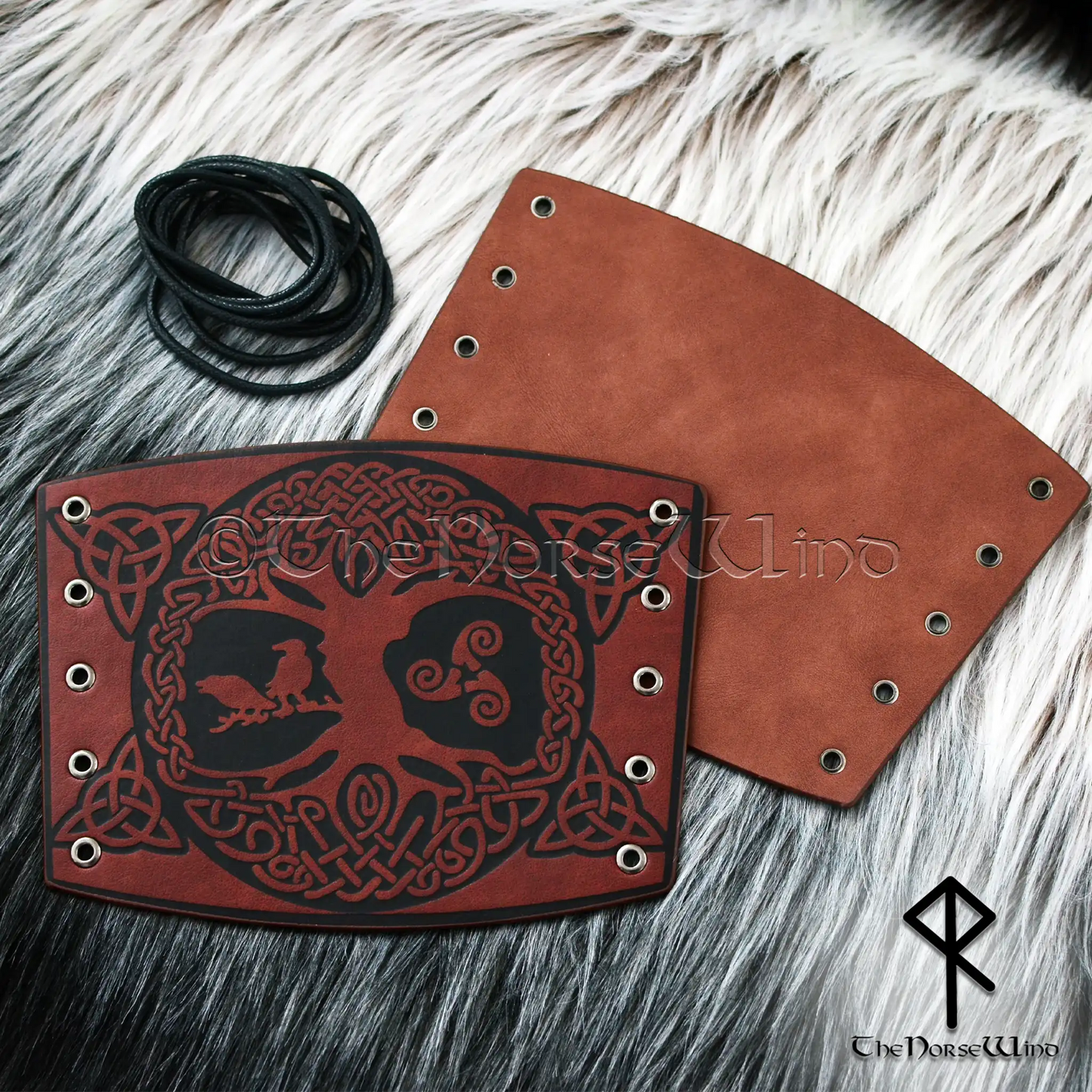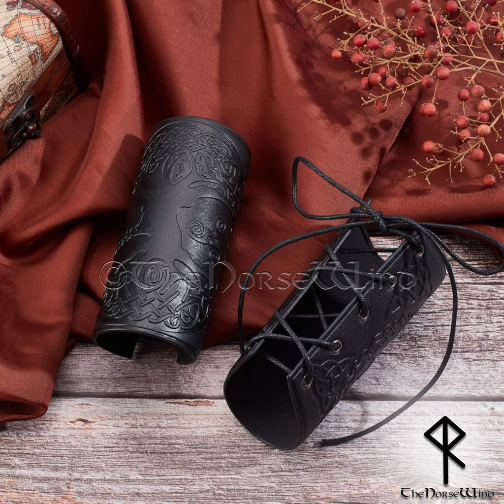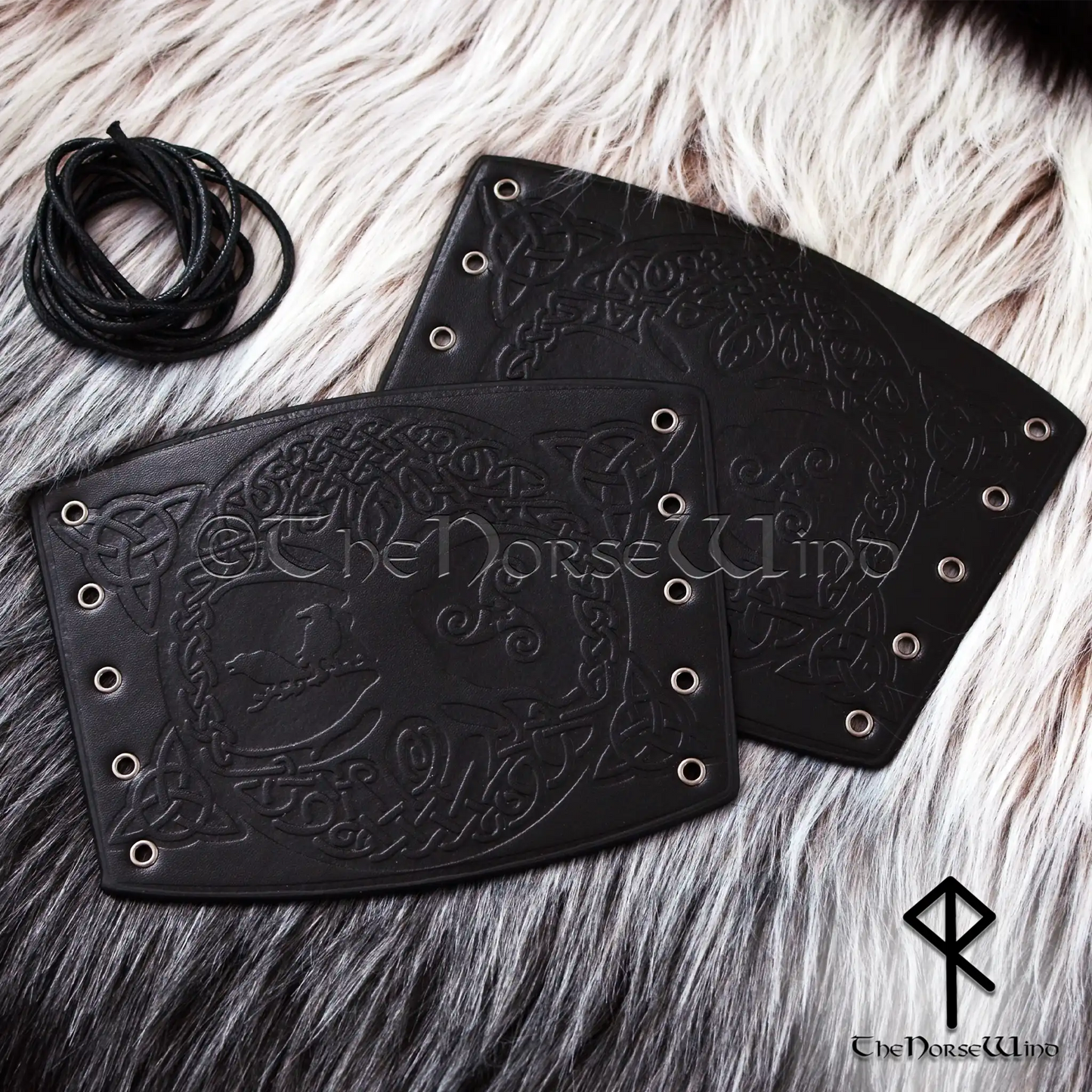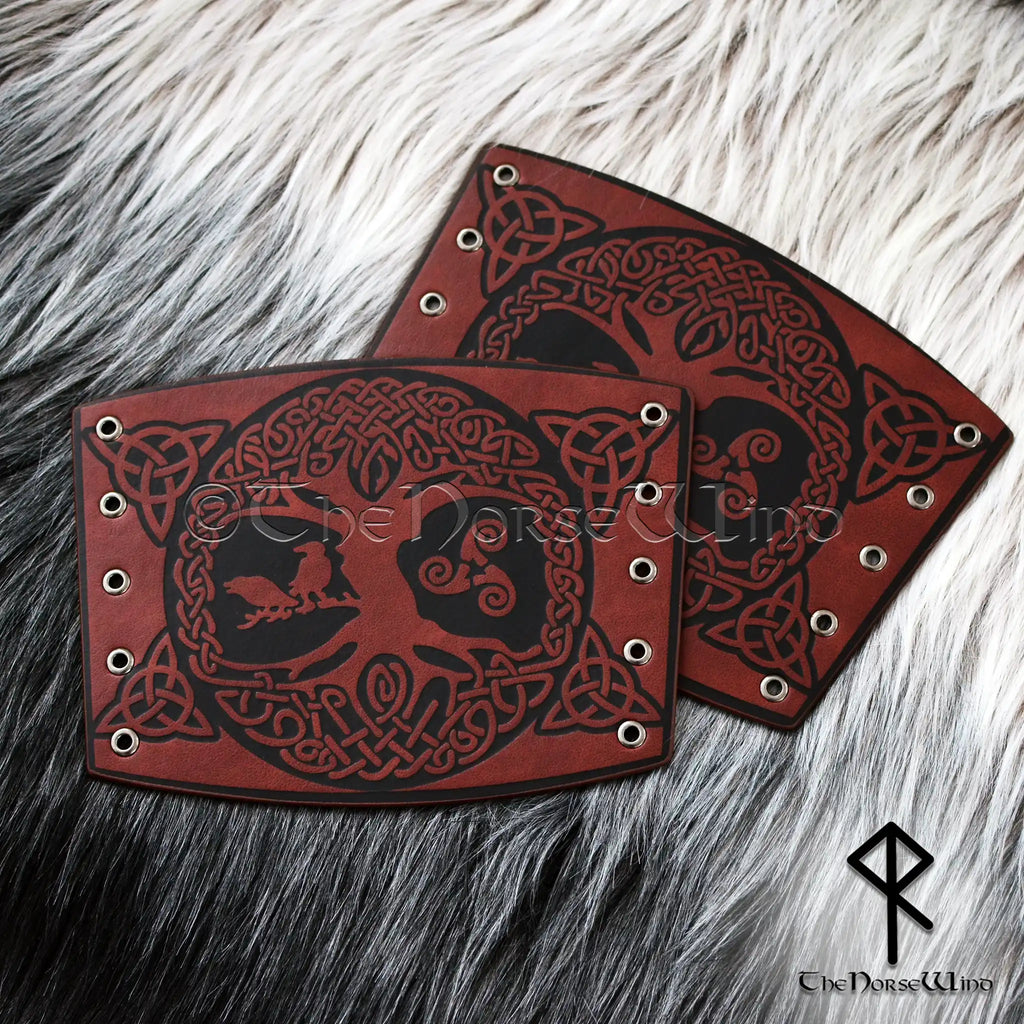 Yggdrasil Wikinger-Armschienen aus Leder, mittelalterliche keltische Armschützer
