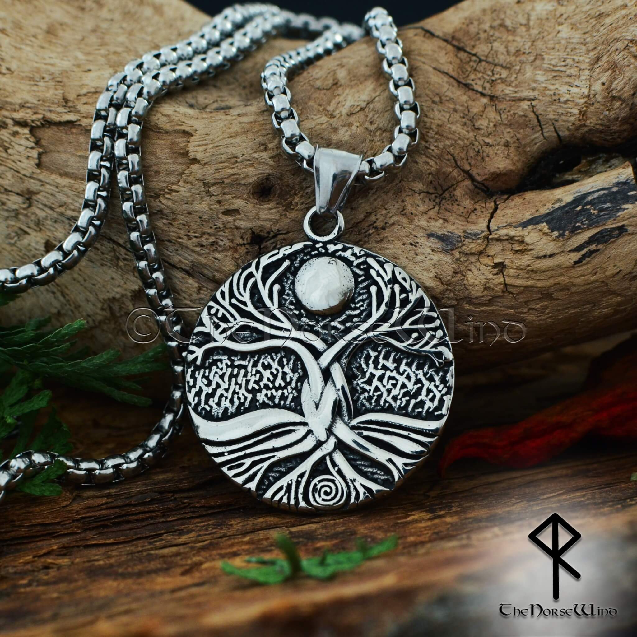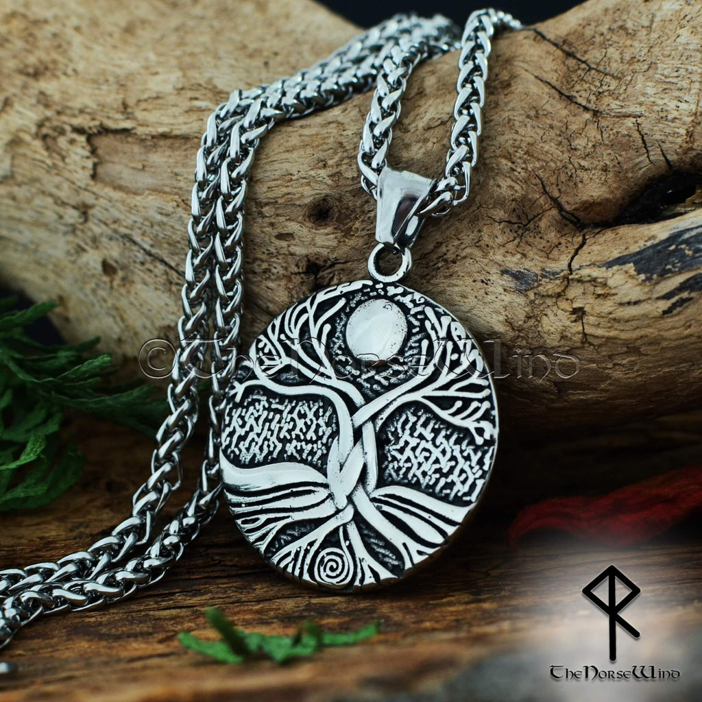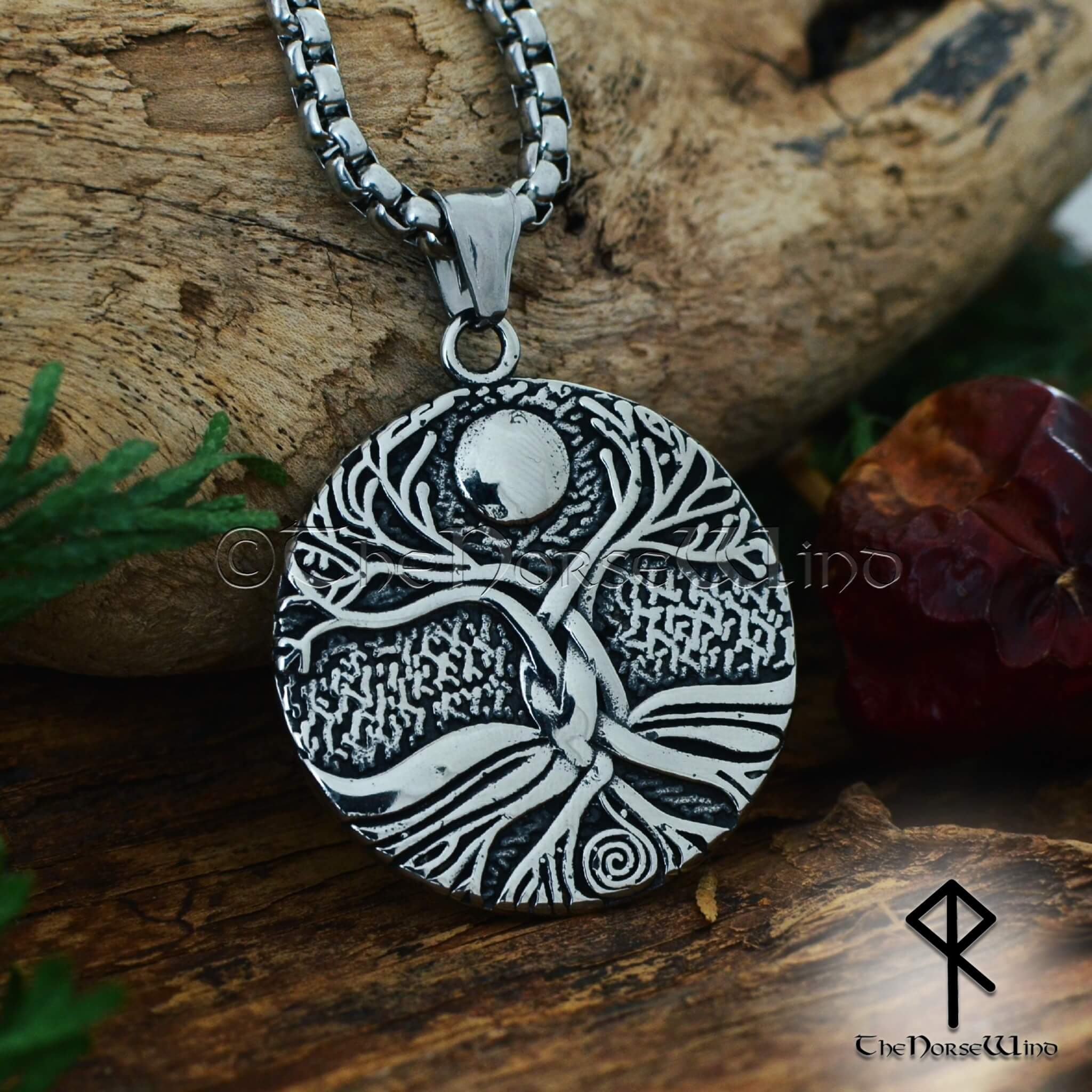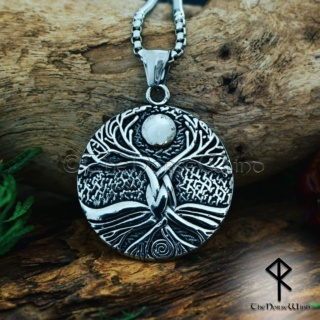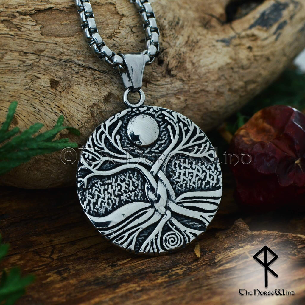 Yggdrasil Wikinger Halskette, Keltischer Lebensbaum Anhänger, Edelstahl
