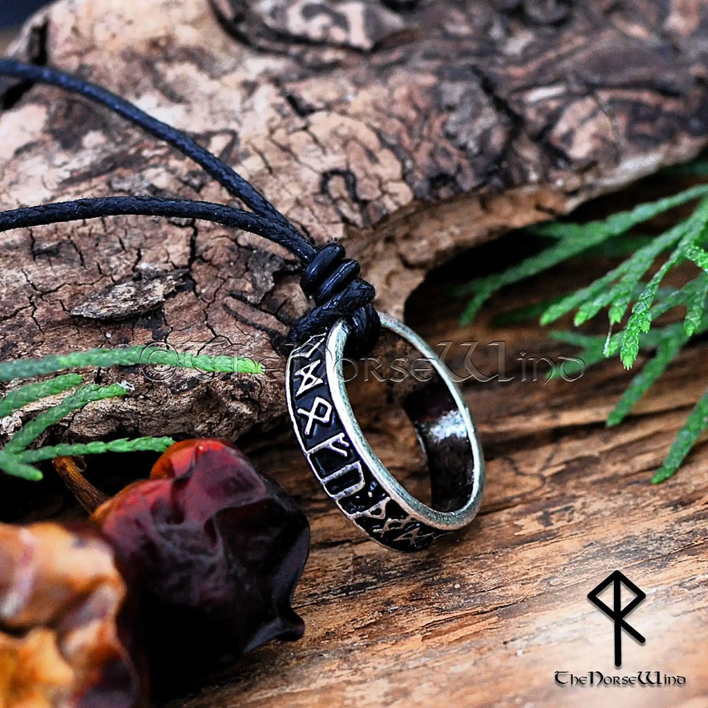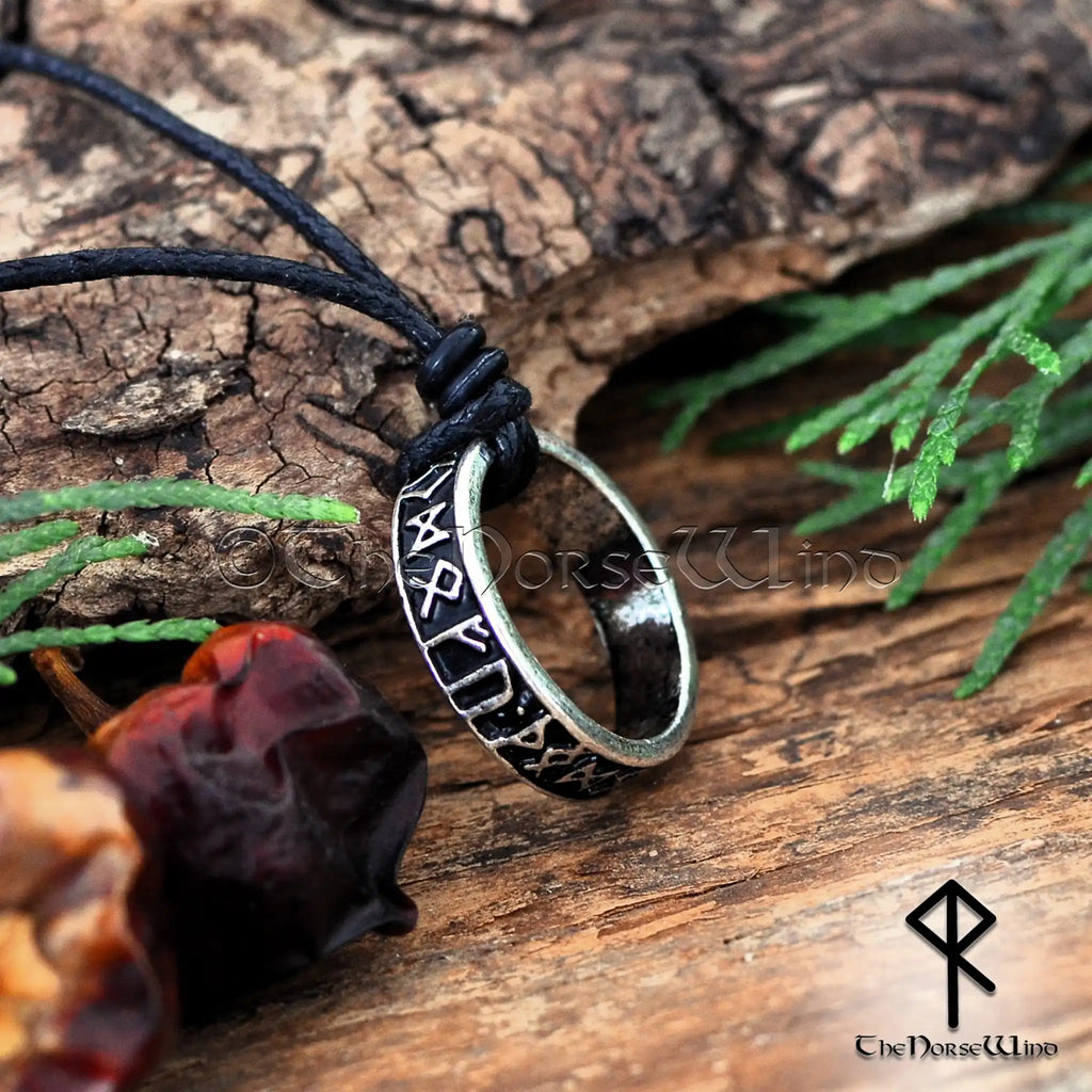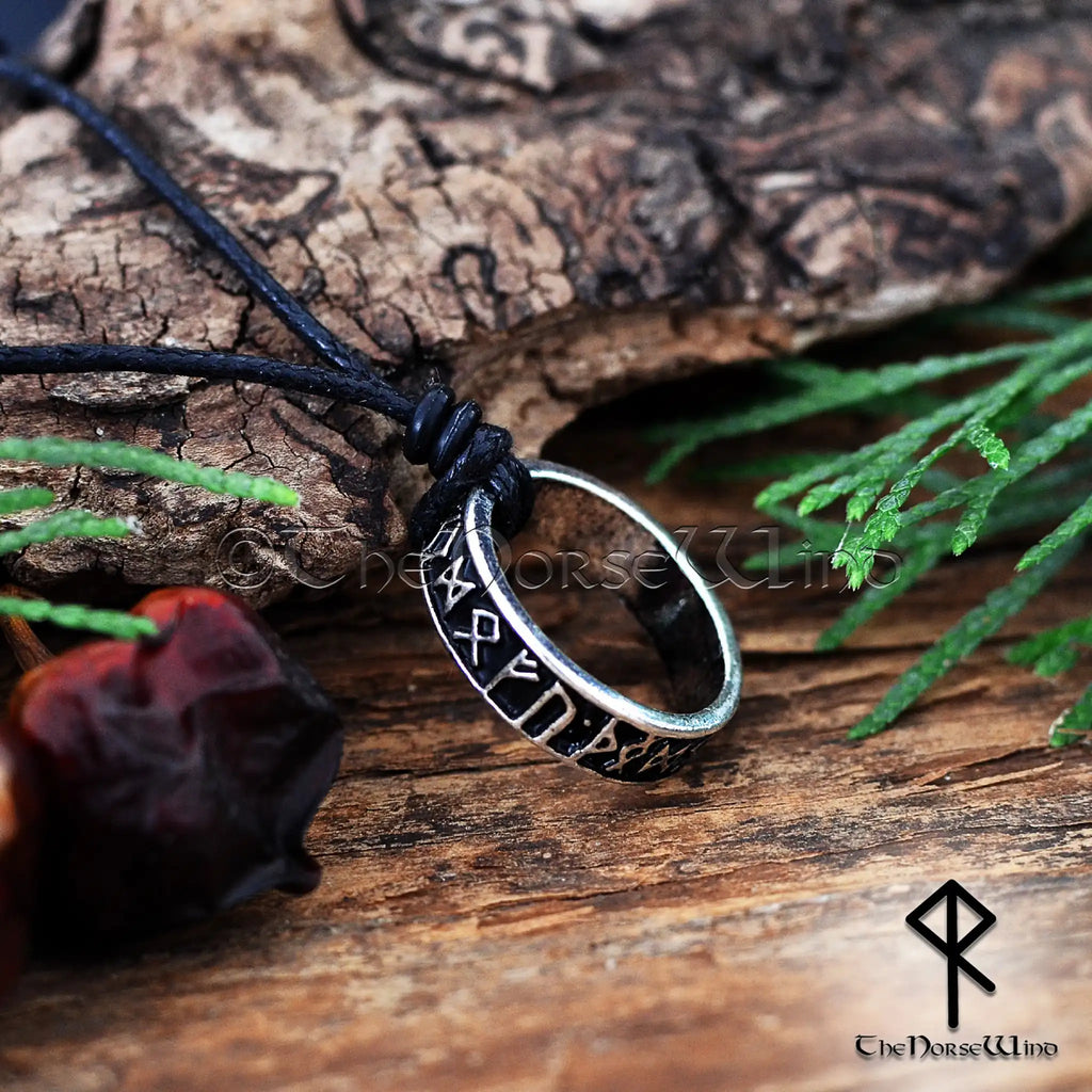 Carry a piece of Viking heritage with this Ancient Viking Runes Ring Necklace. This striking pendant is crafted from Tibetan silver and engraved with symbols from the Elder Futhark, the oldest known runic alphabet, used by ancient Norse peoples to convey powerful messages and meanings.