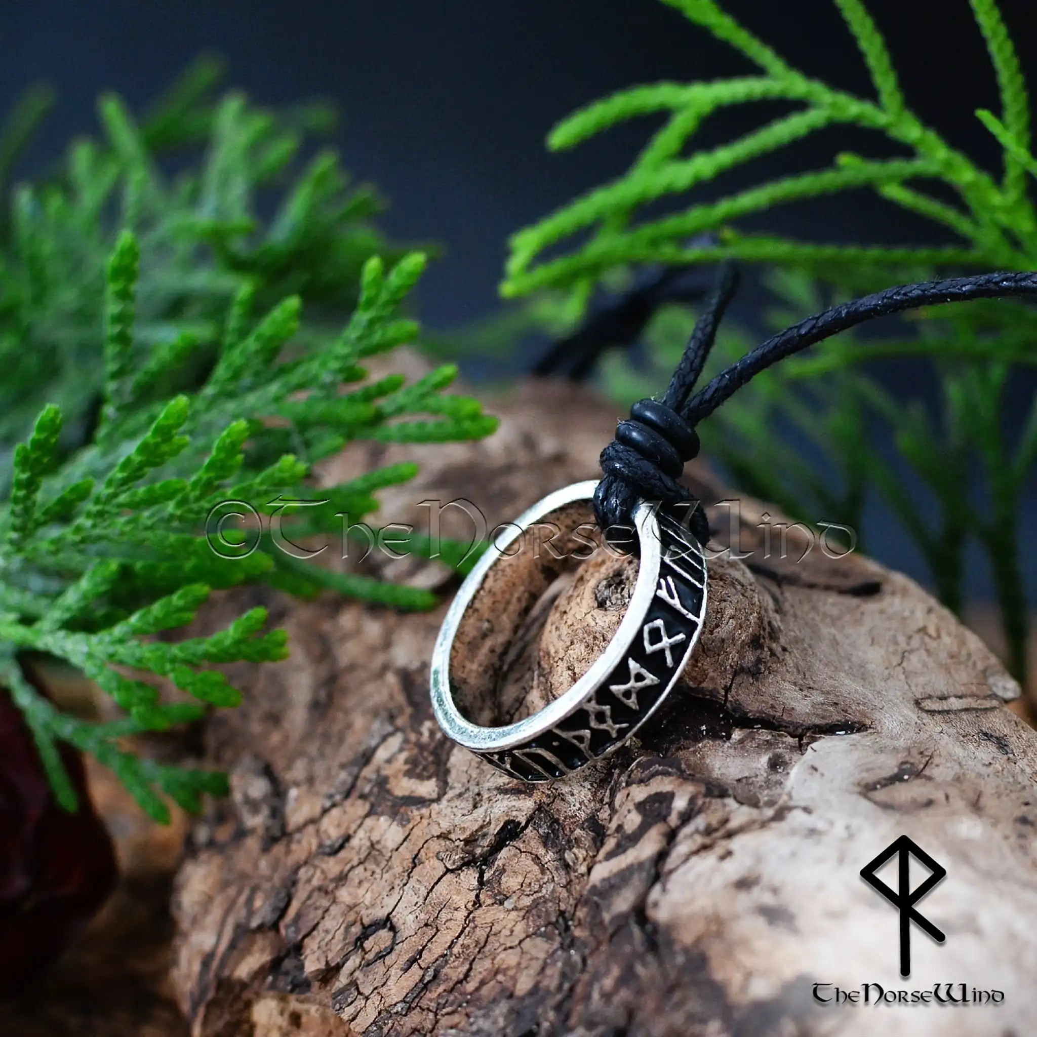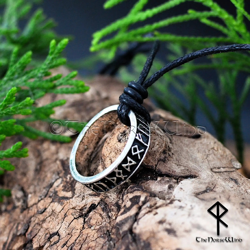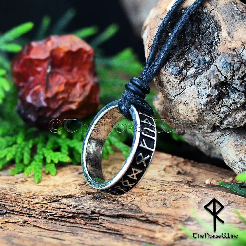 - Ring Pendant engraved with Runes symbols from the Elder Futhark (the ancient Norse alphabet)