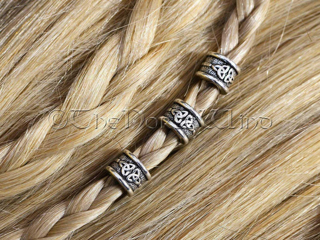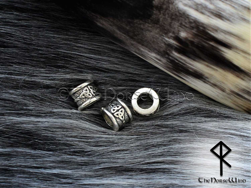 Viking Beard Beads Silver Celtic Knot Hair Rings. The beads are made of antique Tibetan silver (Lead Free & Nickel Free) through casting technology and hand polished by me.