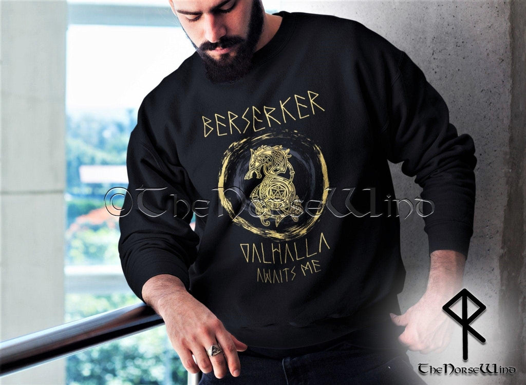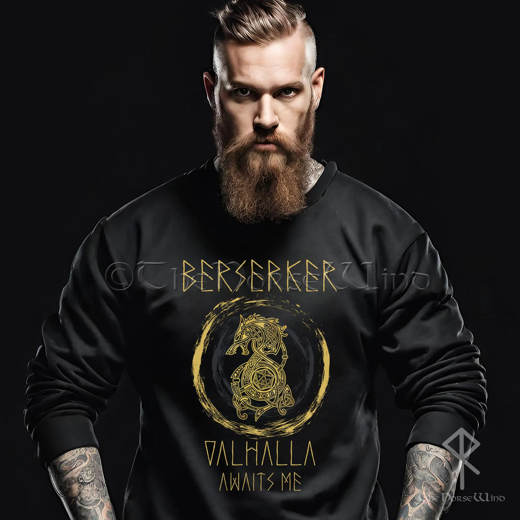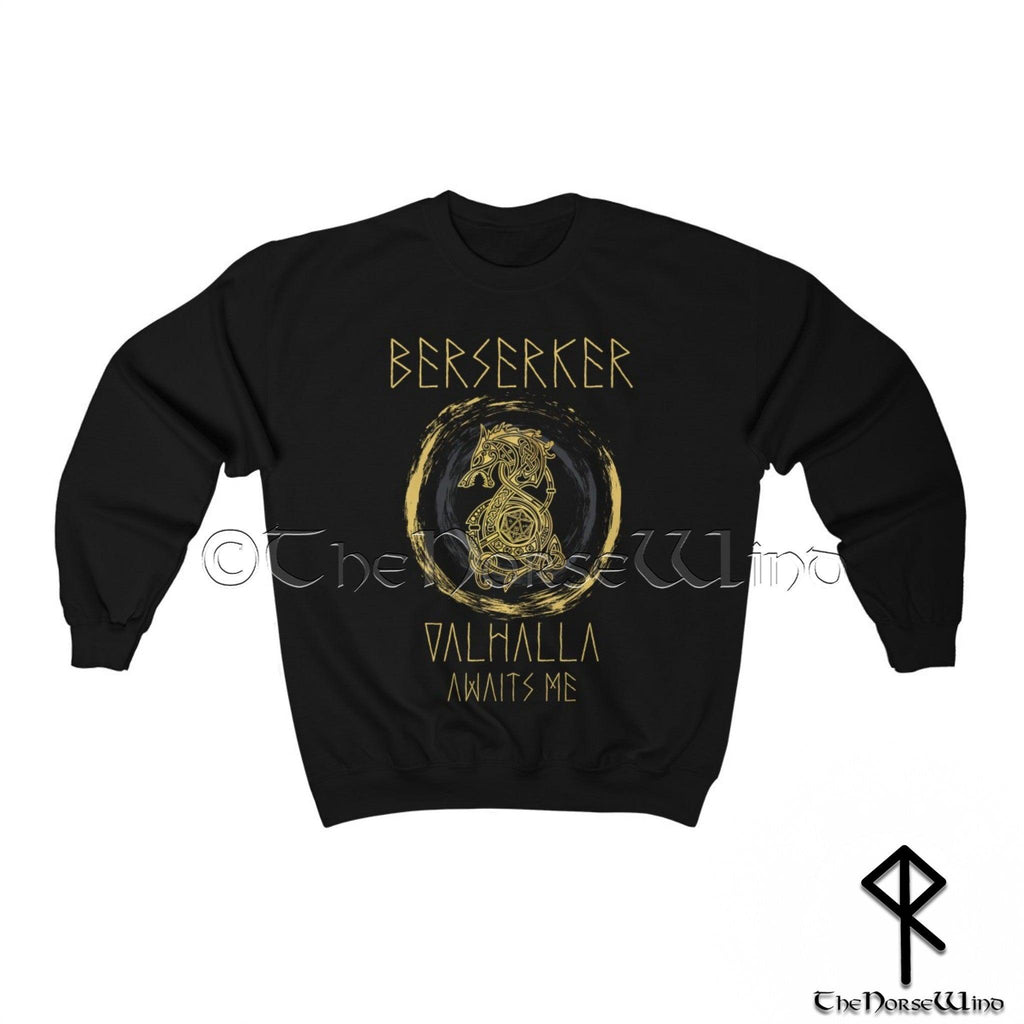 - Eye-catching bear + Celtic knot design with the phrase "Berserker. Valhalla Awaits Me"