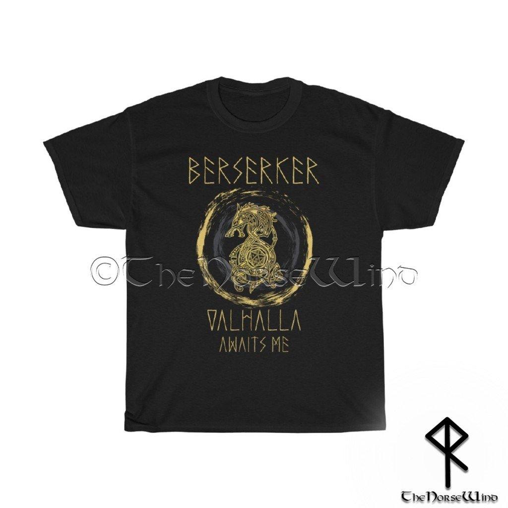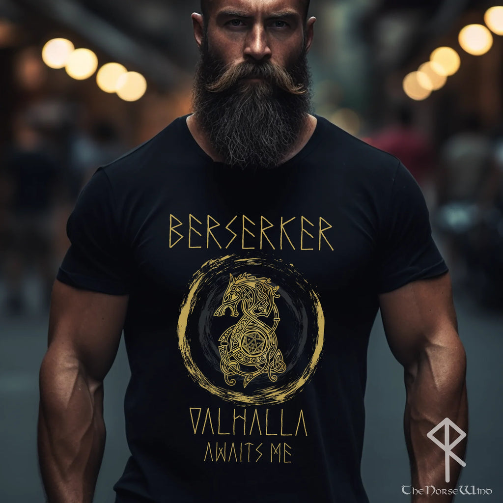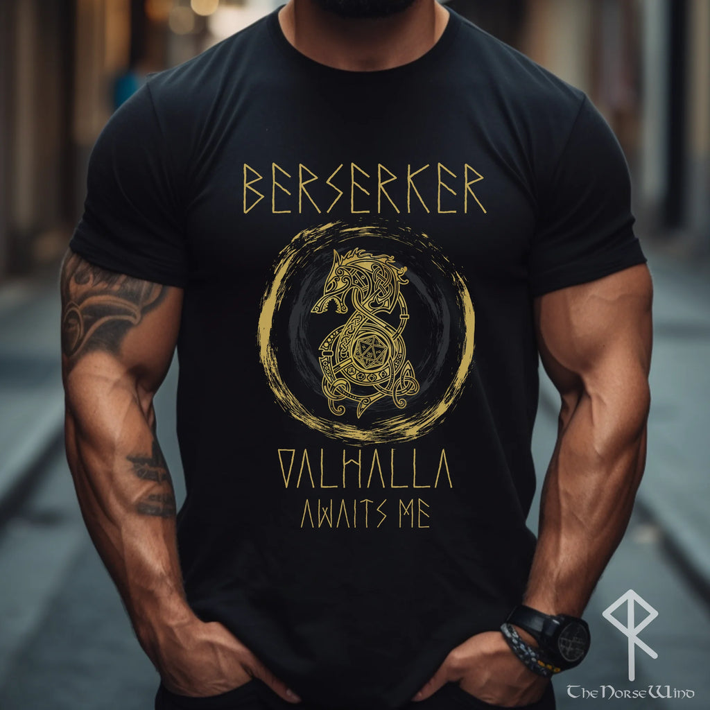 Emblazoned with the bold proclamation, "BERSERKER Valhalla Awaits Me," this shirt is not just clothing - it's a statement of your indomitable spirit.