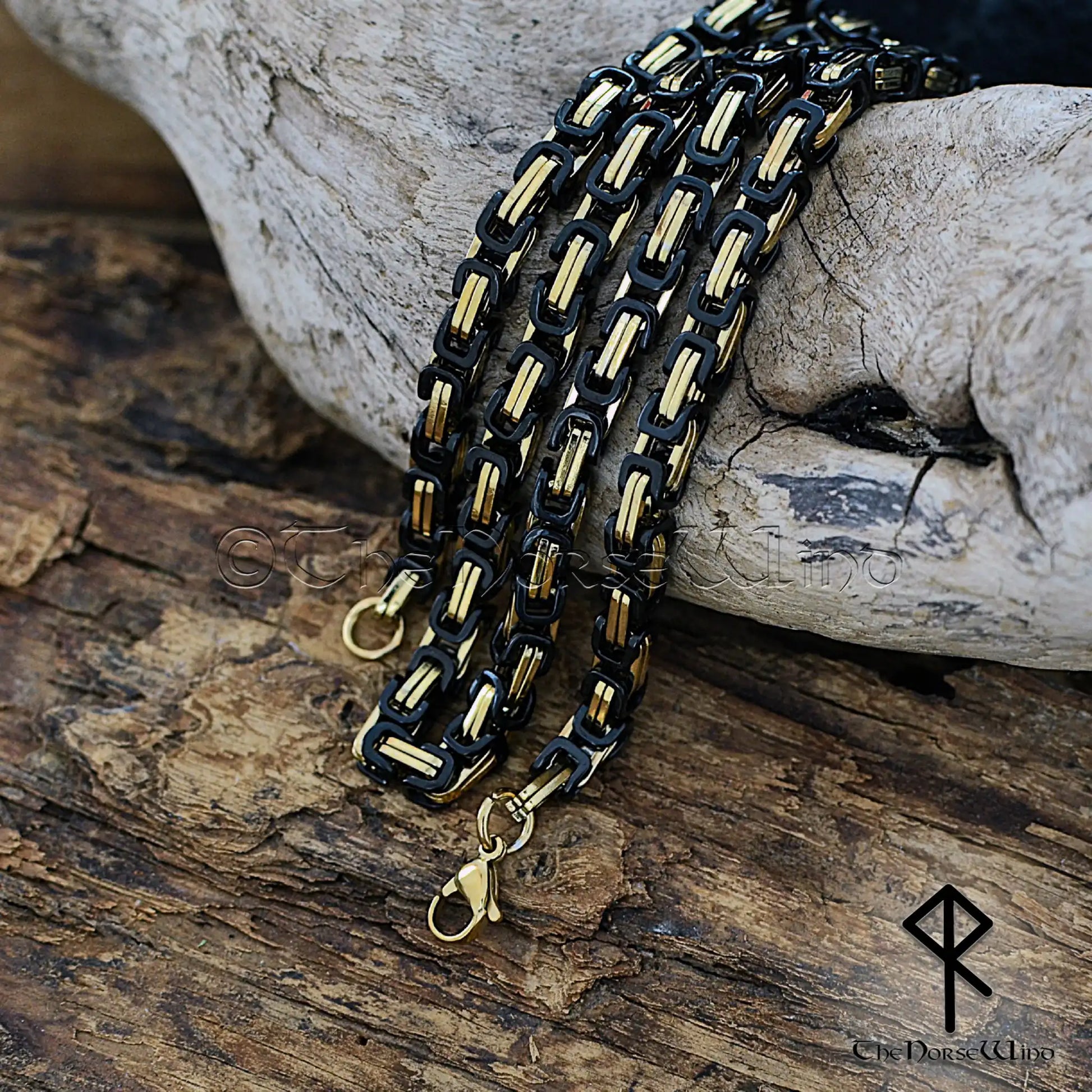 Command respect with our Black & Gold Byzantine Viking Chain Necklace, a striking blend of bold design and timeless Norse strength.