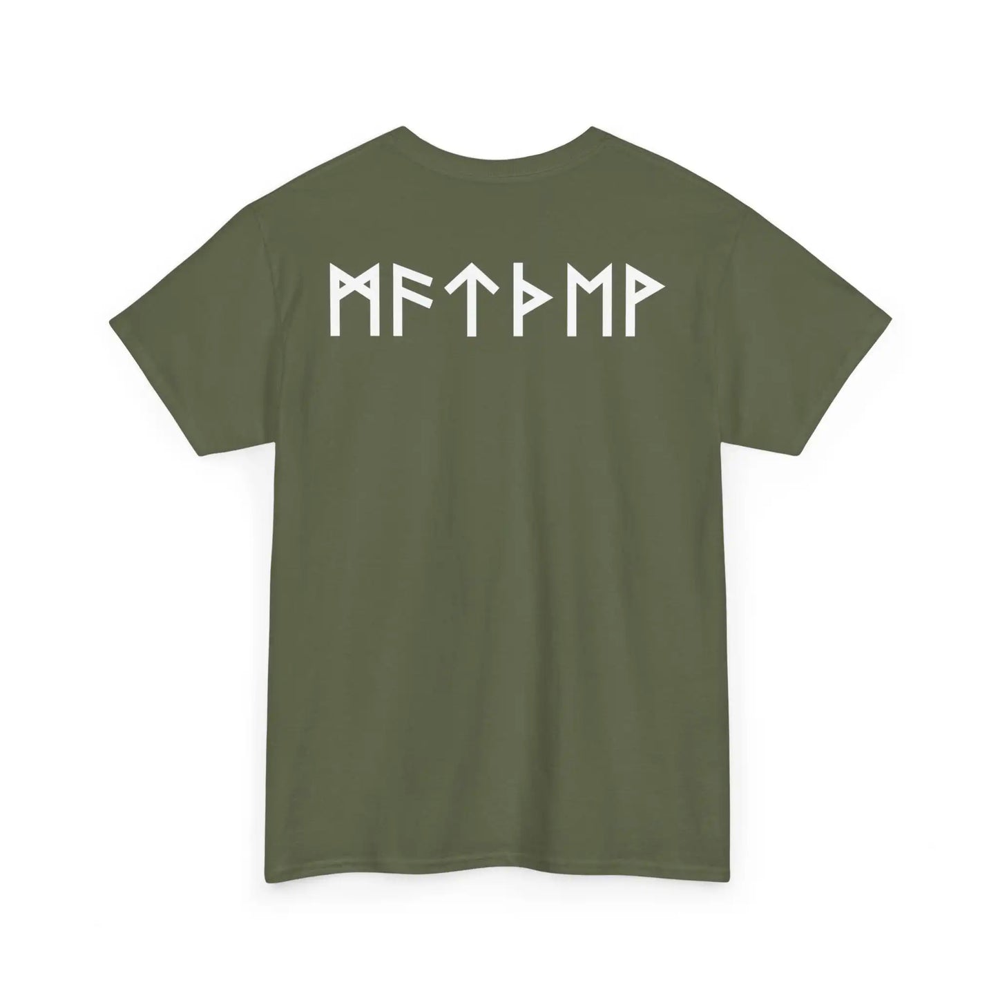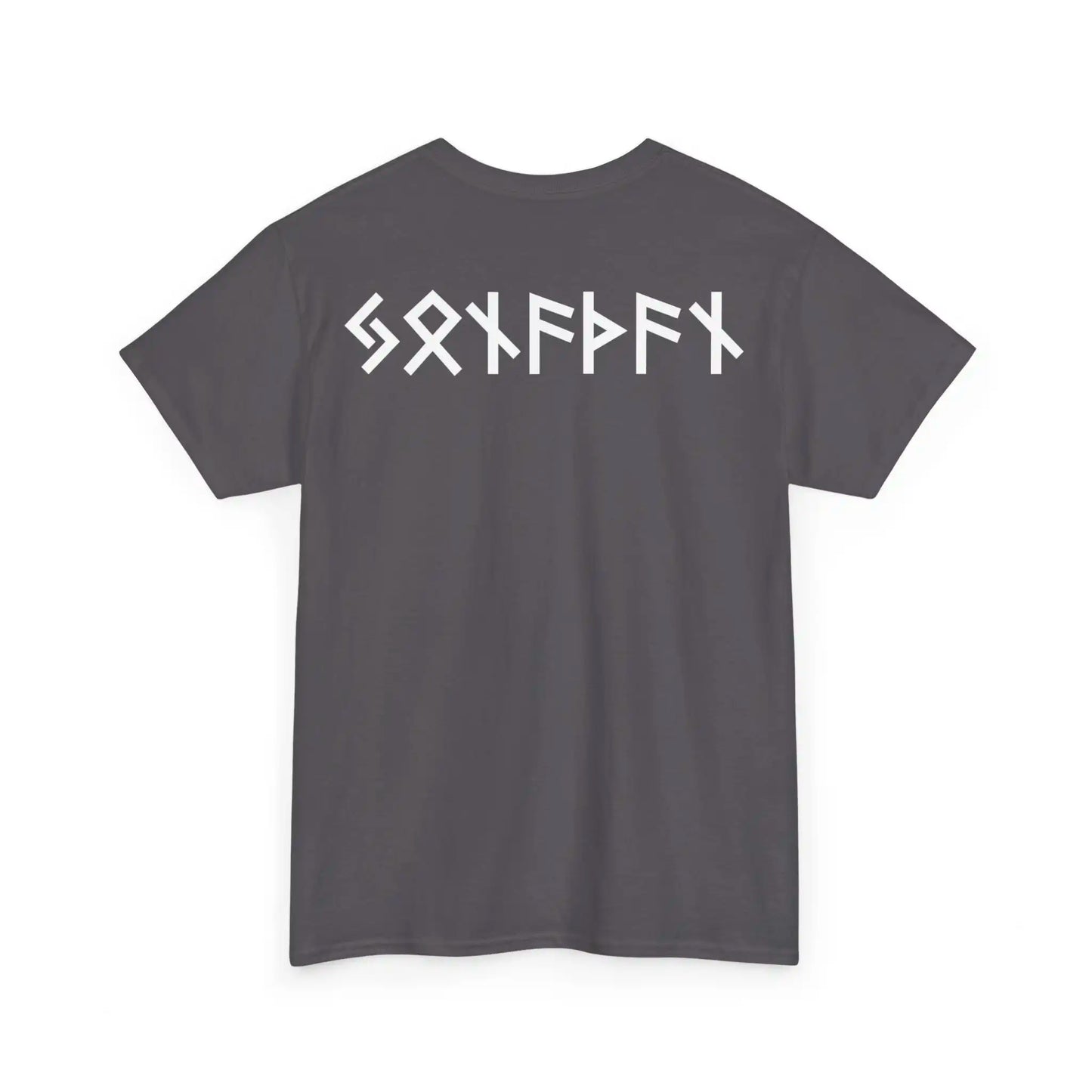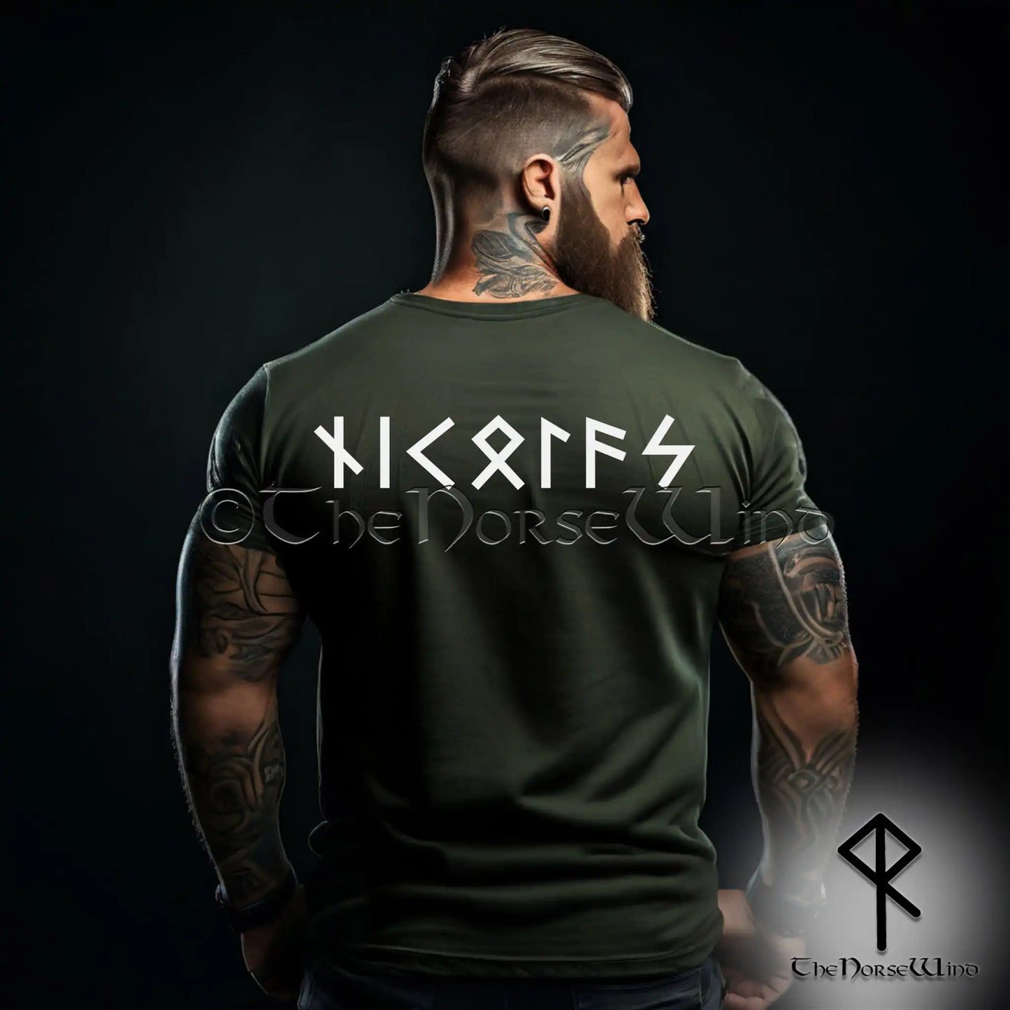 Leave your mark on this Viking-inspired masterpiece by selecting a name or word that holds significance to you. The inscription in Elder Futhark runes adds an extra layer of mystique and ancient charm, transforming your t-shirt into a truly unique expression of self.