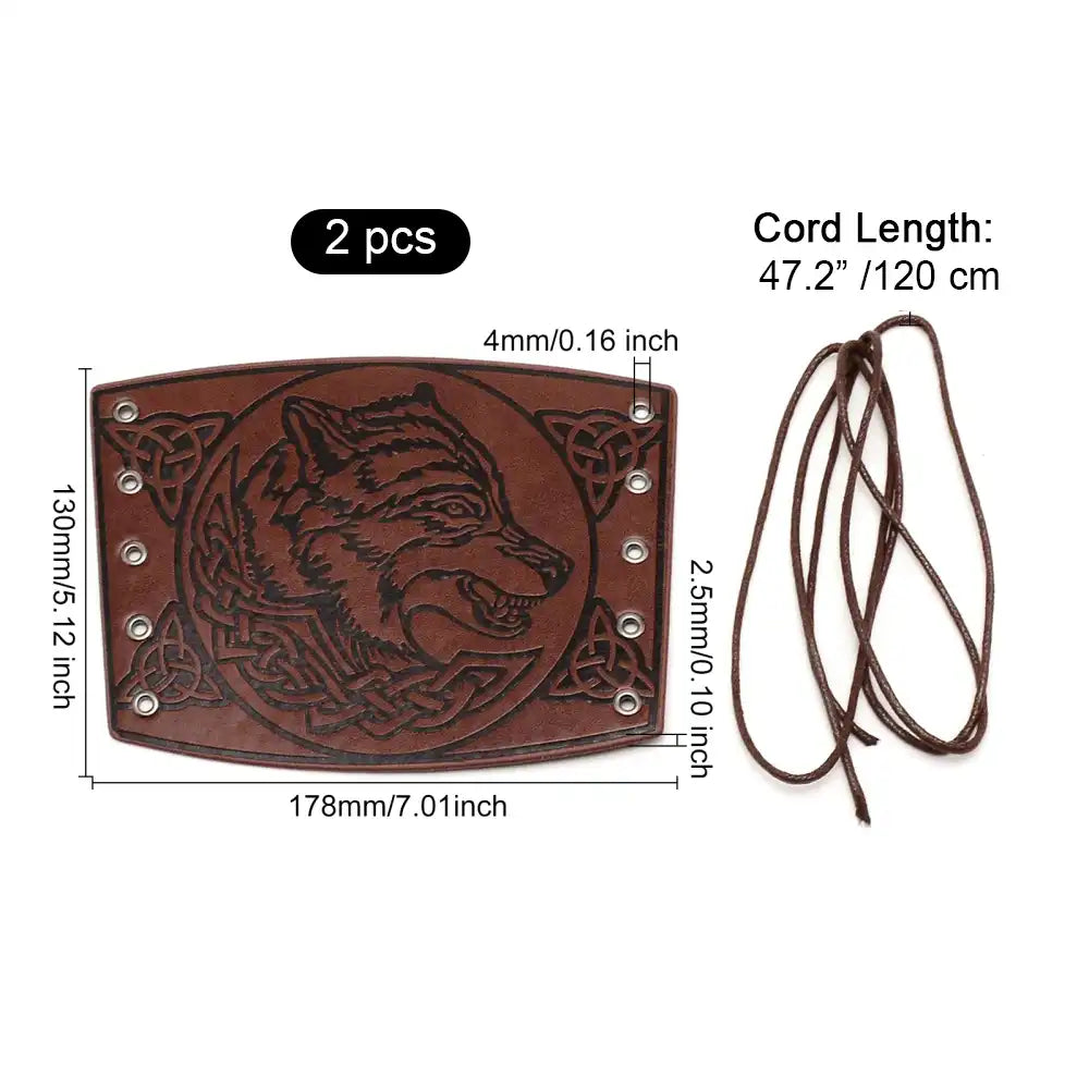Crafted from eco-leather in rustic brown, these bracers encapsulate the spirit of the Norse era. Elevate your medieval ensemble with these striking arm guards, blending mythical charm with a touch of rugged elegance.