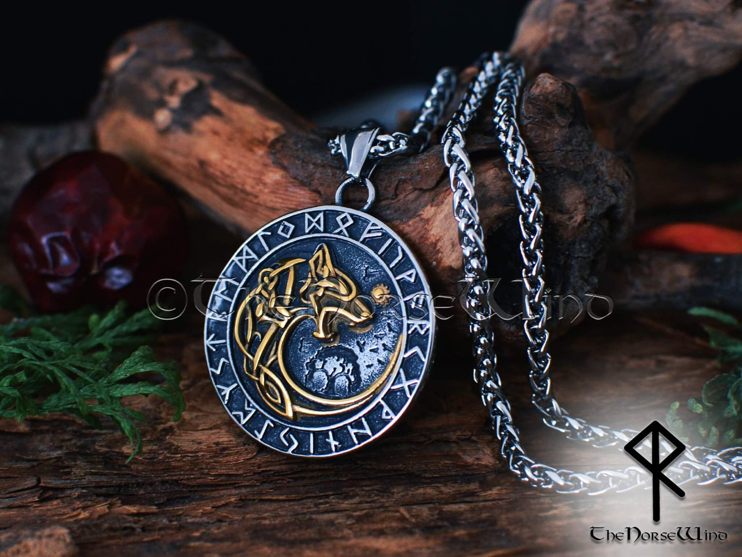 Fenrir Wolf Viking Runes Necklace