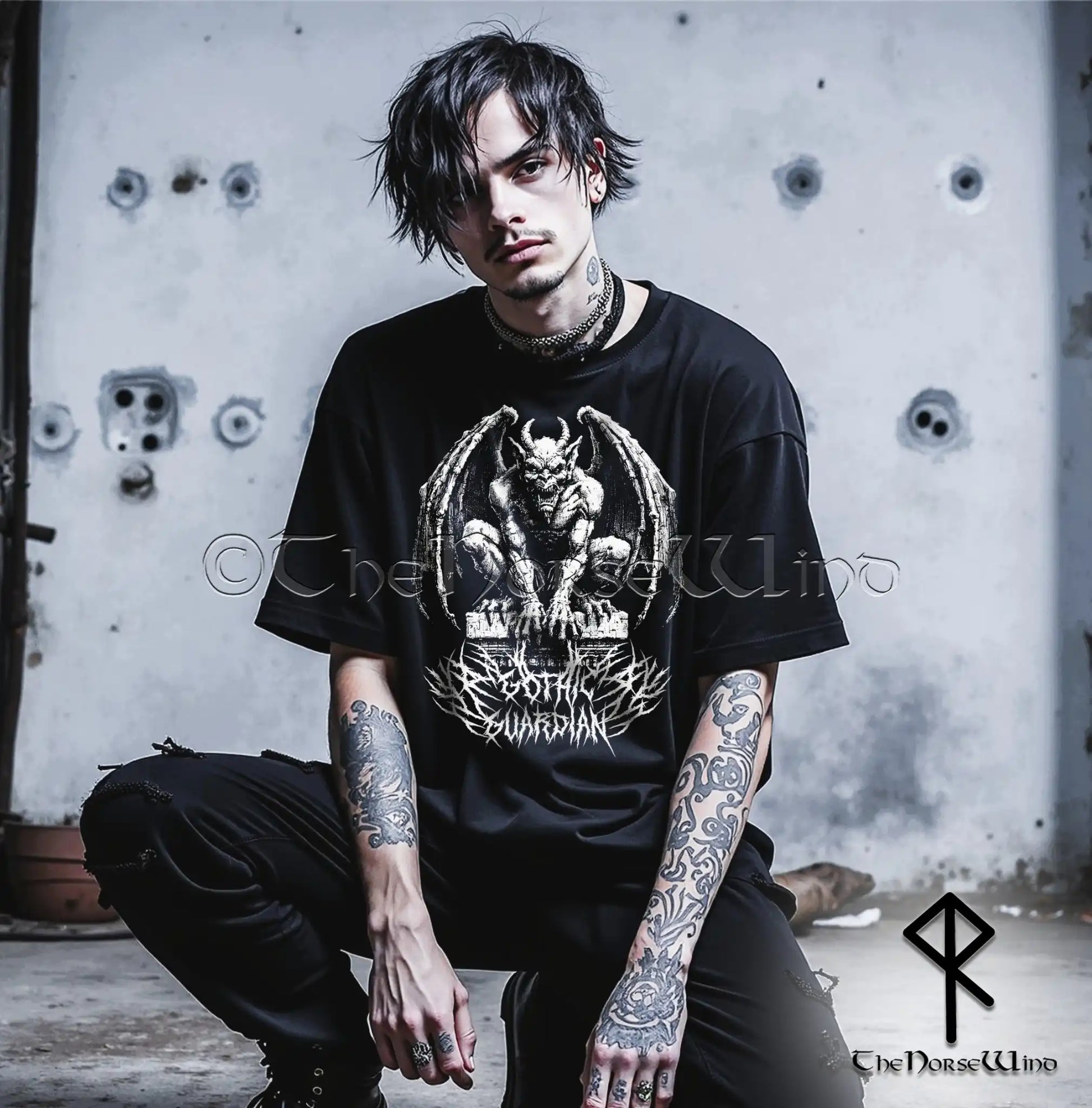 Step into the shadows with this Gargoyle T-Shirt, a bold tribute to the legendary stone guardians of gothic cathedrals. Featuring the phrase “Gothic Guardian” and detailed gargoyle artwork, this shirt blends dark fantasy design with alternative streetwear style.