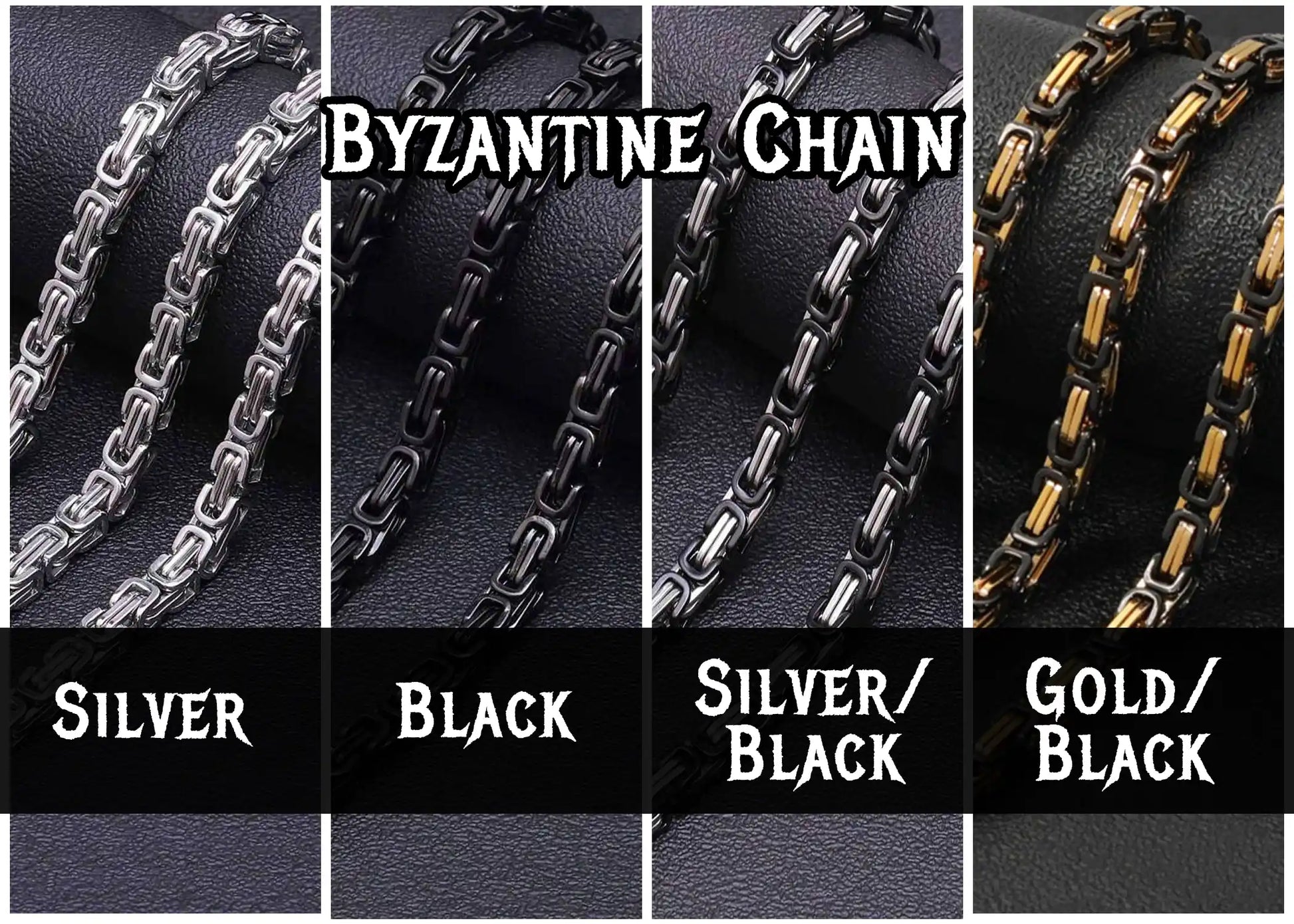 - Byzantine Chain – 60 cm (24"), 70cm ( 27.6"), ~4.5 mm thick
