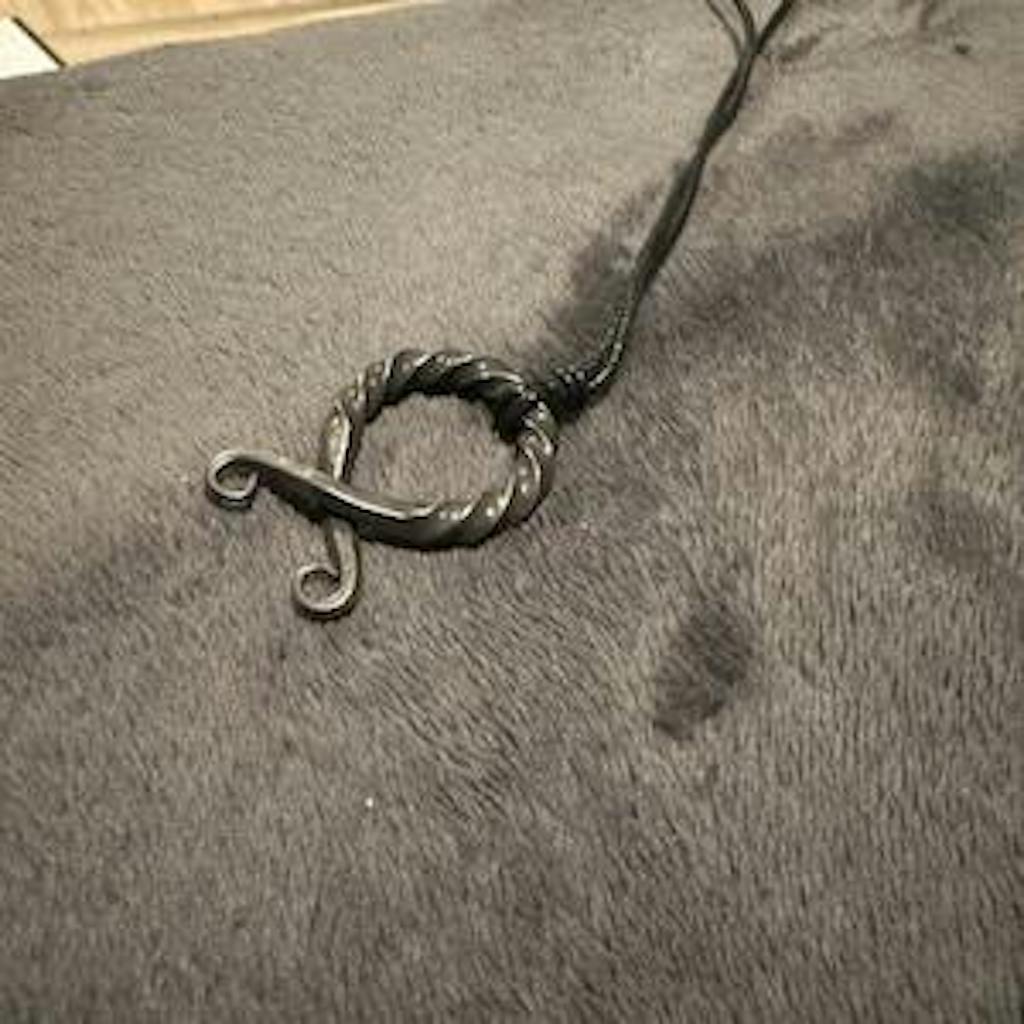 The necklace comes with an adjustable waxed cotton cord that is fitted with sliding knots, making it easy to wear and adjust to your preferred length. Standing at approximately 1.6 inches in height, this pendant is forged from a single, solid piece of iron, bearing testament to its meticulous craftsmanship. Please bear in mind that owing to its handmade nature, each pendant possesses subtle variations, enhancing its unique allure.