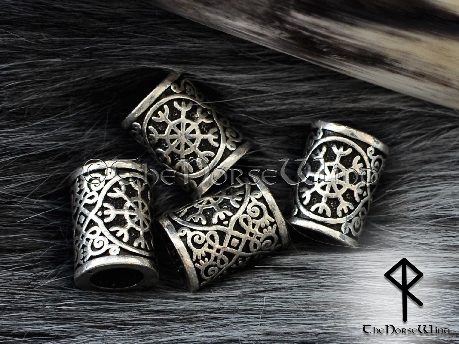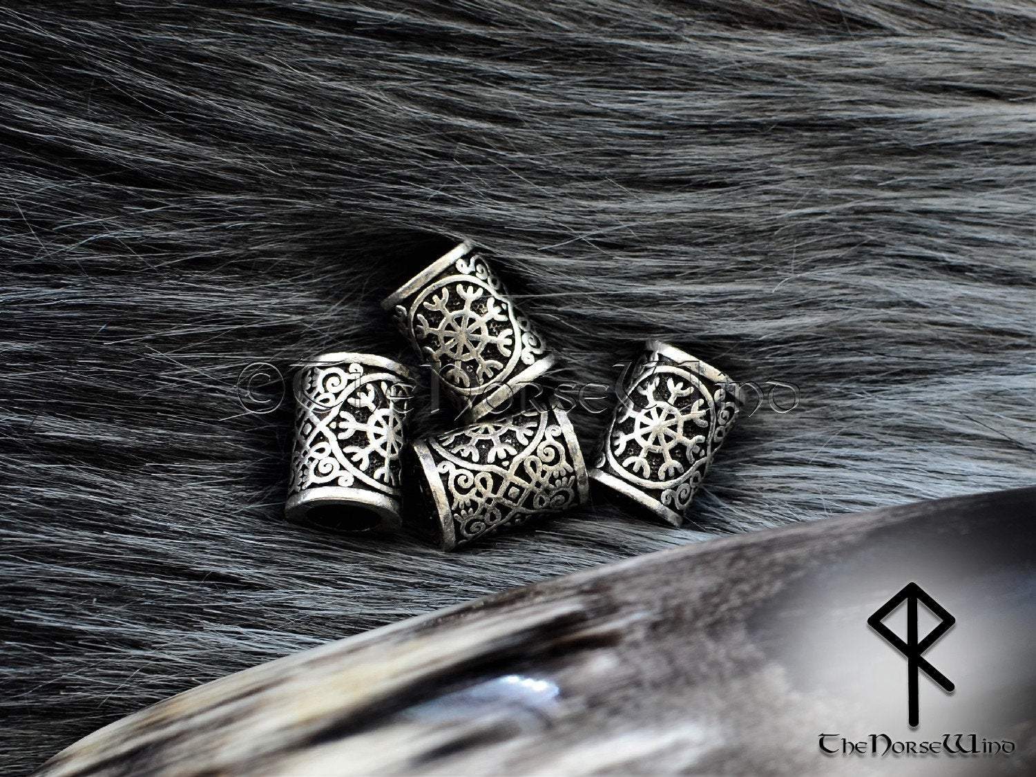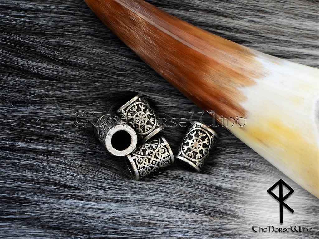 Helm of Awe Viking Beard Beads, Aegishjalmur Hair Beads Celtic Beard Rings