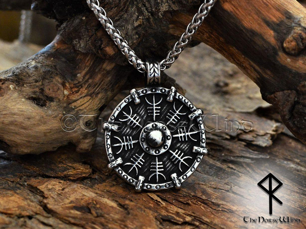 Helm of Awe Viking Necklace - Aegishjalmur Silver Pendant