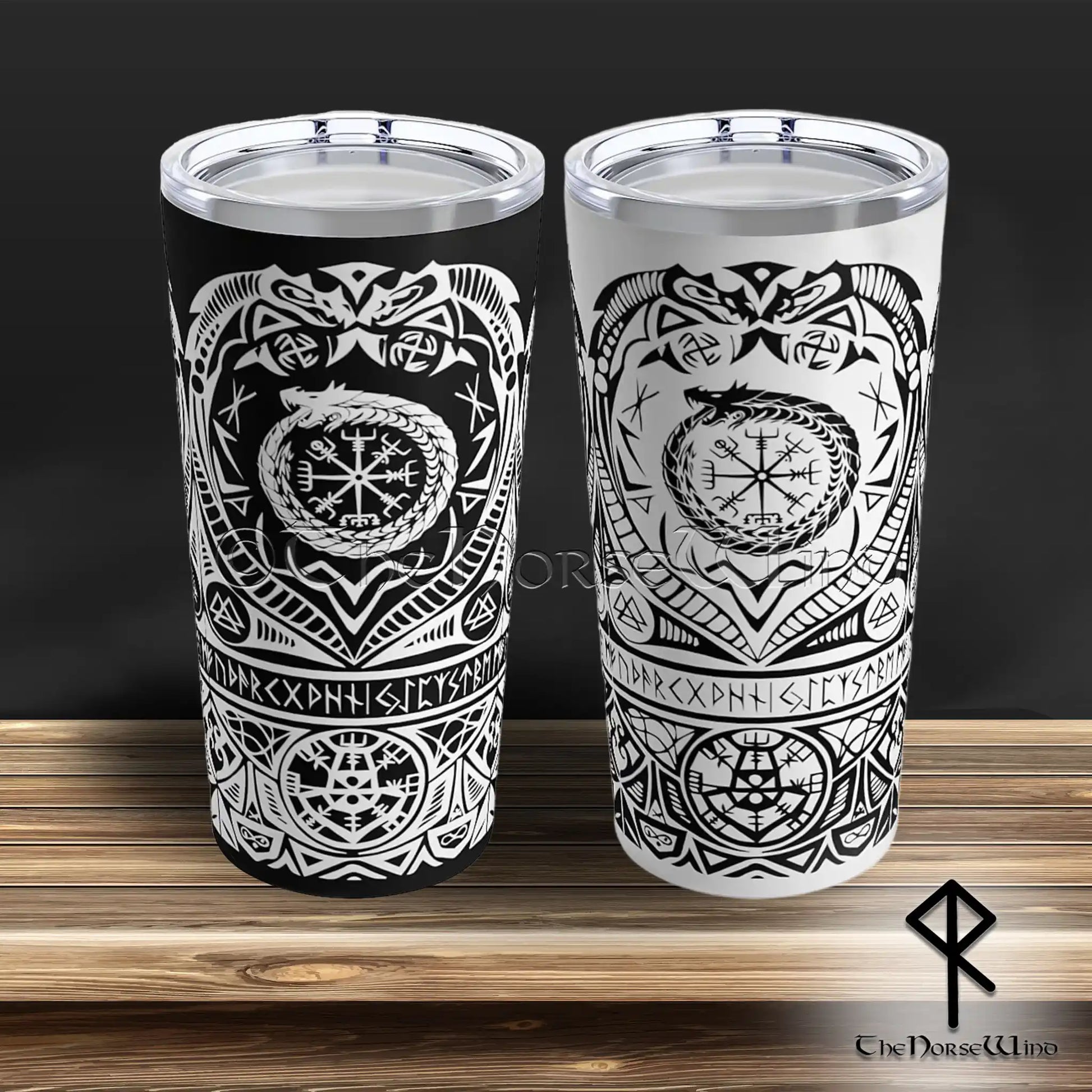 Jörmungandr Viking Tumbler - Midgard Serpent & Vegvisir 20oz Drinking Mug