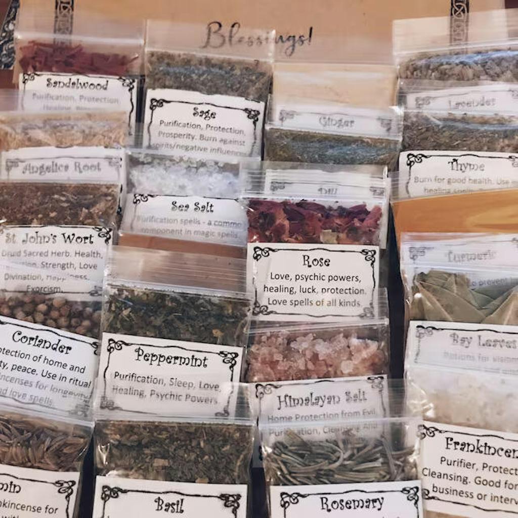 This Mini Witchy Herbal Set contains 20 small bags with the most important witch herbs and resins to begin your journey in Wiccan practice.