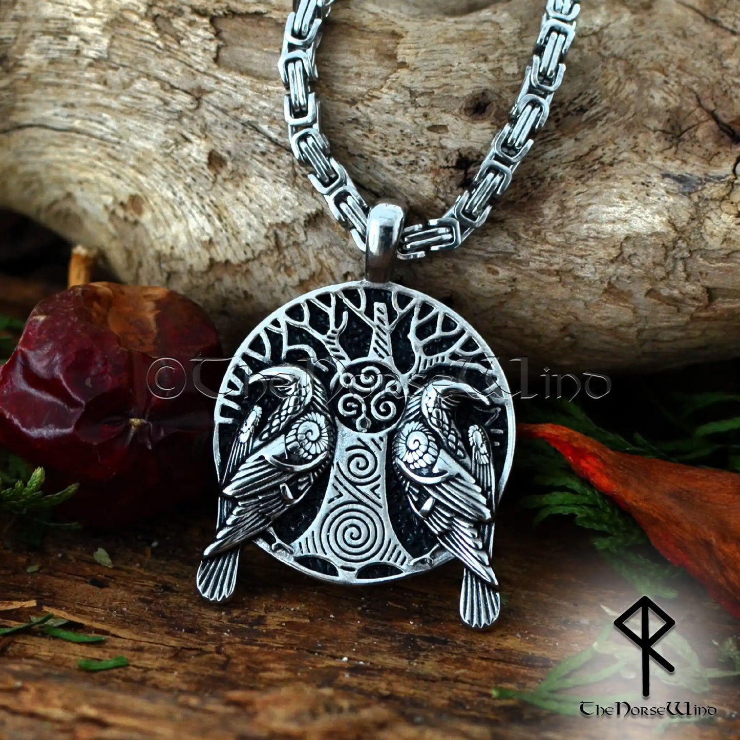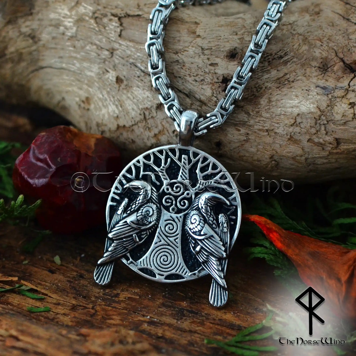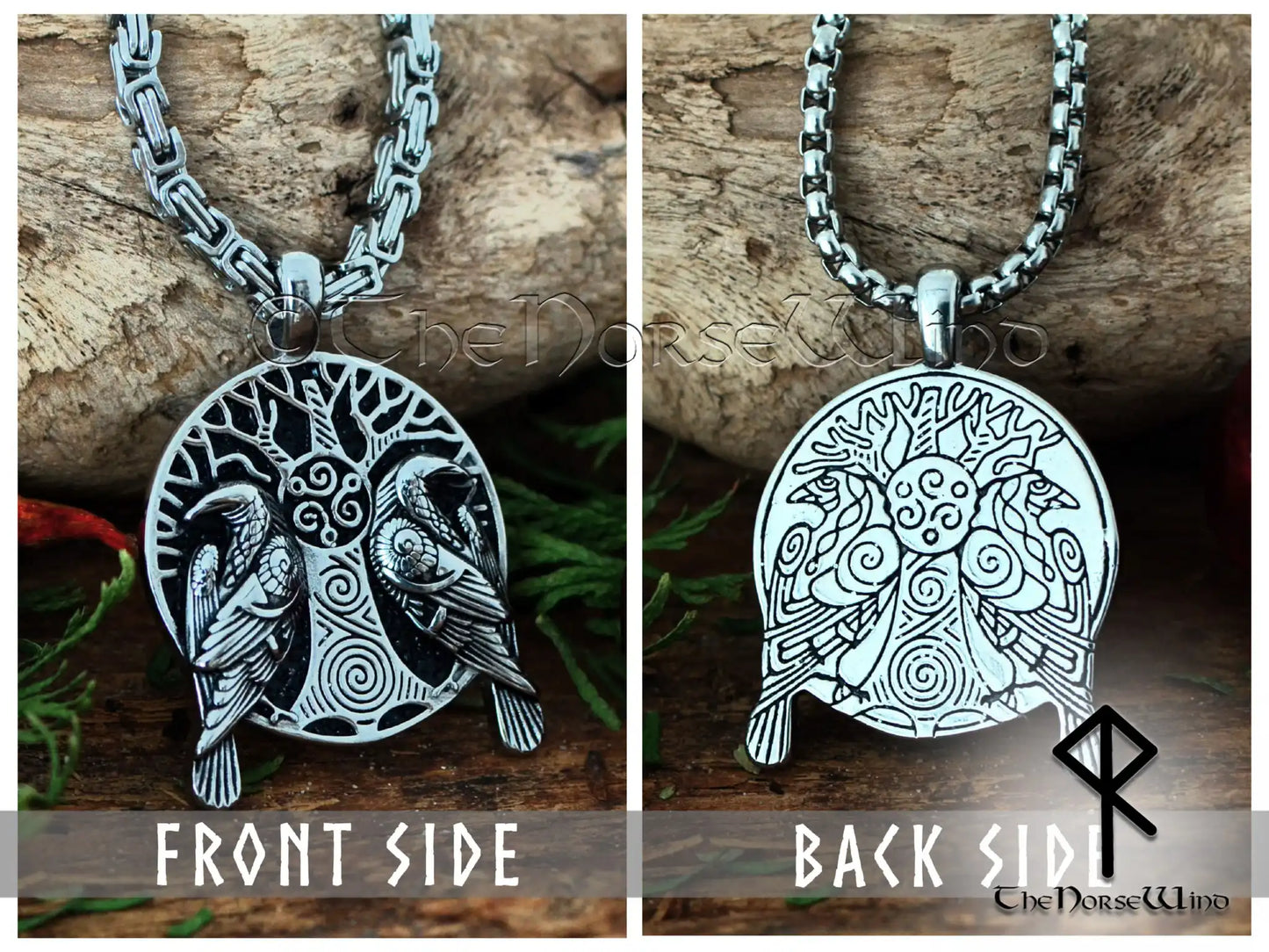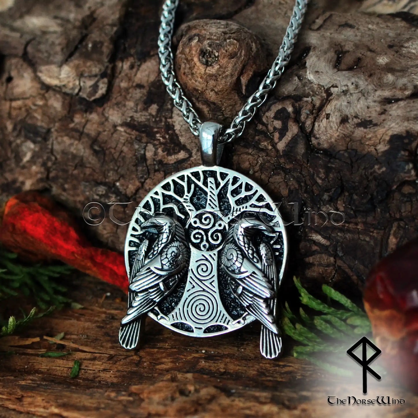 Viking Raven Necklace Huginn and Muninn Norse Pendant, Stainless Steel