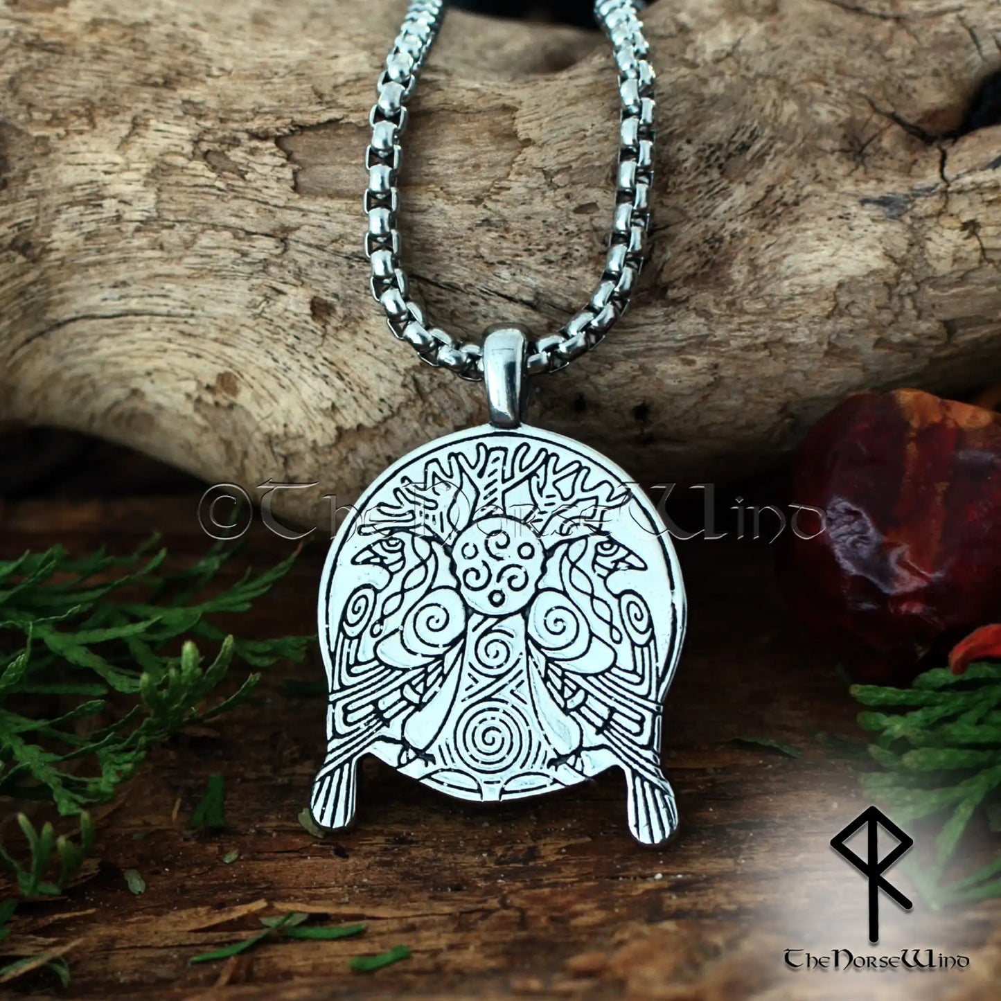 Discover the allure of Viking heritage with our premium Viking Ravens Hugin and Munin Necklace. Made from durable stainless steel, this exquisite pendant showcases the iconic Odin's ravens, Huginn and Muninn, poised beneath the grand Yggdrasil Tree.