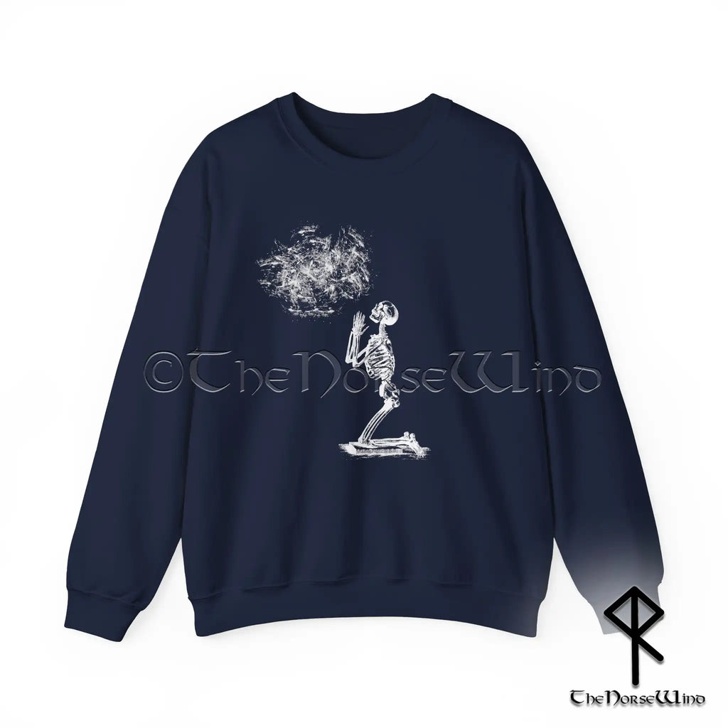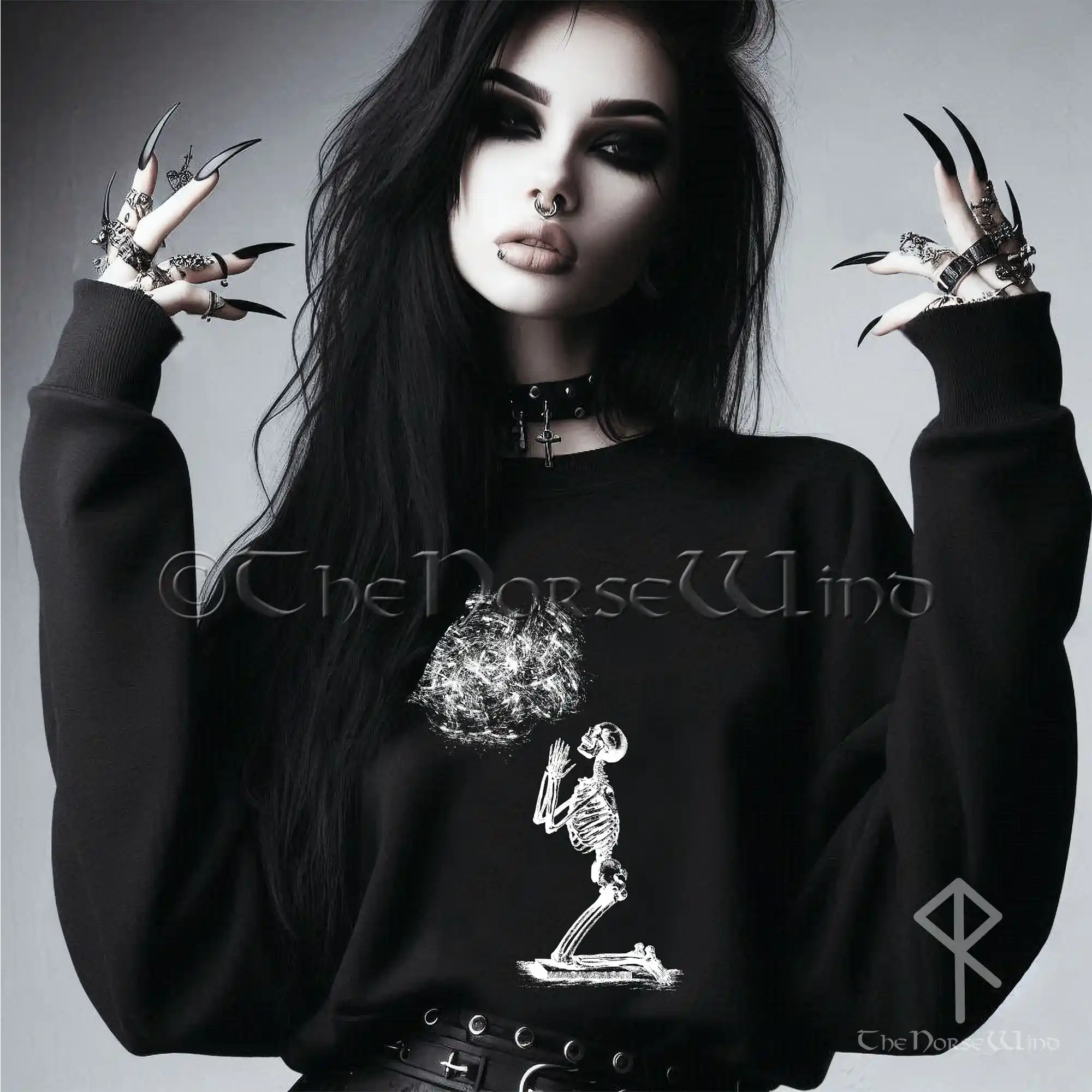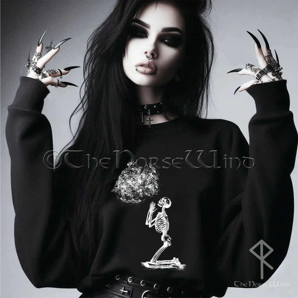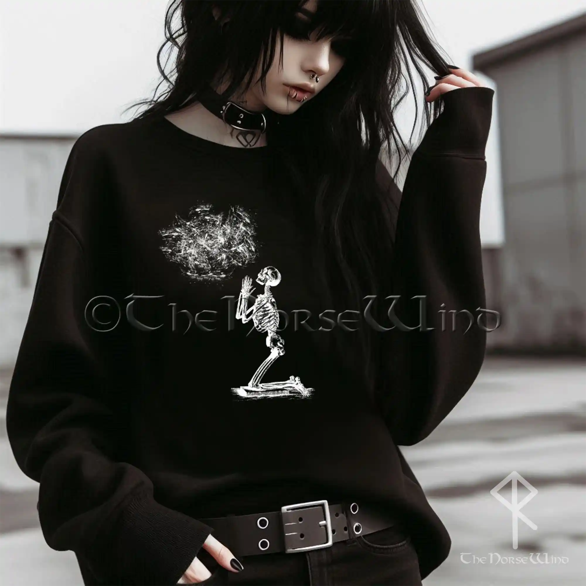 Praying Skeleton Weird Sweatshirt, Crust Punk & Goth Pullover