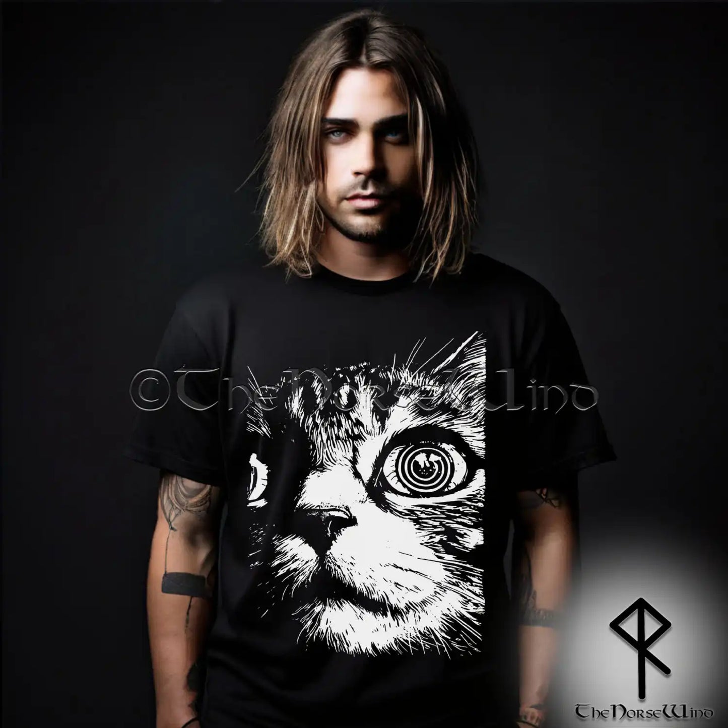 Psychedelic Cat T-Shirt - Hypnotic Trippy Cat Tee - Gothic & Dark Alt Fashion