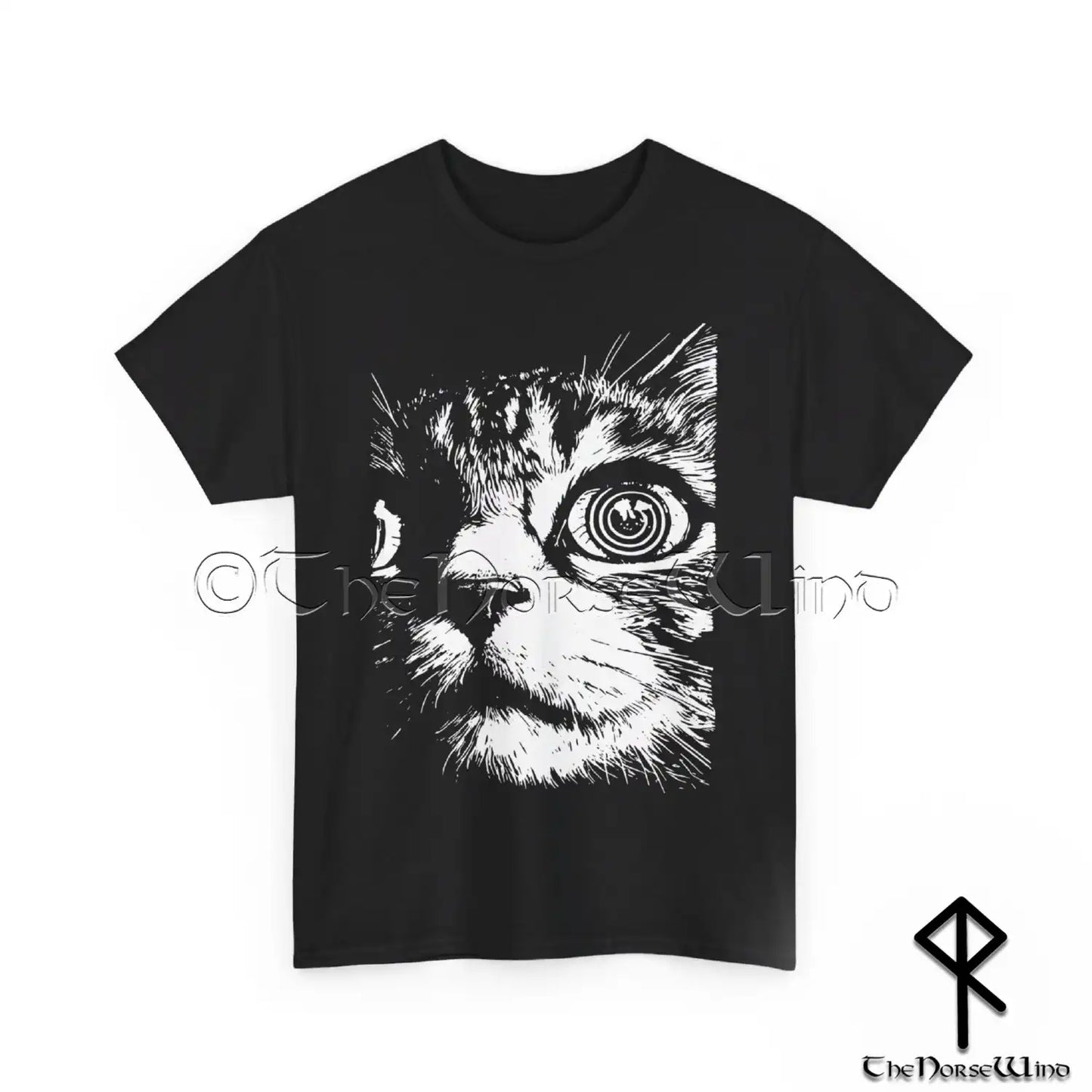 Unleash your wild side with this Hypnotic Psychedelic Cat T-Shirt, featuring a mesmerizing spiral-eyed cat design that blends gothic, alternative, and trippy psychedelic aesthetics.