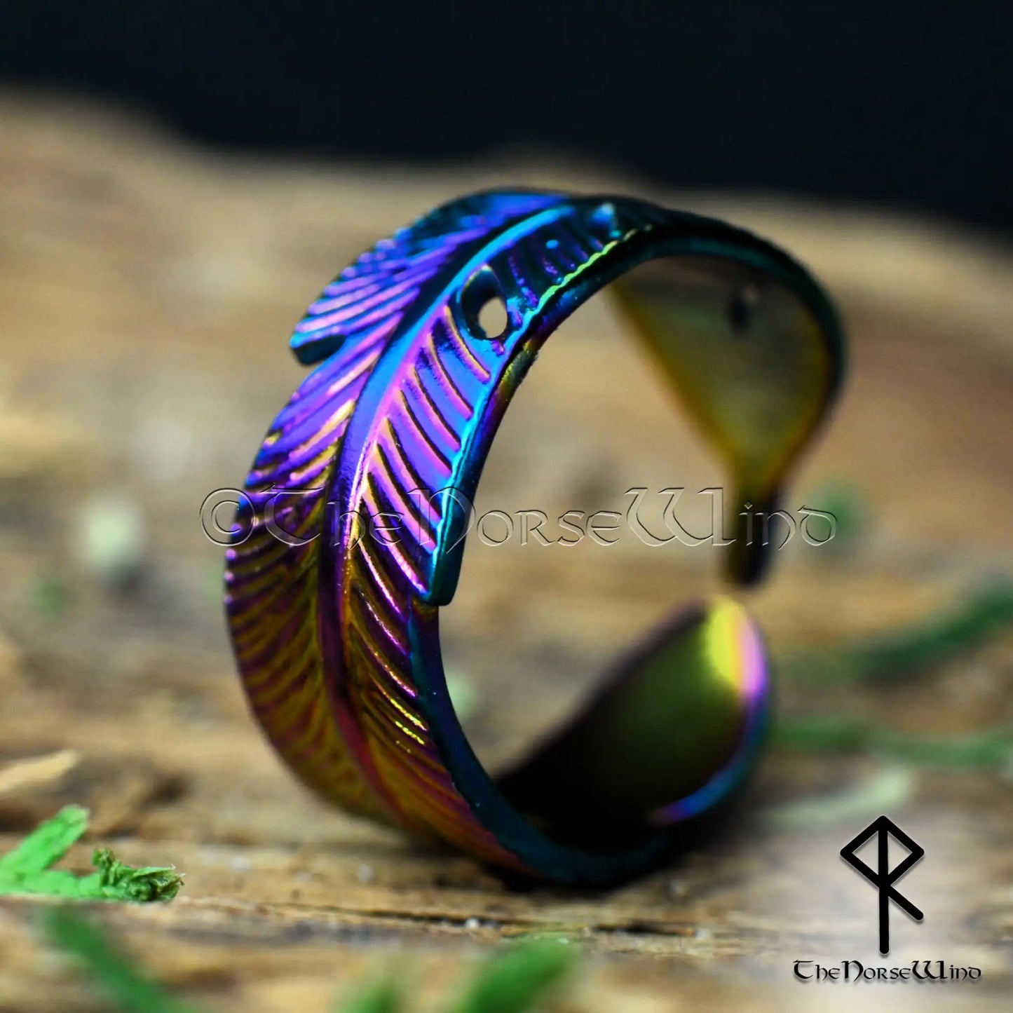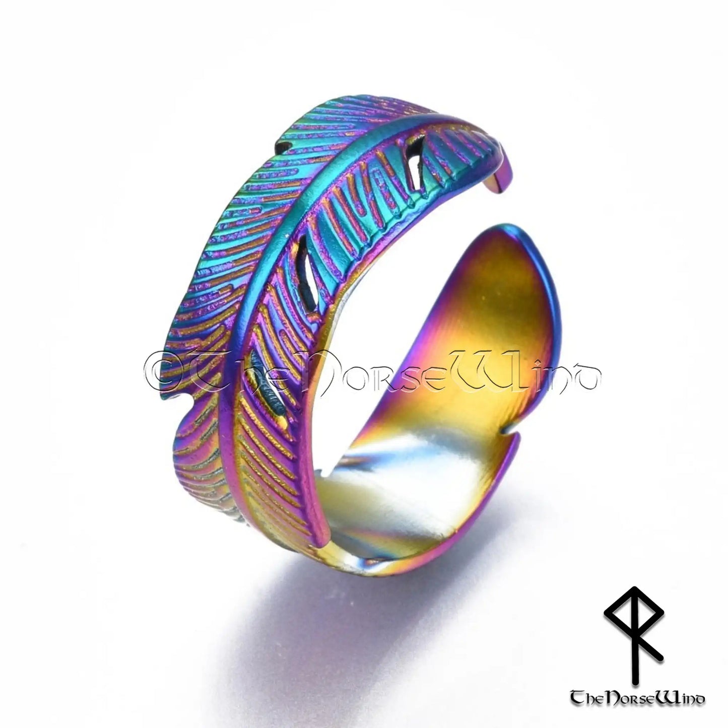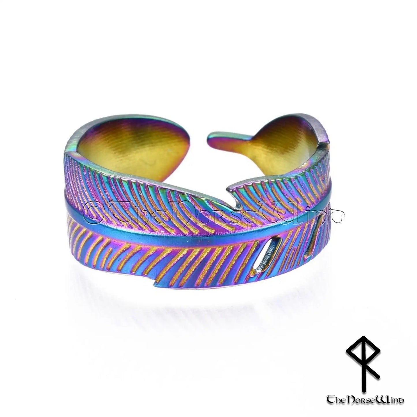 Viking Mystic Feather Adjustable Ring - Colorful Electroplated Stainless Steel