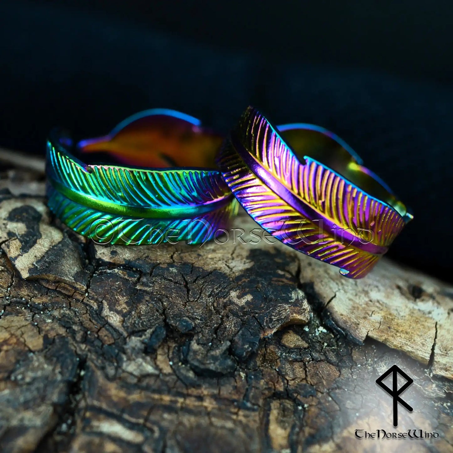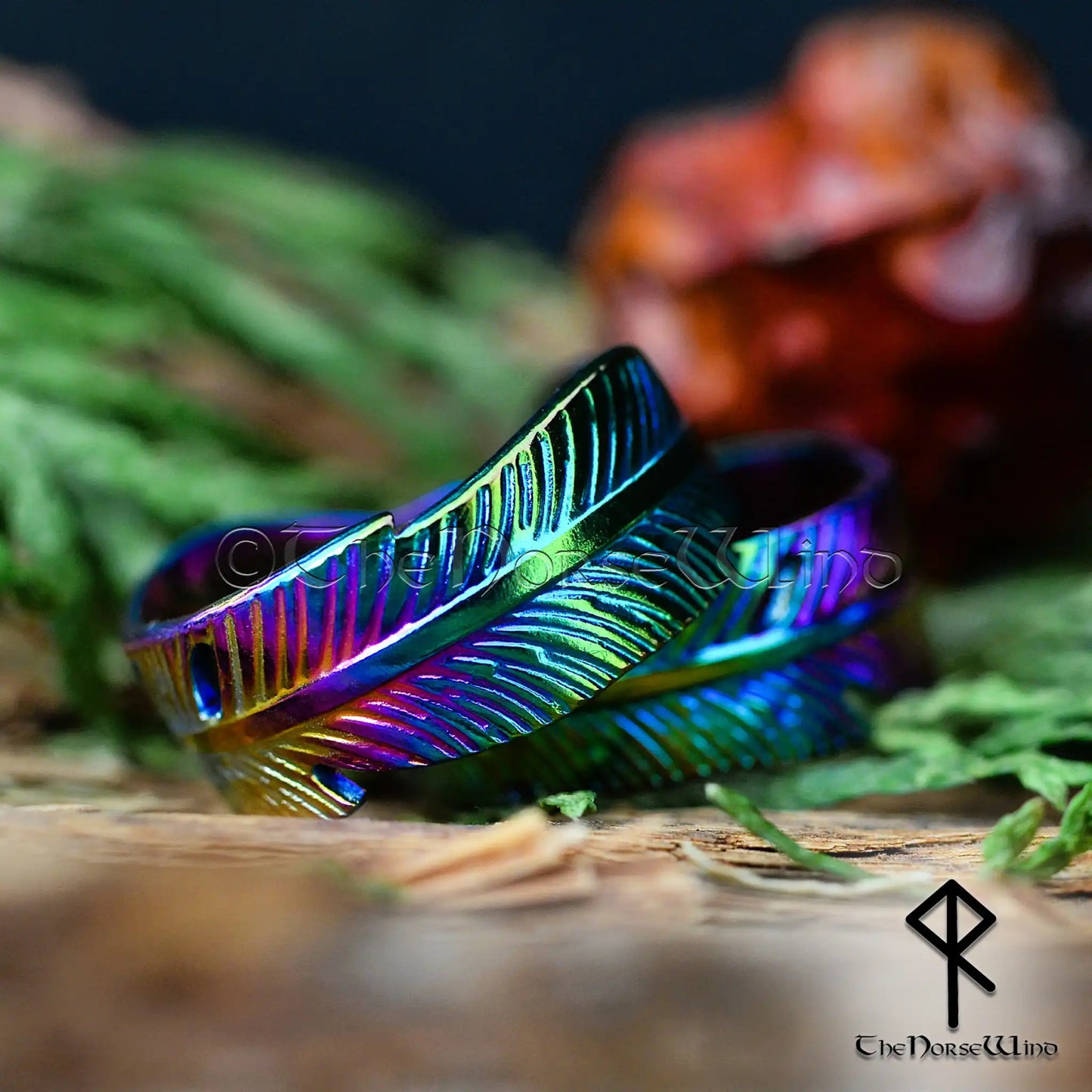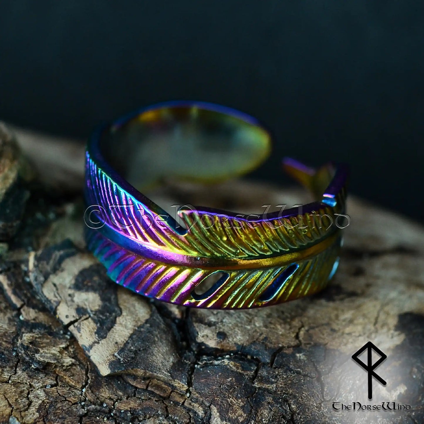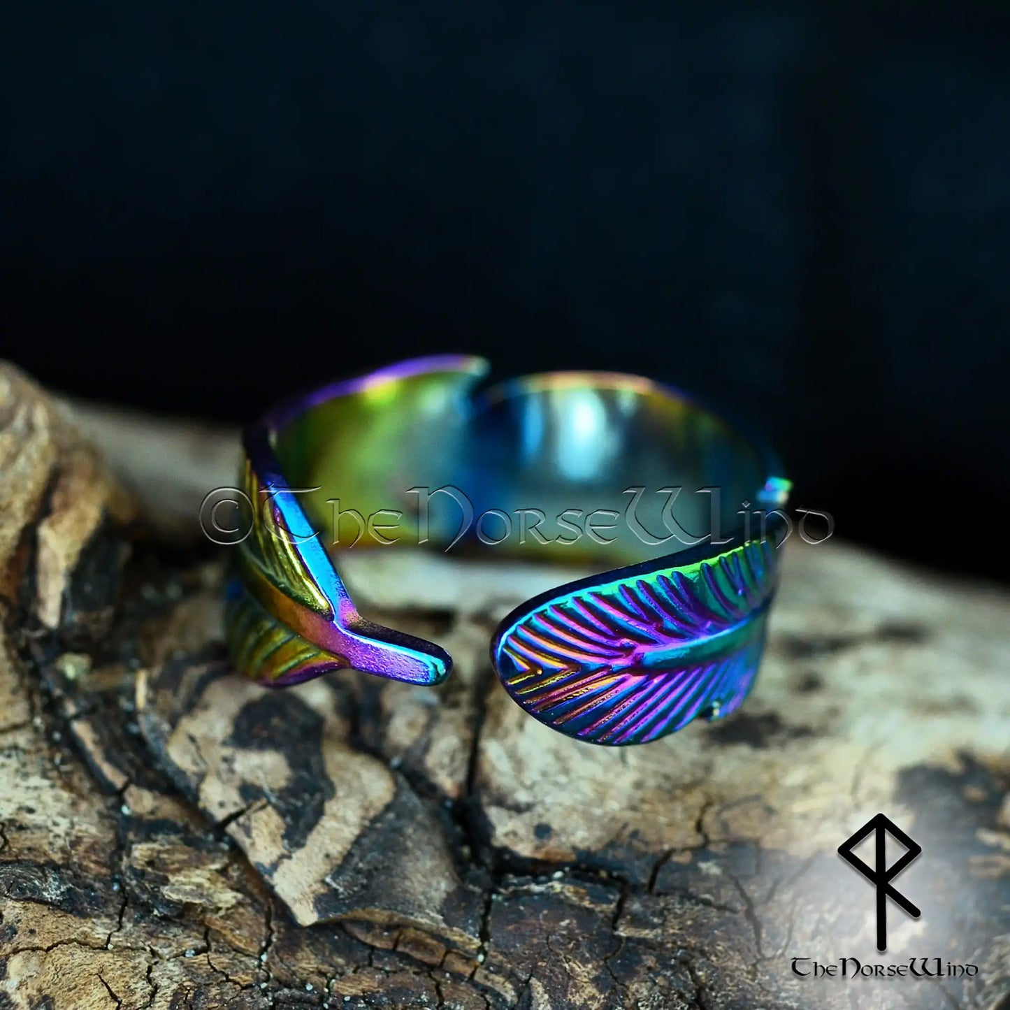 Viking Mystic Feather Adjustable Ring - Colorful Electroplated Stainless Steel