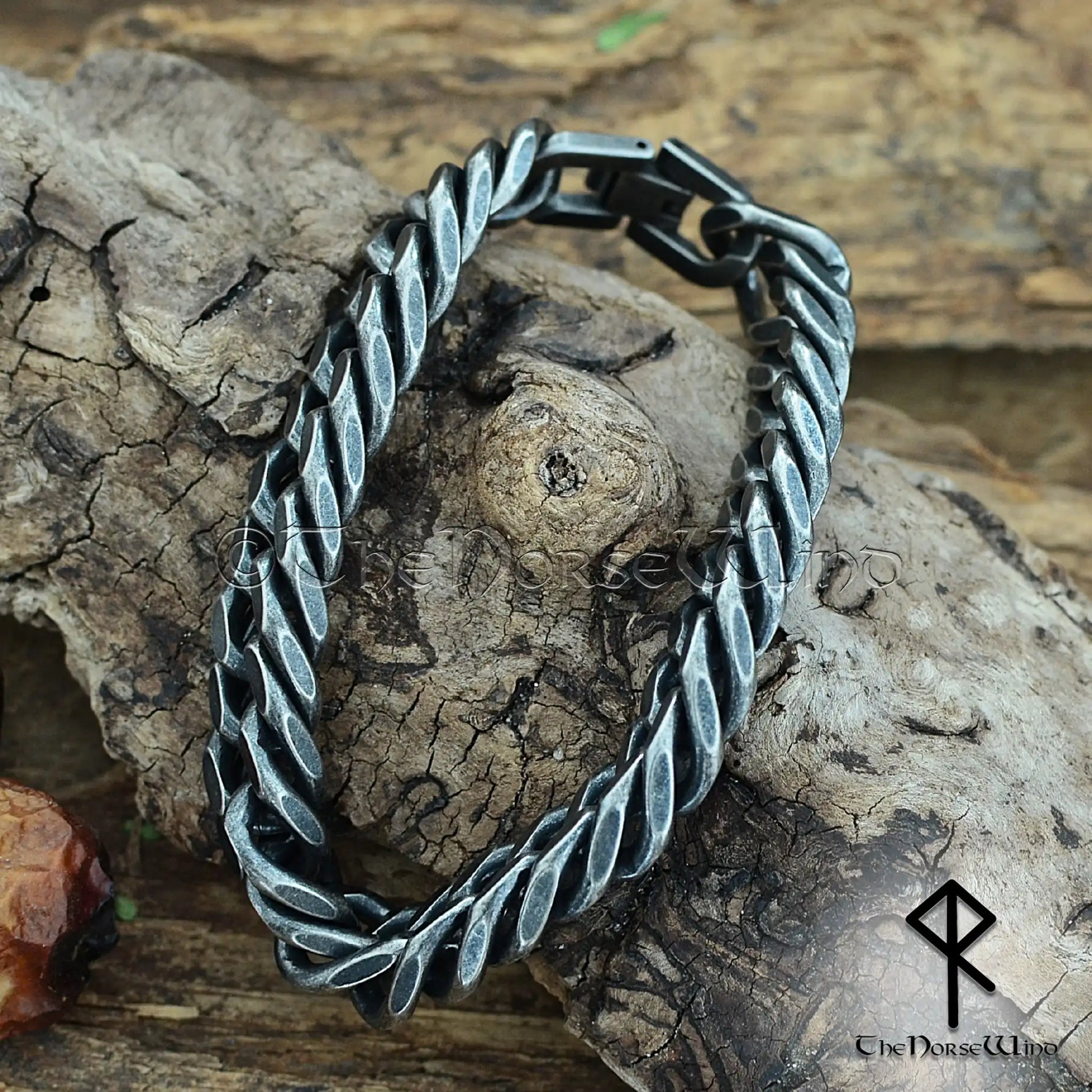 Solid Men's Bracelet, 13mm Miami Cuban Link Chain Bracelet, Viking Curb Chain Bracelet, Gunmetal Steel Heavy Bracelet, Viking Jewelry