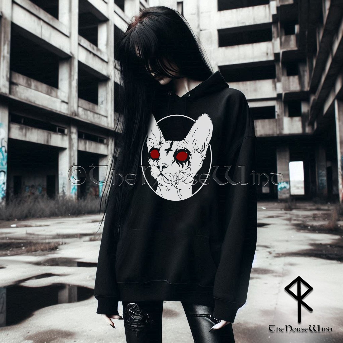 Sphynx Cat Gothic Hoodie – Occult Black Metal Darkwear