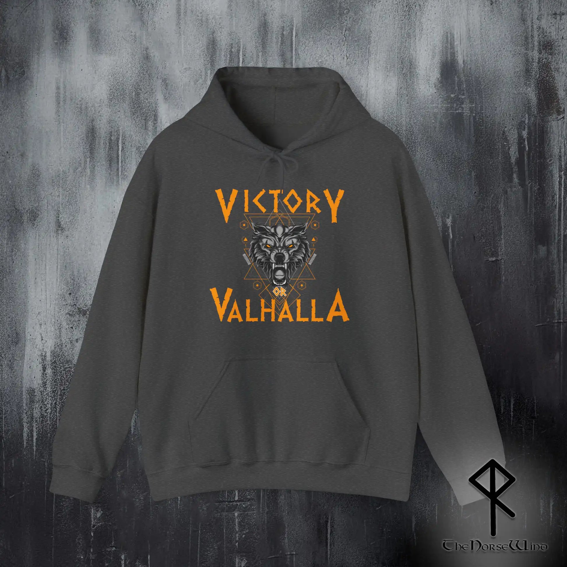 Victory or Valhalla Viking Hoodie, Fenrir Wolf Norse Sweatshirt